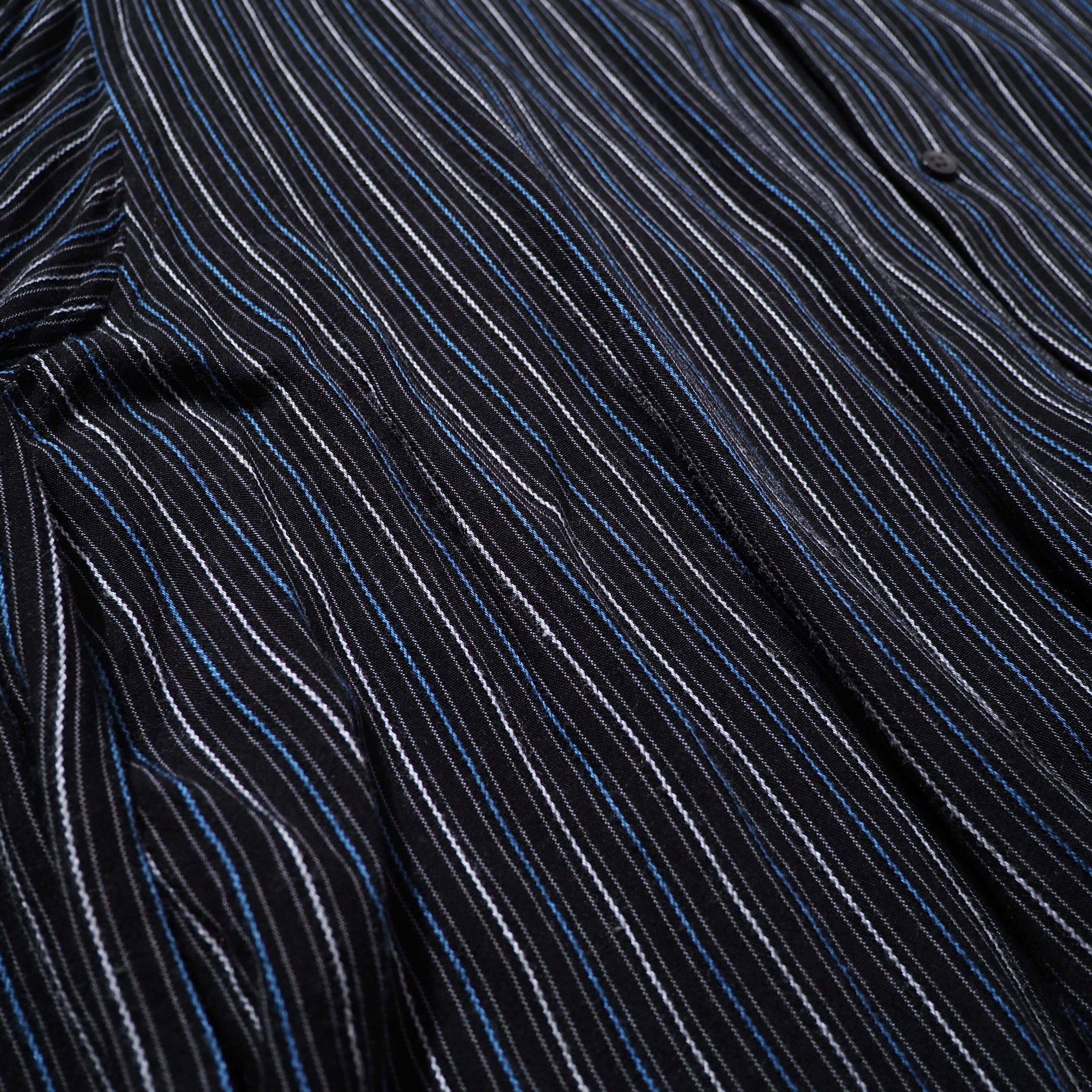 しっとり、やわらかな質感のブラックレーヨンにブルー×ホワイトのステッチ刺繍があしらわれたシャツ。ジグザグと波打つデザインが可愛らしい。
