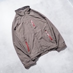 マットな質感と色味のナイロンに、真っ赤な止水ジップが印象的なコロンビアのテックジャケ。
