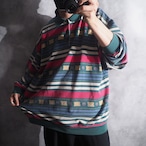 Multi color Border × Ethnic pattern Design vintage loose Pull over shirt