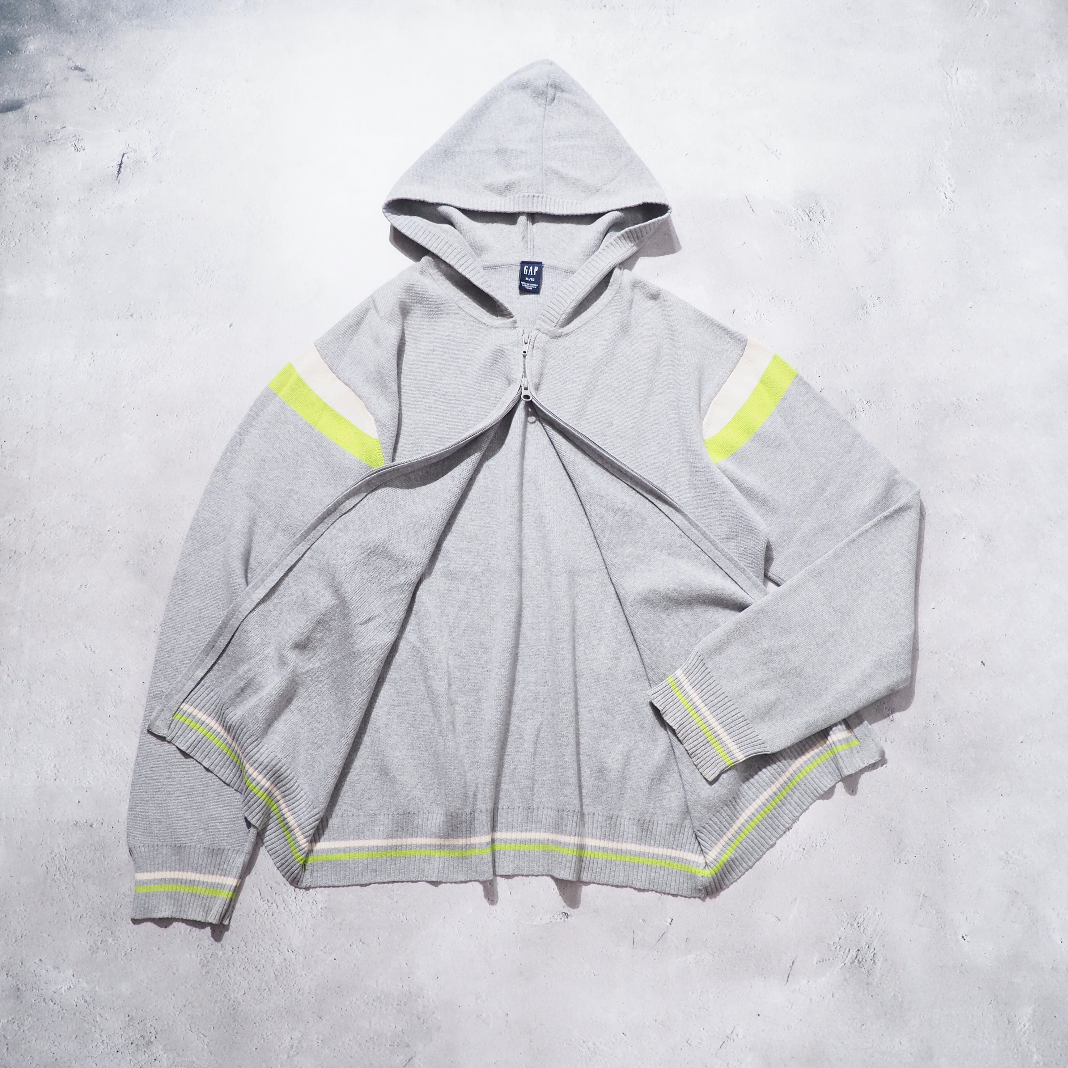 " GAP " Lime green × White Bi color switching knit zip Parker