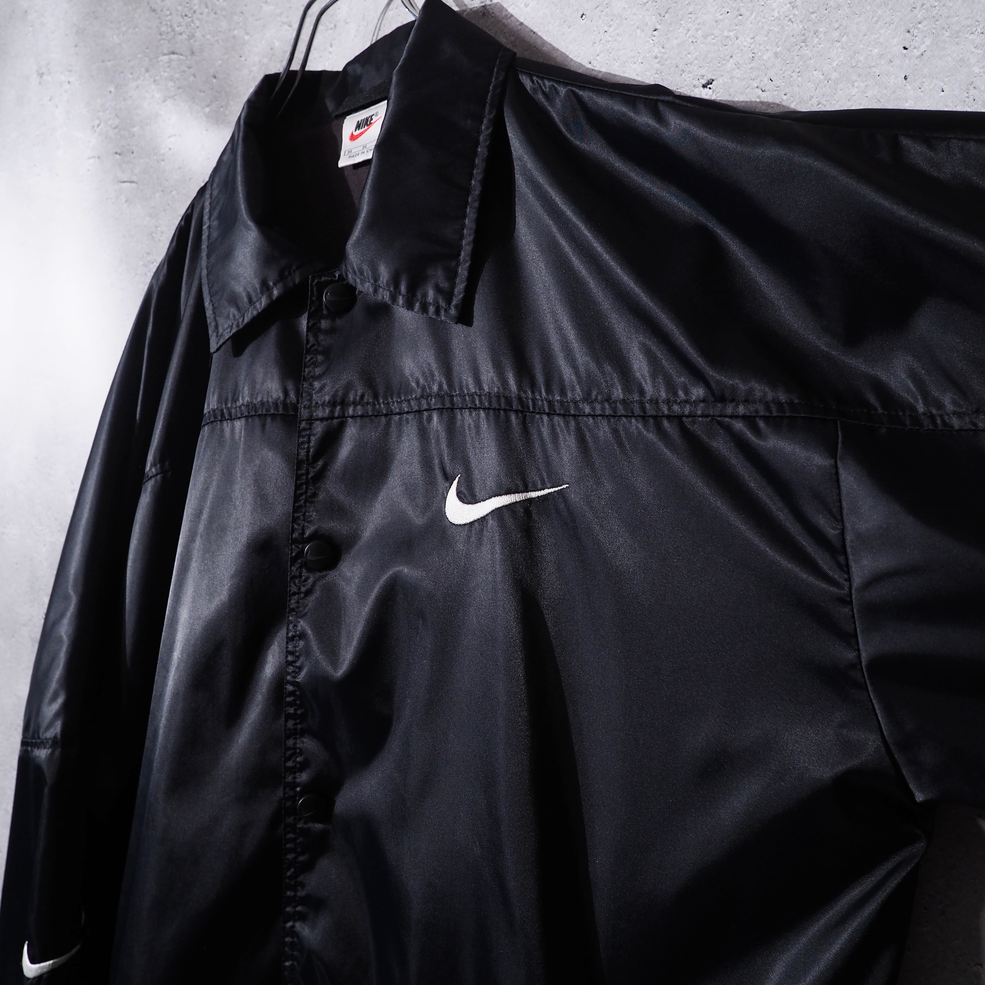 ” Special ” " NIKE " Double Swoosh Logo Embroidery Black Loose Nylon Jacket