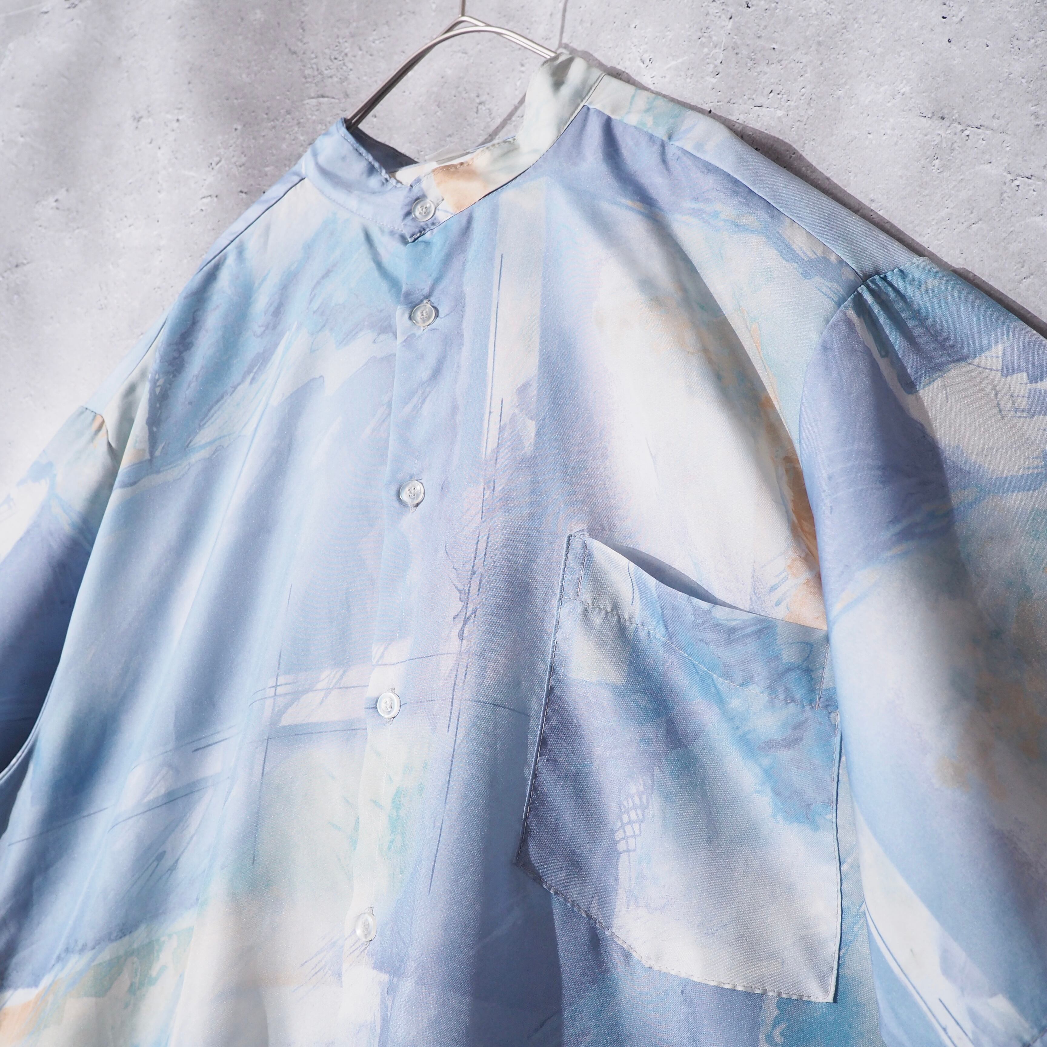 1990s Beautiful marble pattern vintage loose No collar shirt