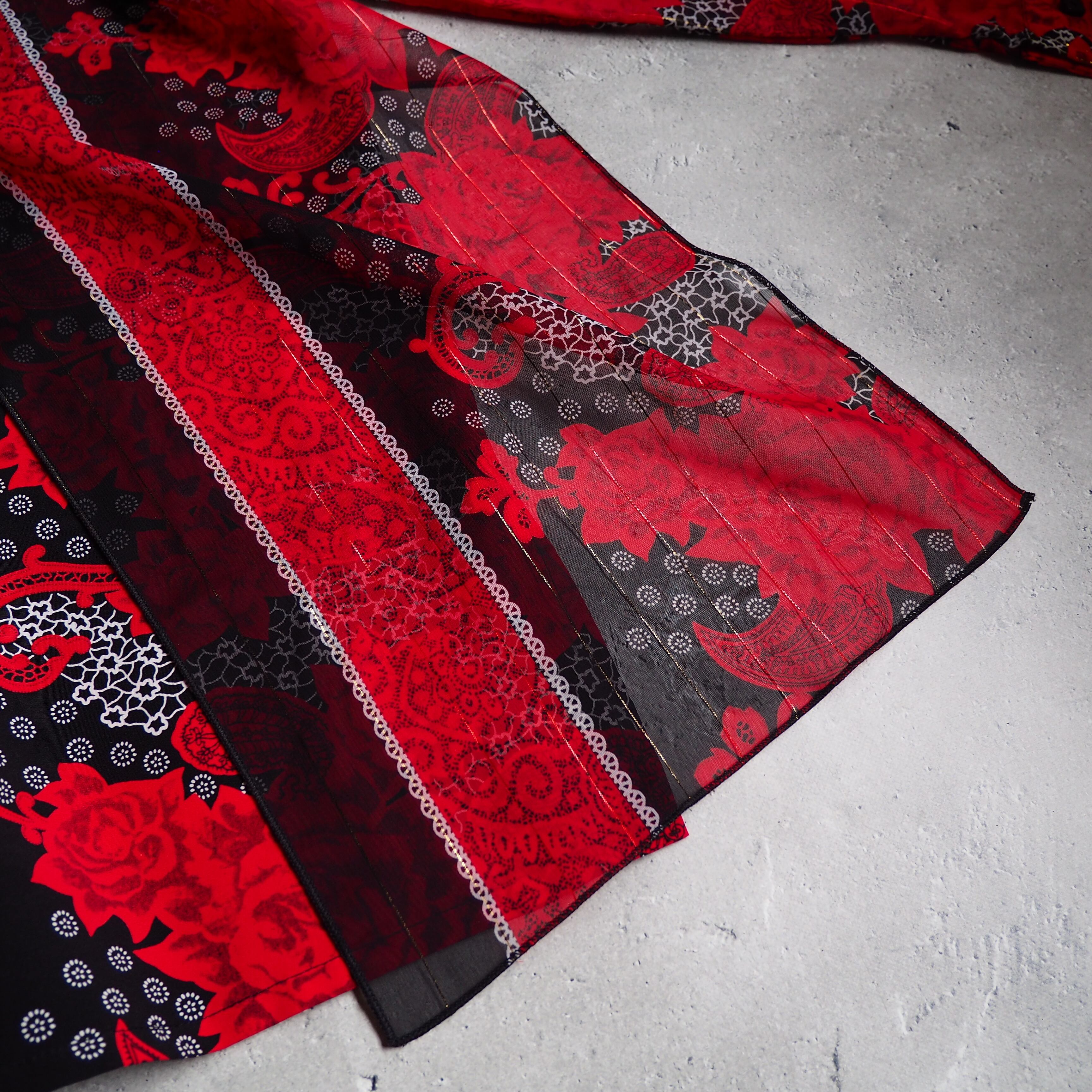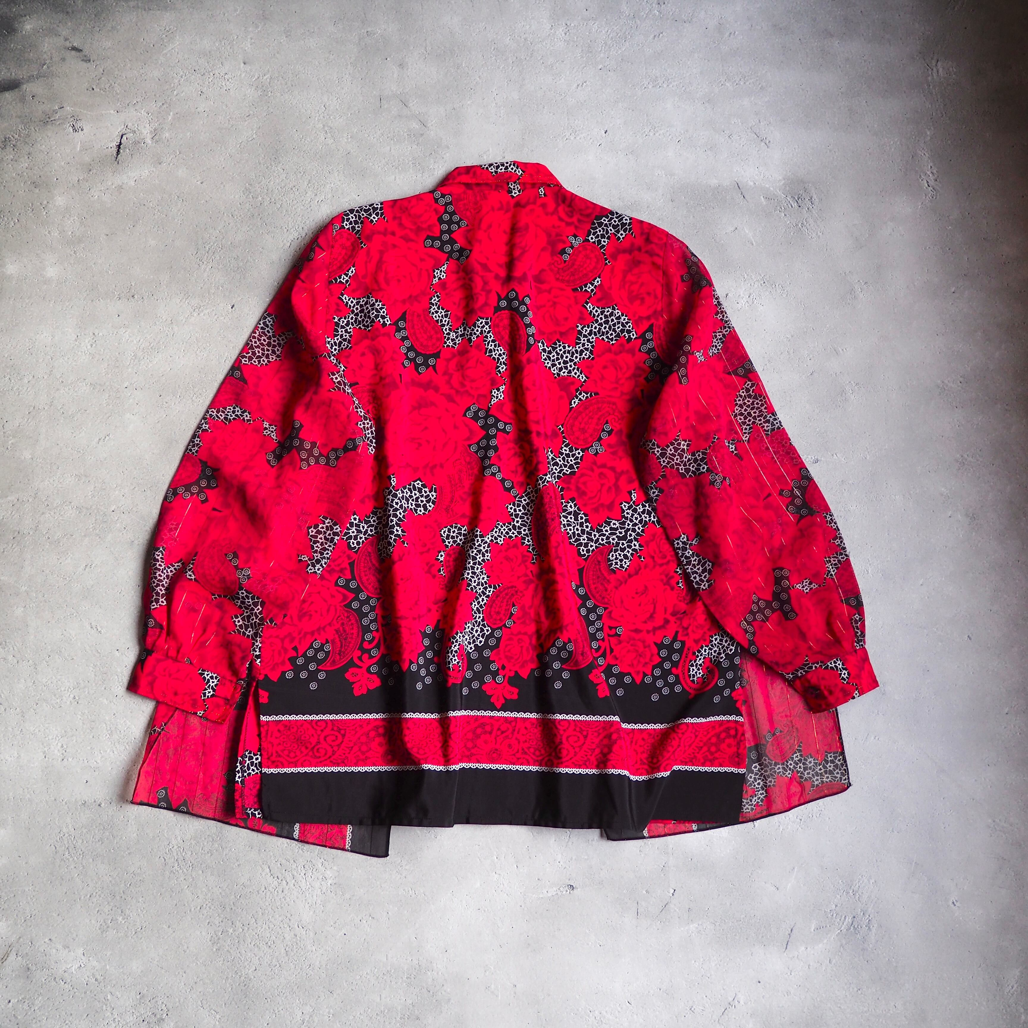 1990s ” 紅薔薇 ” Beautiful Flower pattern × Sheer Design vintage Shirt