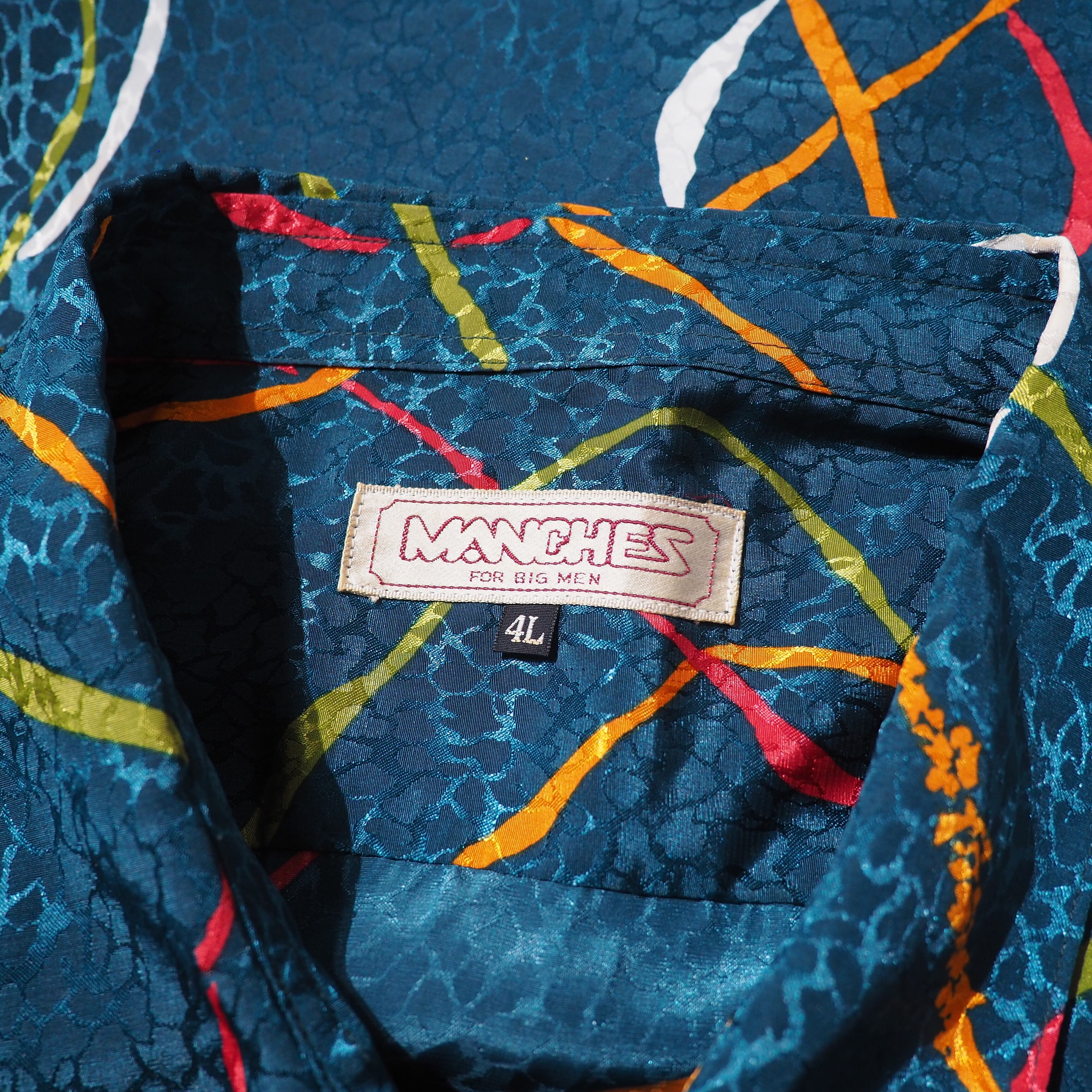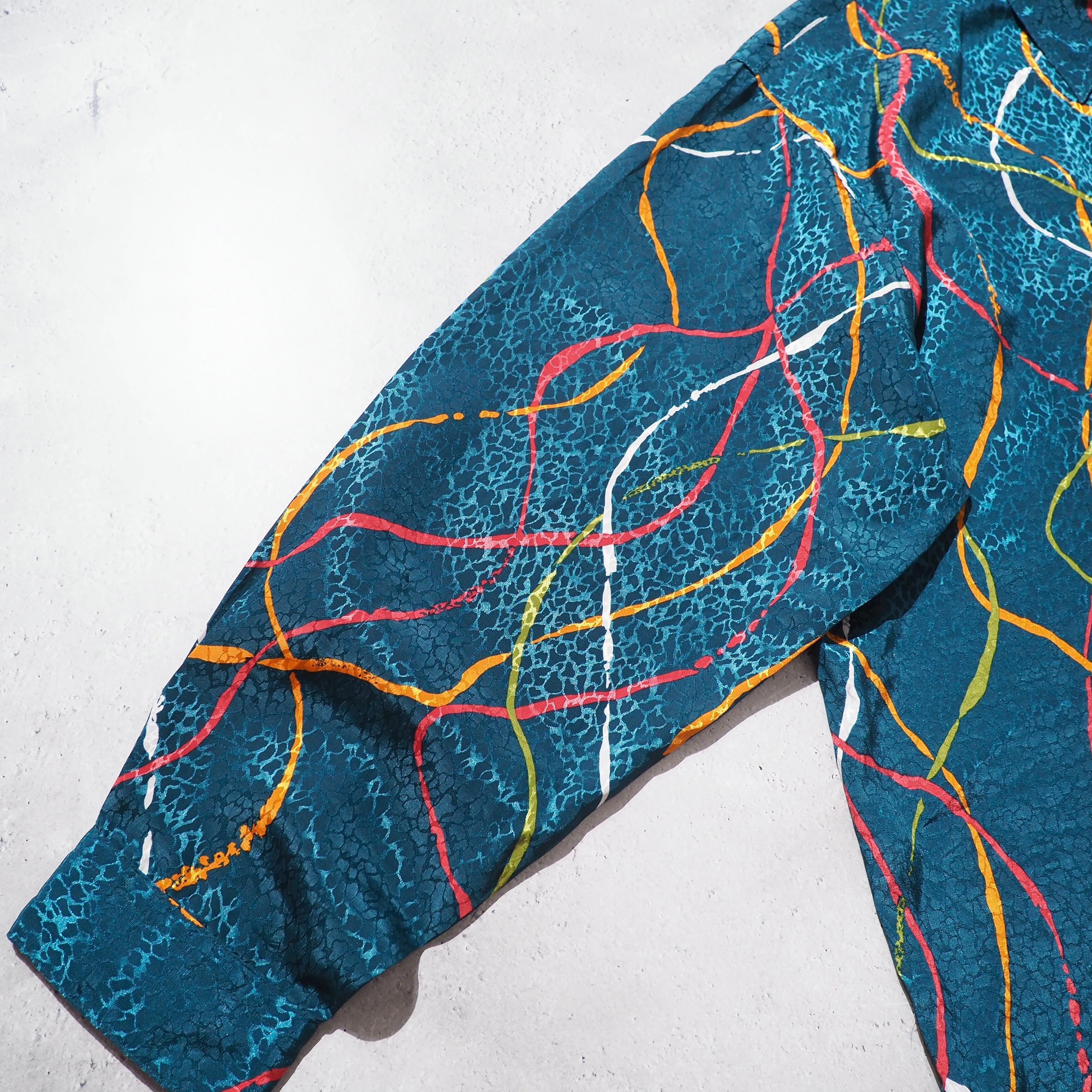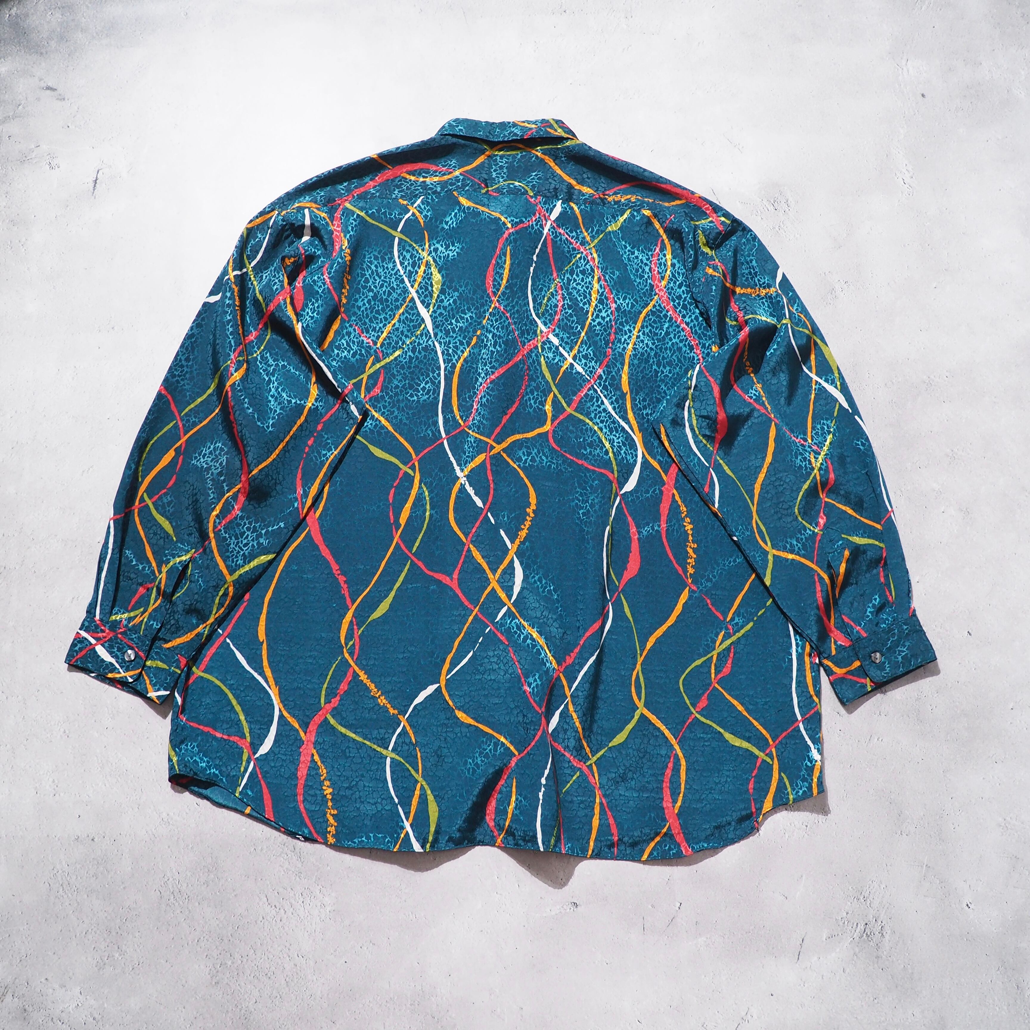 1980 - 90s " Manches " ” 超光沢 ” Undulation pattern Design vintage loose shirt