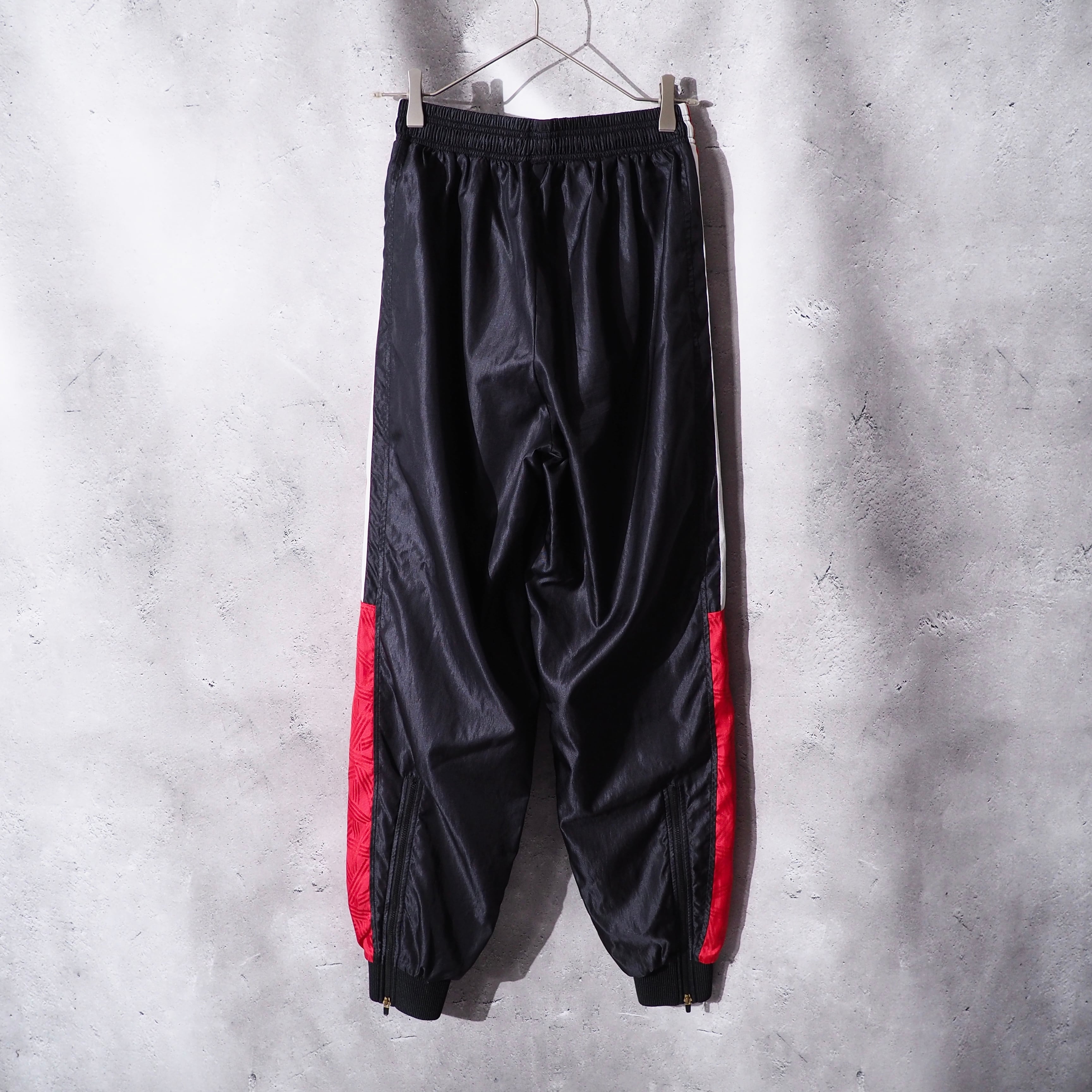 シャリ感のあるブラックナイロンに、ストライプ×光沢レッドパネルの切り替えがクールなセットアップ。状態もピンピンに良い。本日のスペシャルになります ☺︎