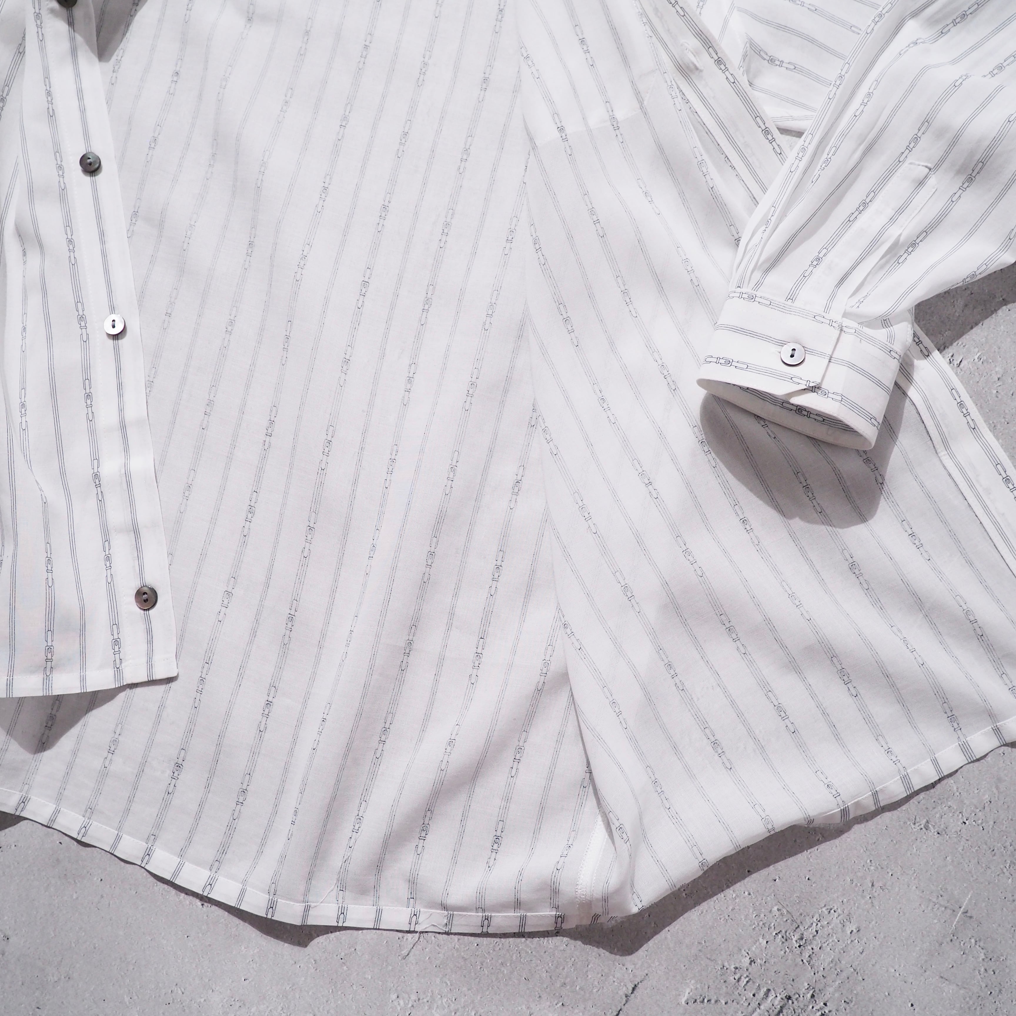 1990s " ROCK " Belt stripe pattern vintage White Dress shirt