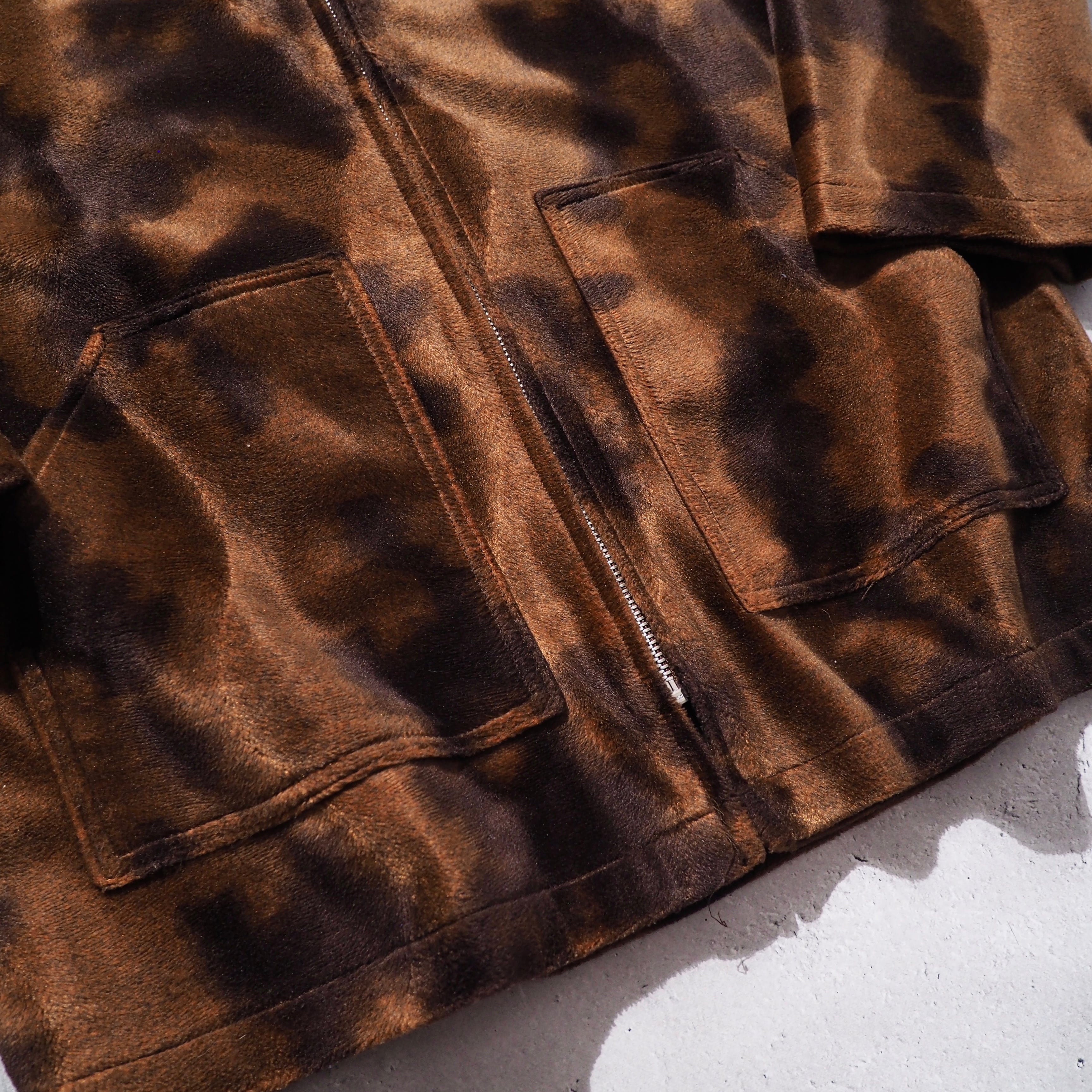 1980 - 90s Shiny velour × Animal pattern vintage Full zip Parker