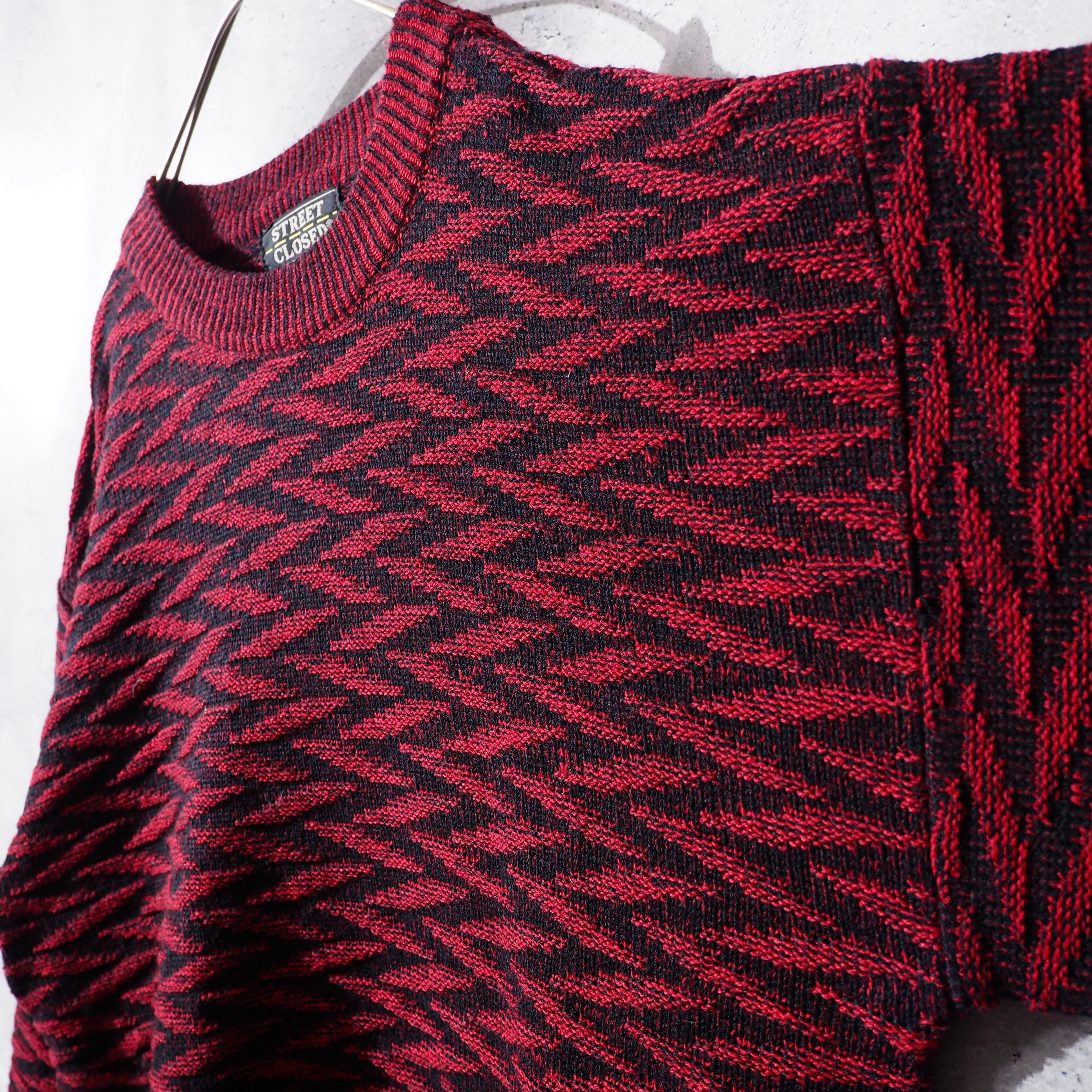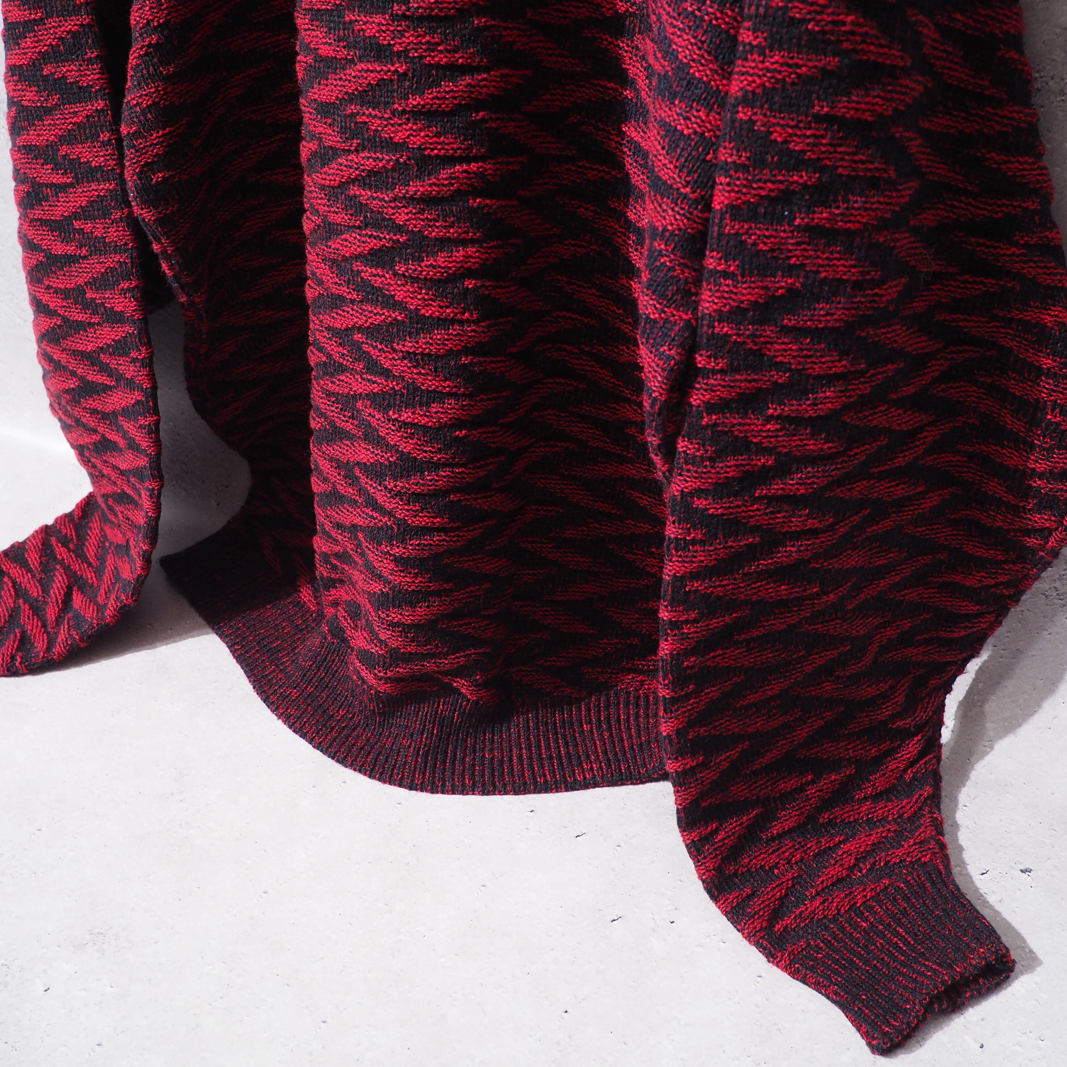 1990s " Zigzag " Dark red Solid weaving vintage loose knit