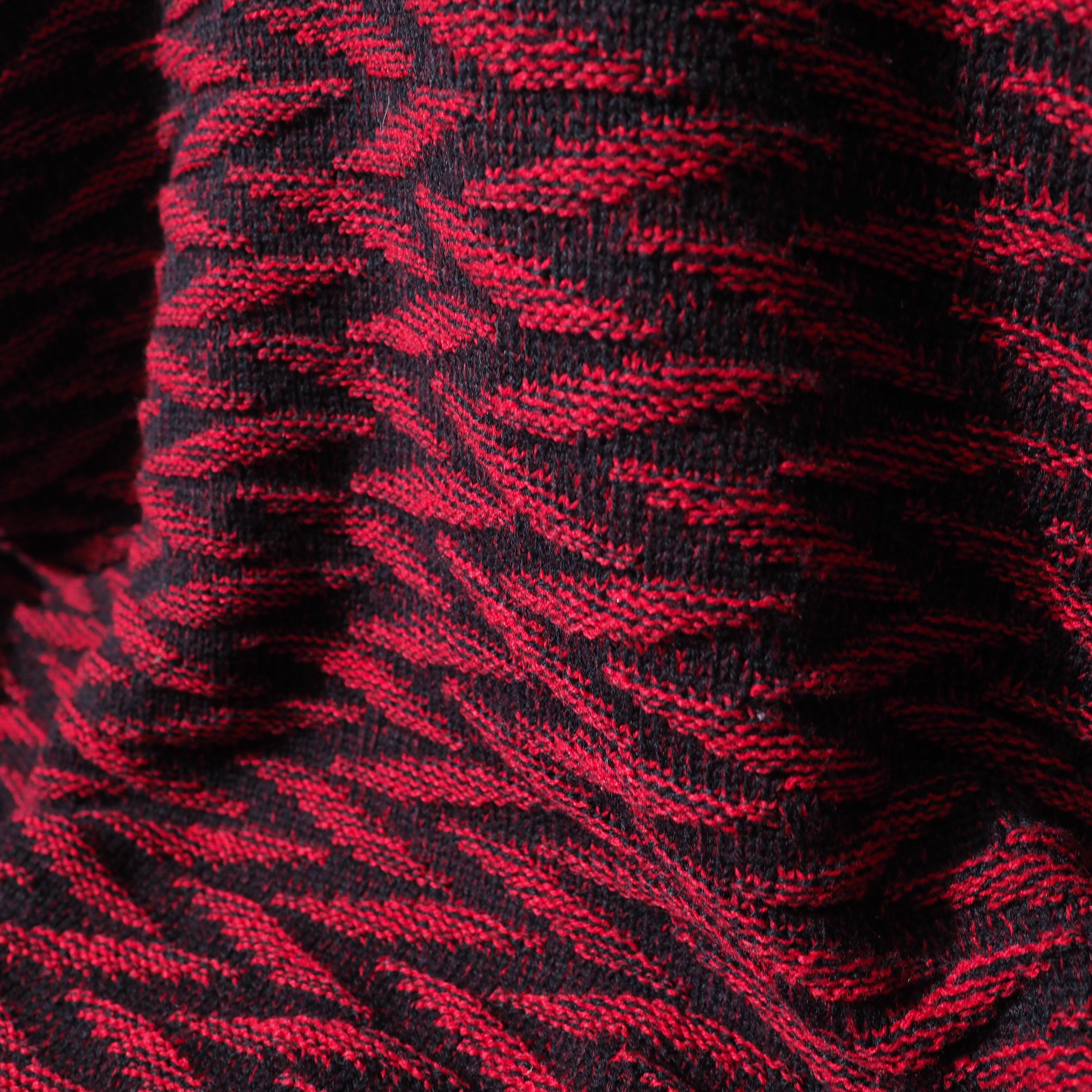 ジグザグと折り重なる立体織りが特徴的なニット。