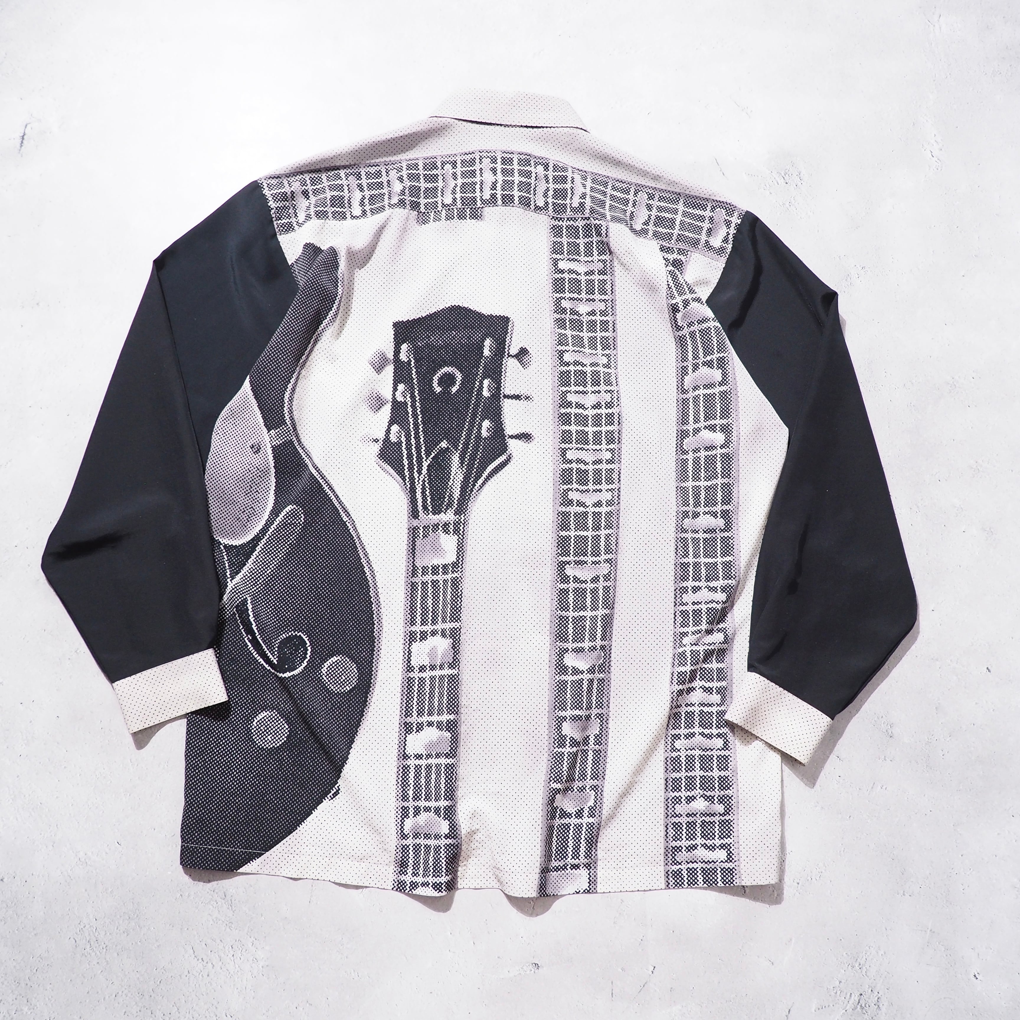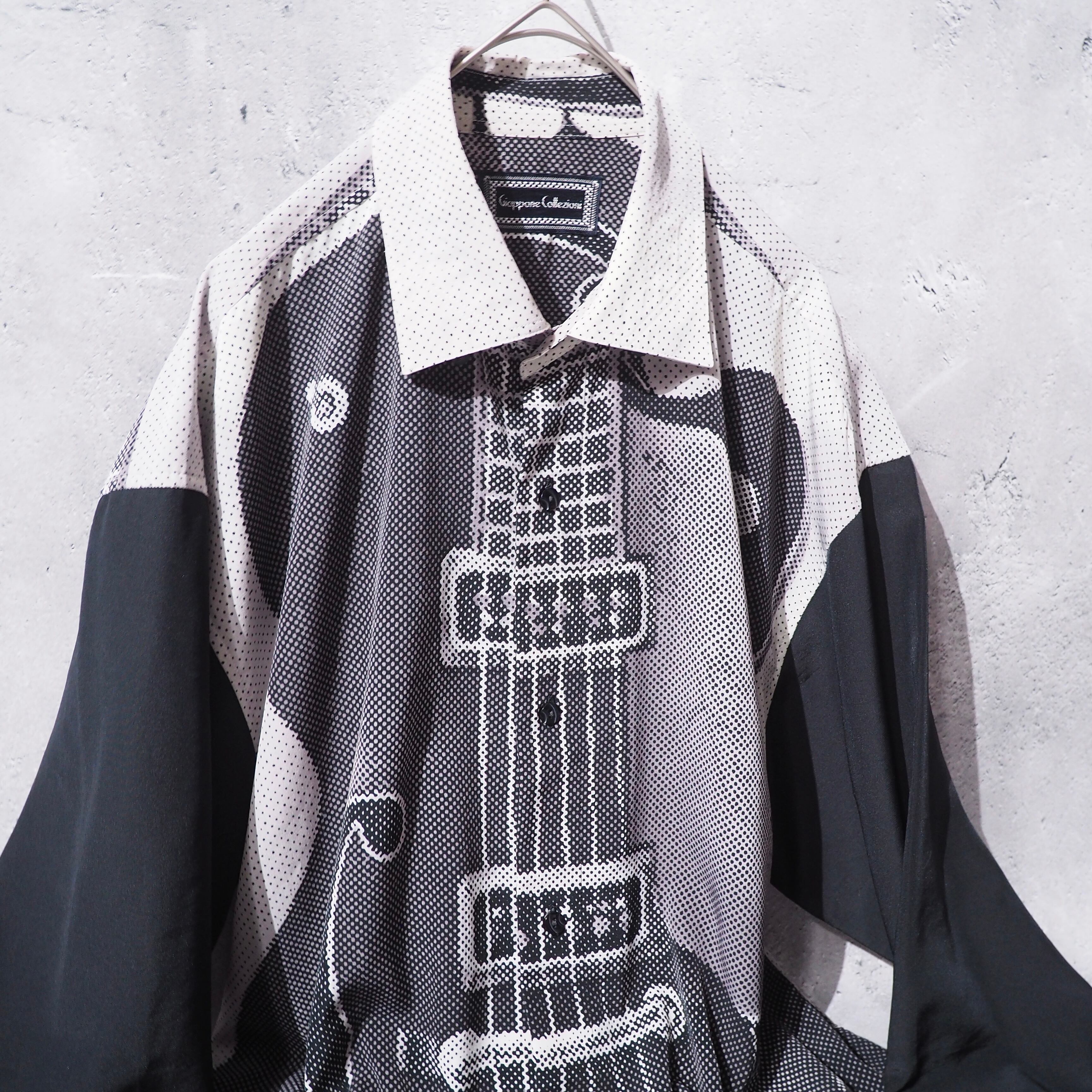 1980s " No Music No Life " Graphic printed vintage Drape loose shirt
