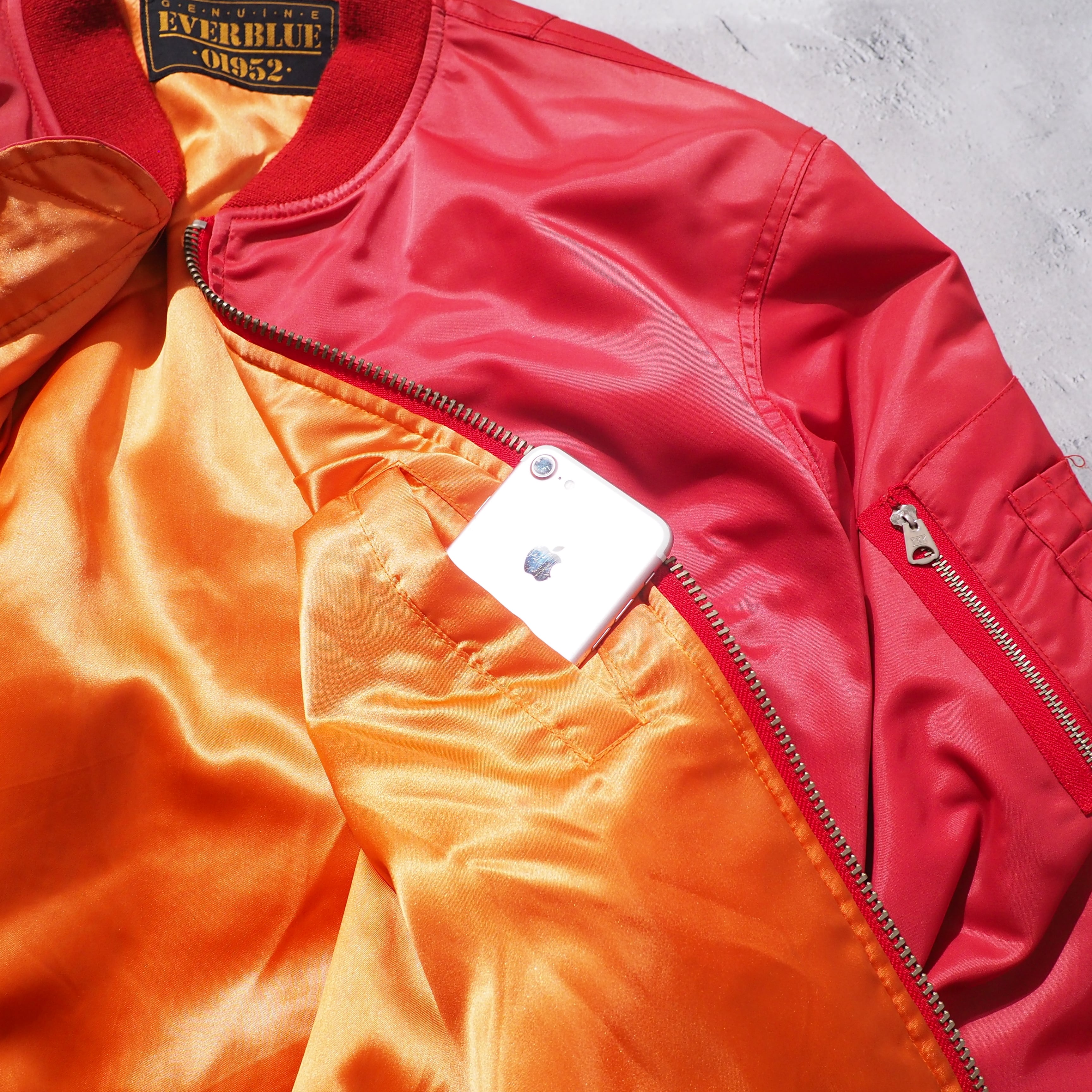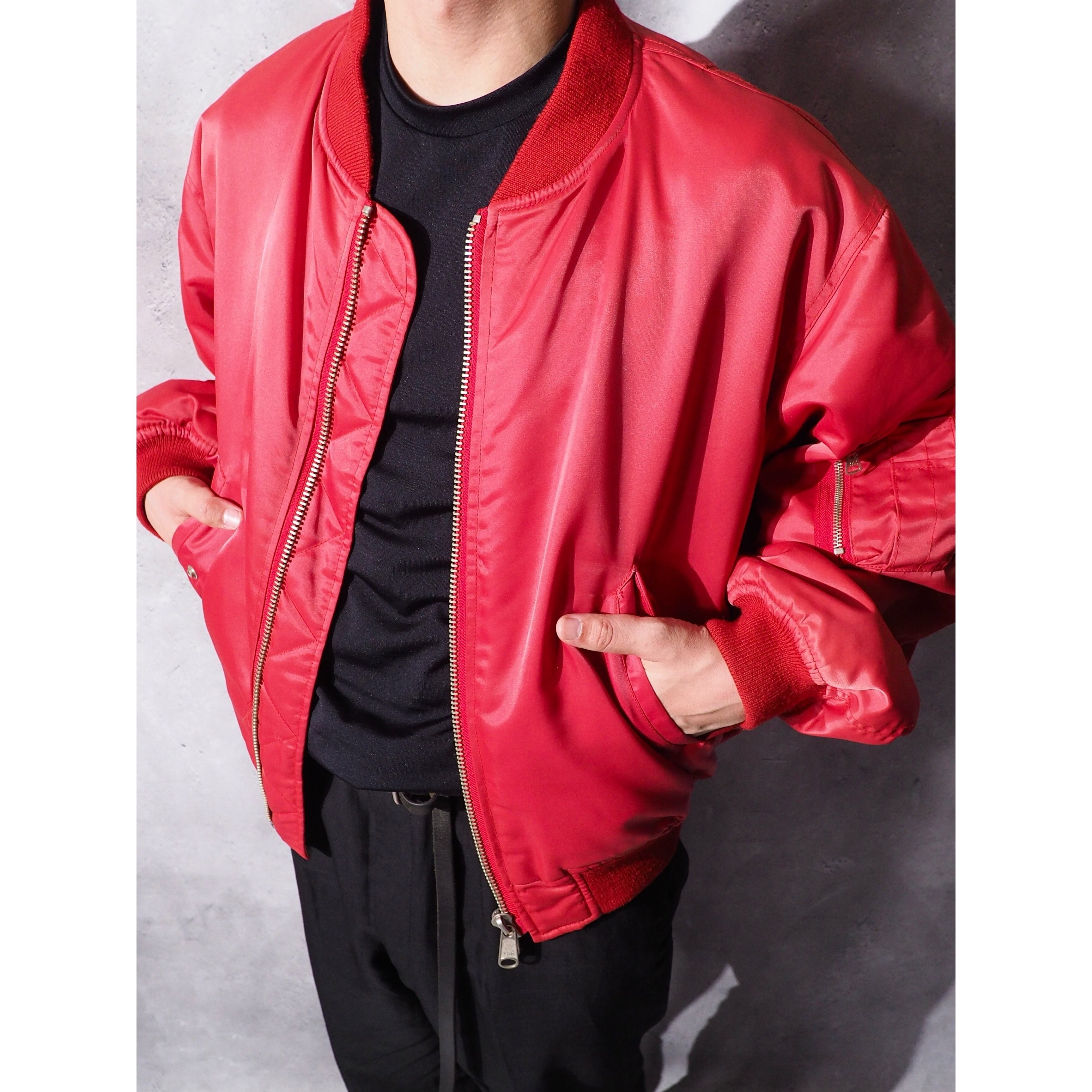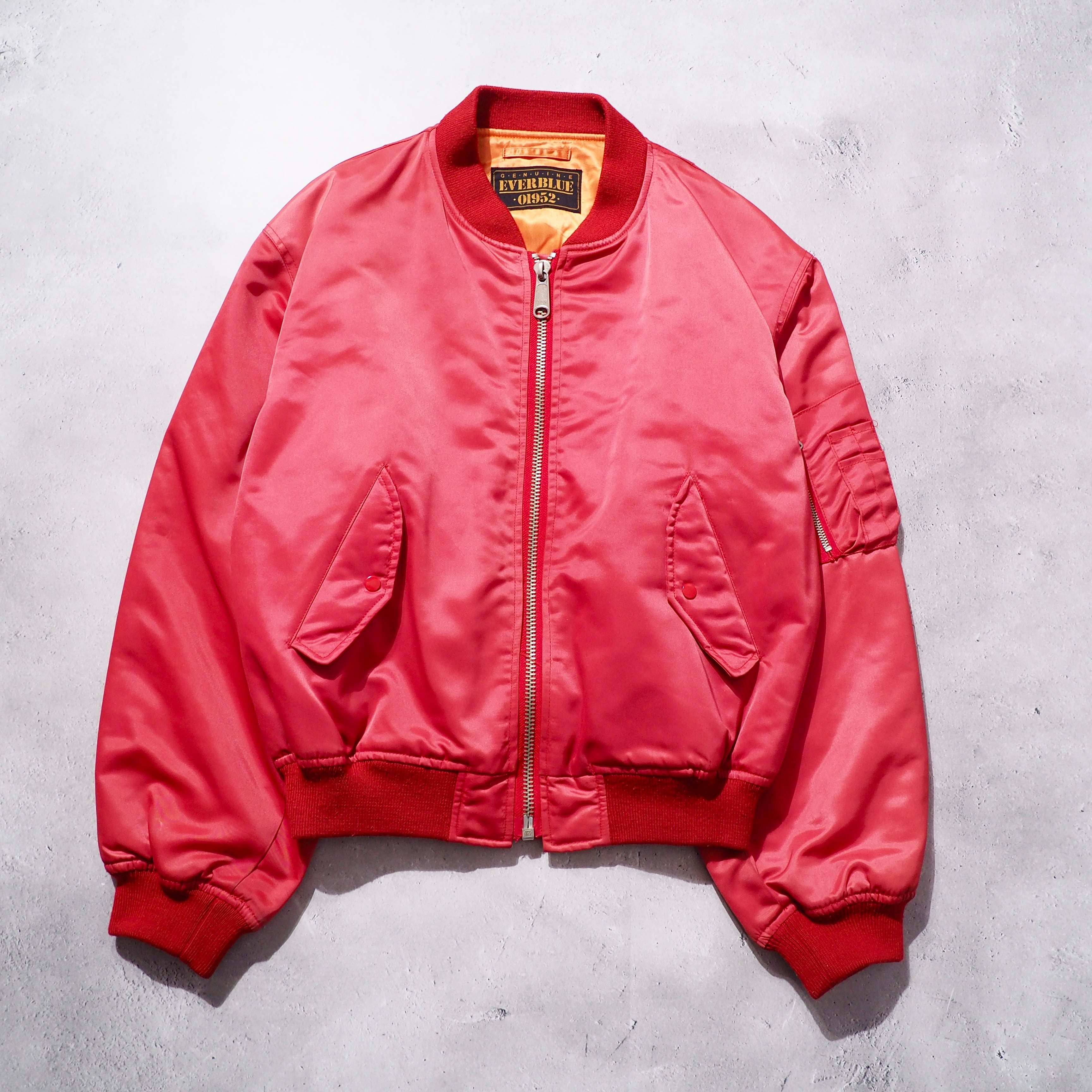 オーバーなシルエットとサイジングに、色鮮やかなレッド×オレンジのお色が可愛いヴィンテージMA-1フライトジャケット。