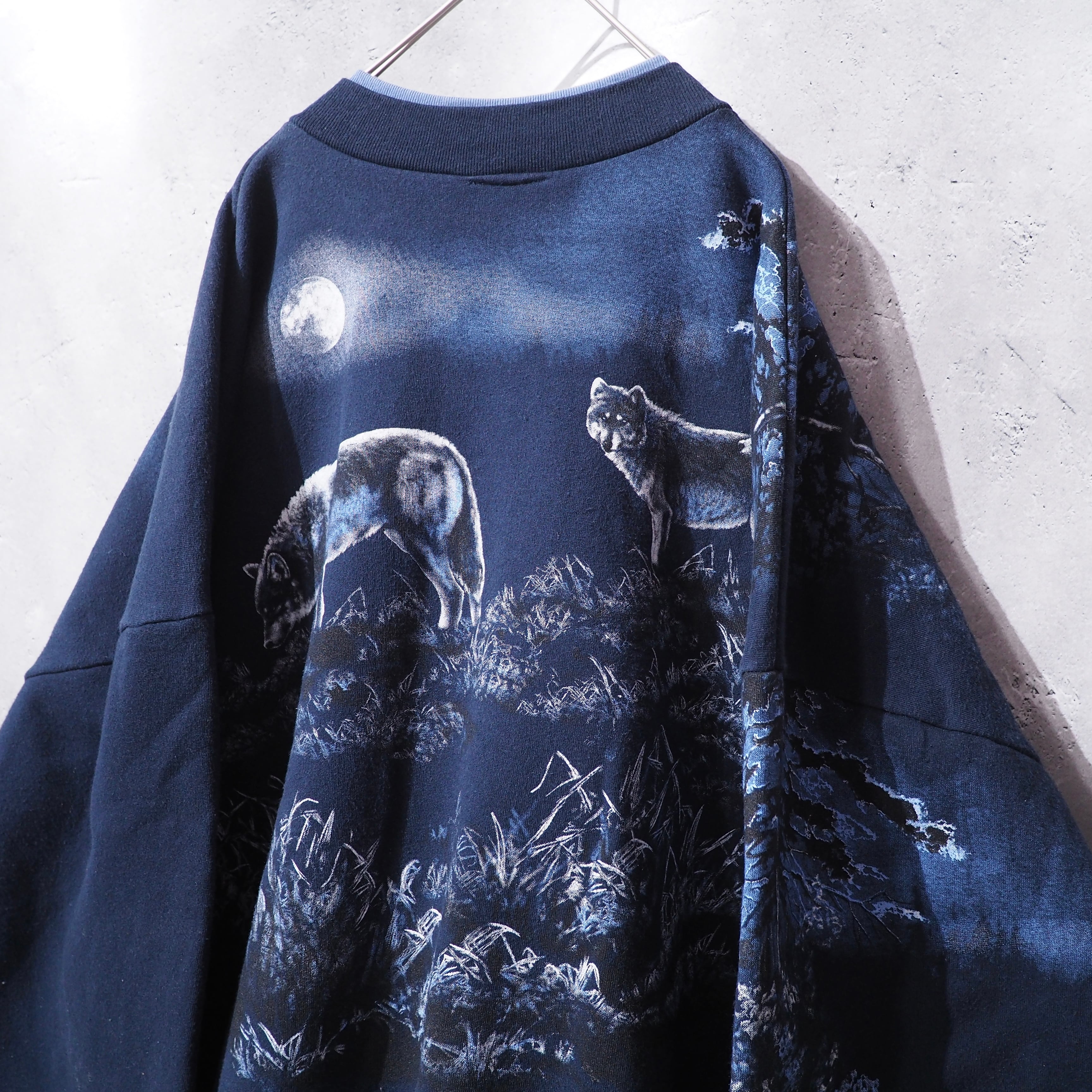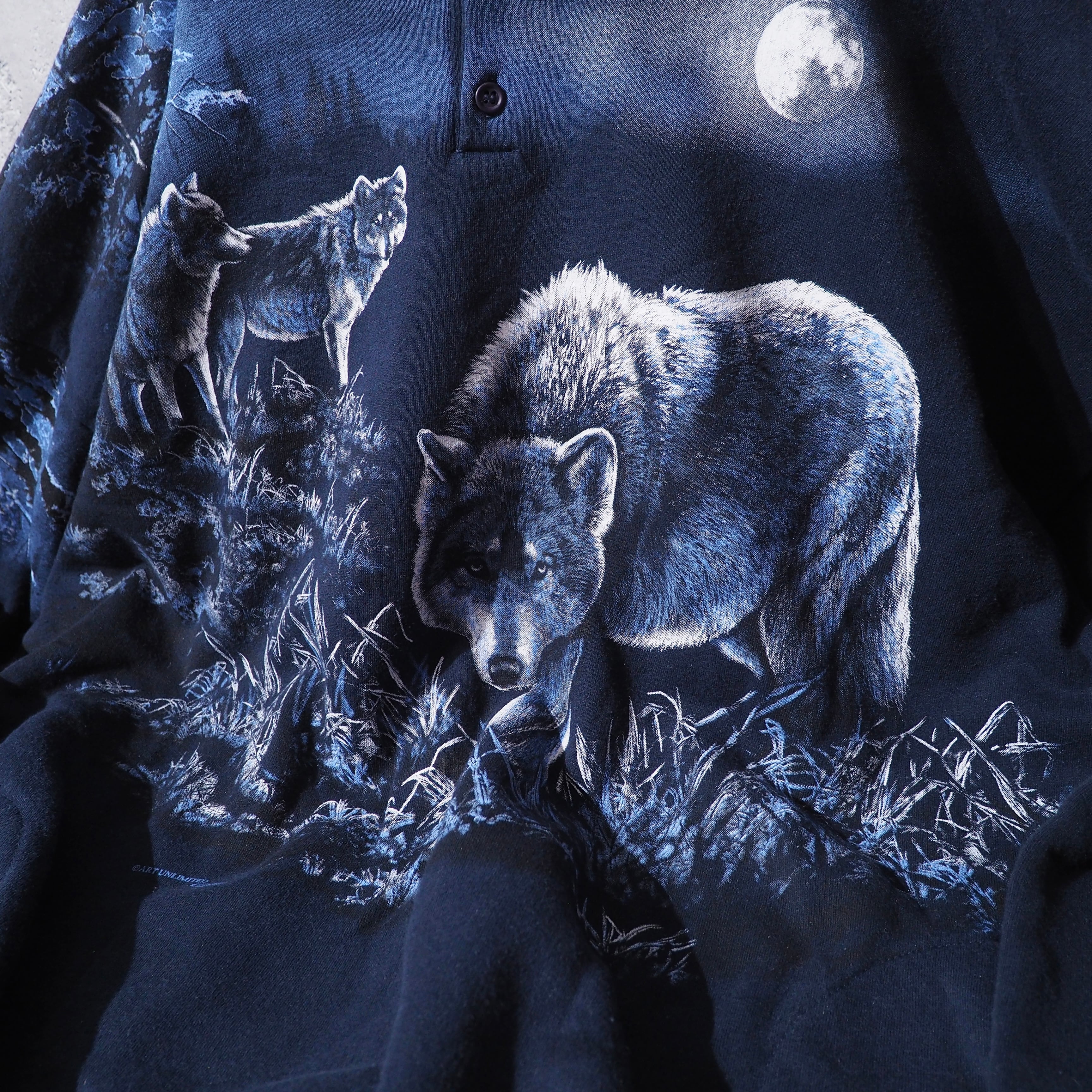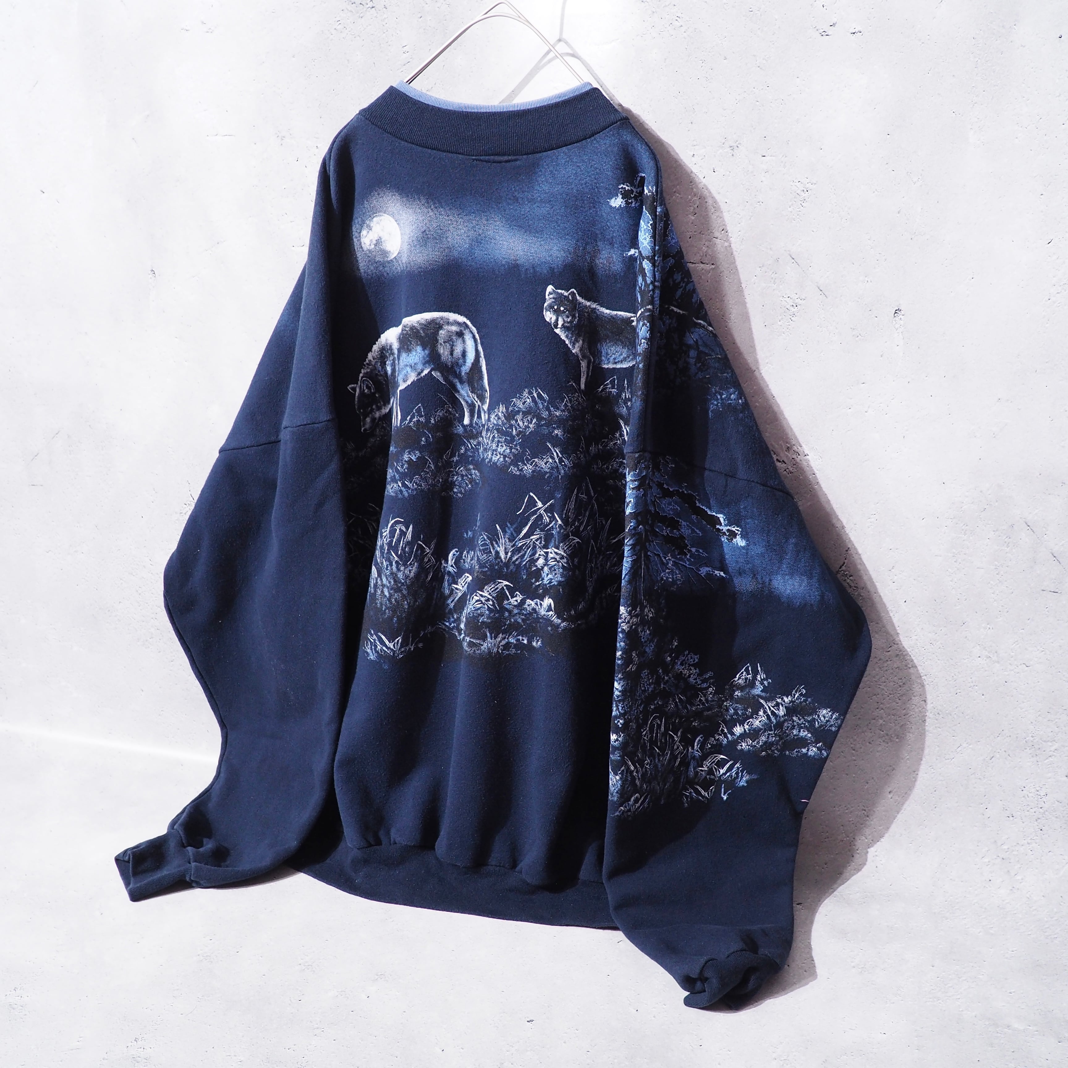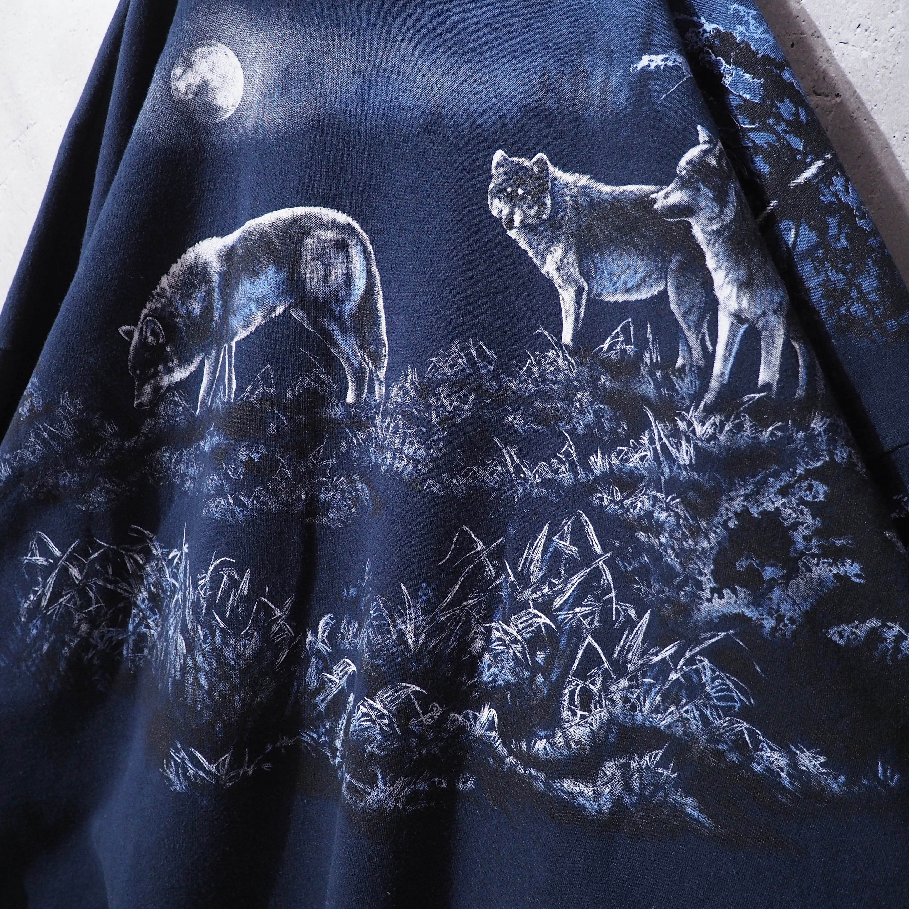 1990s " Made in USA - Wolf in the Moonlight " vintage loose Sweat shirt