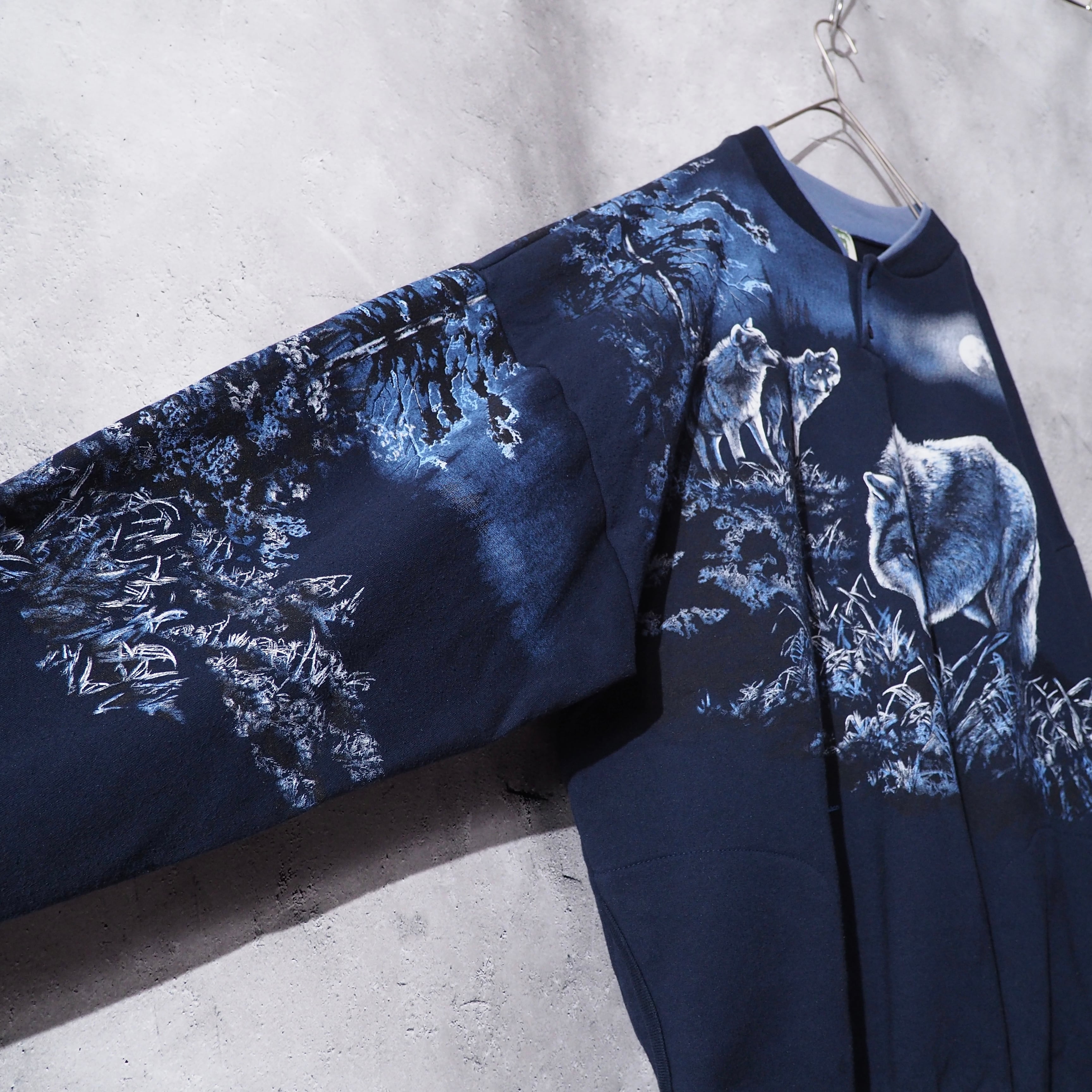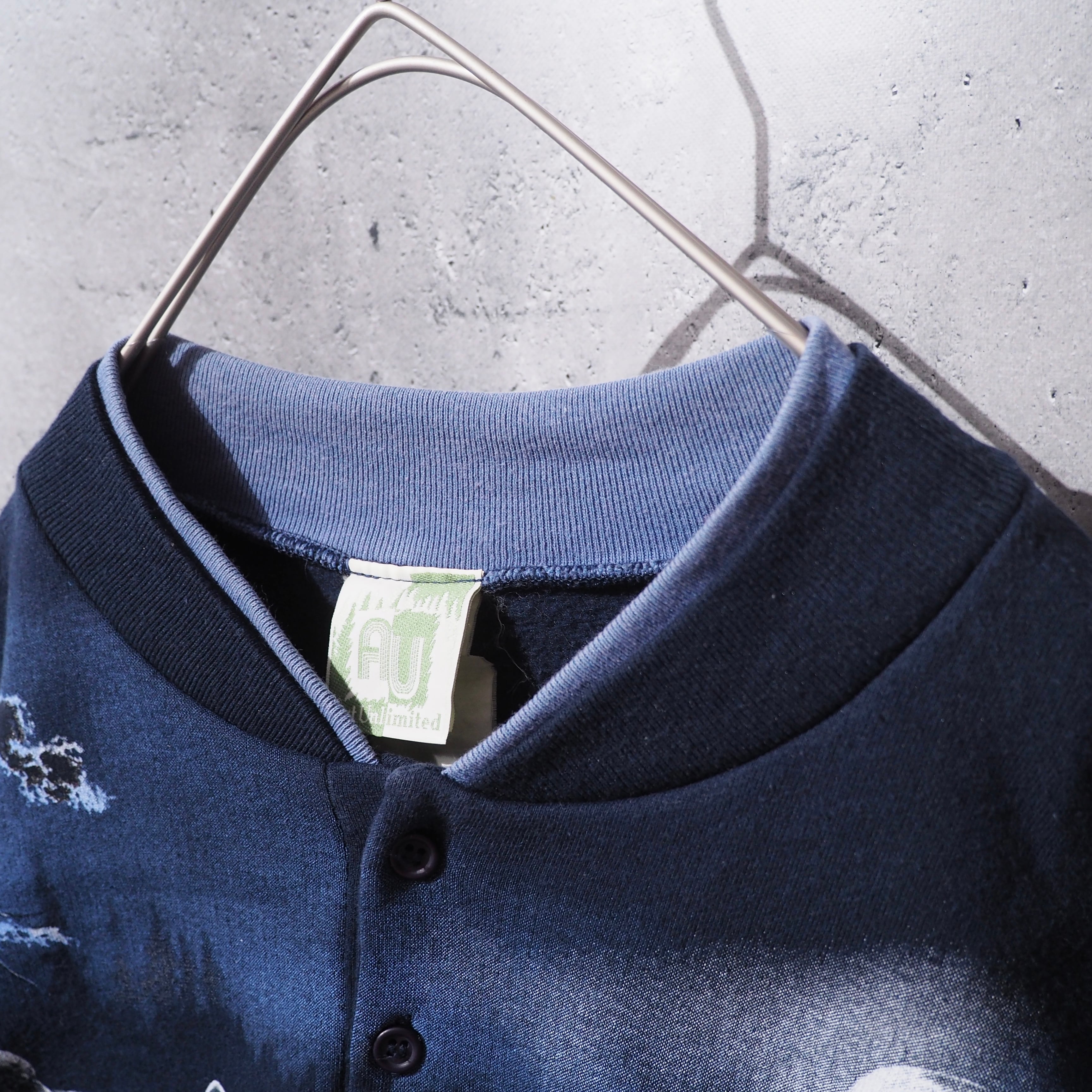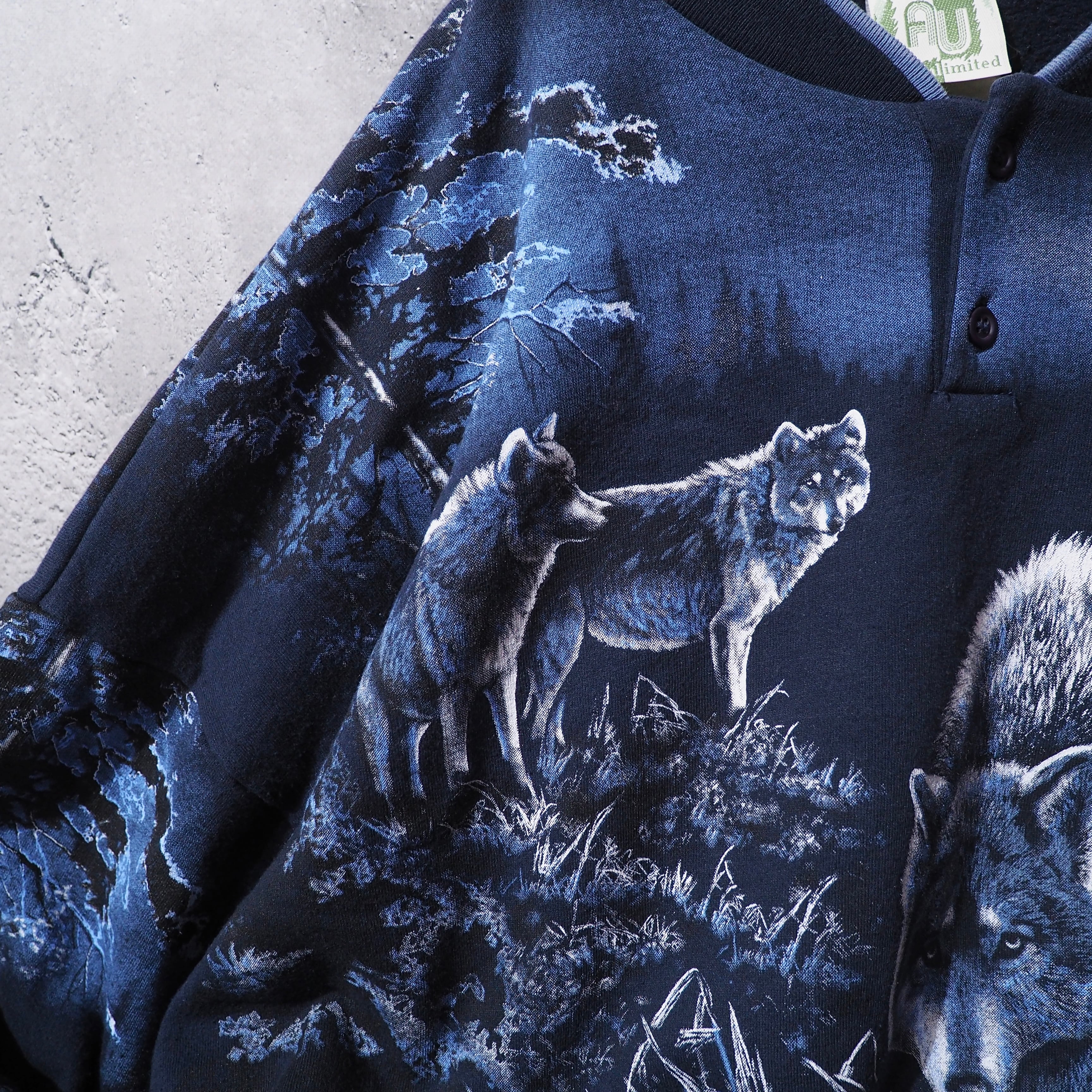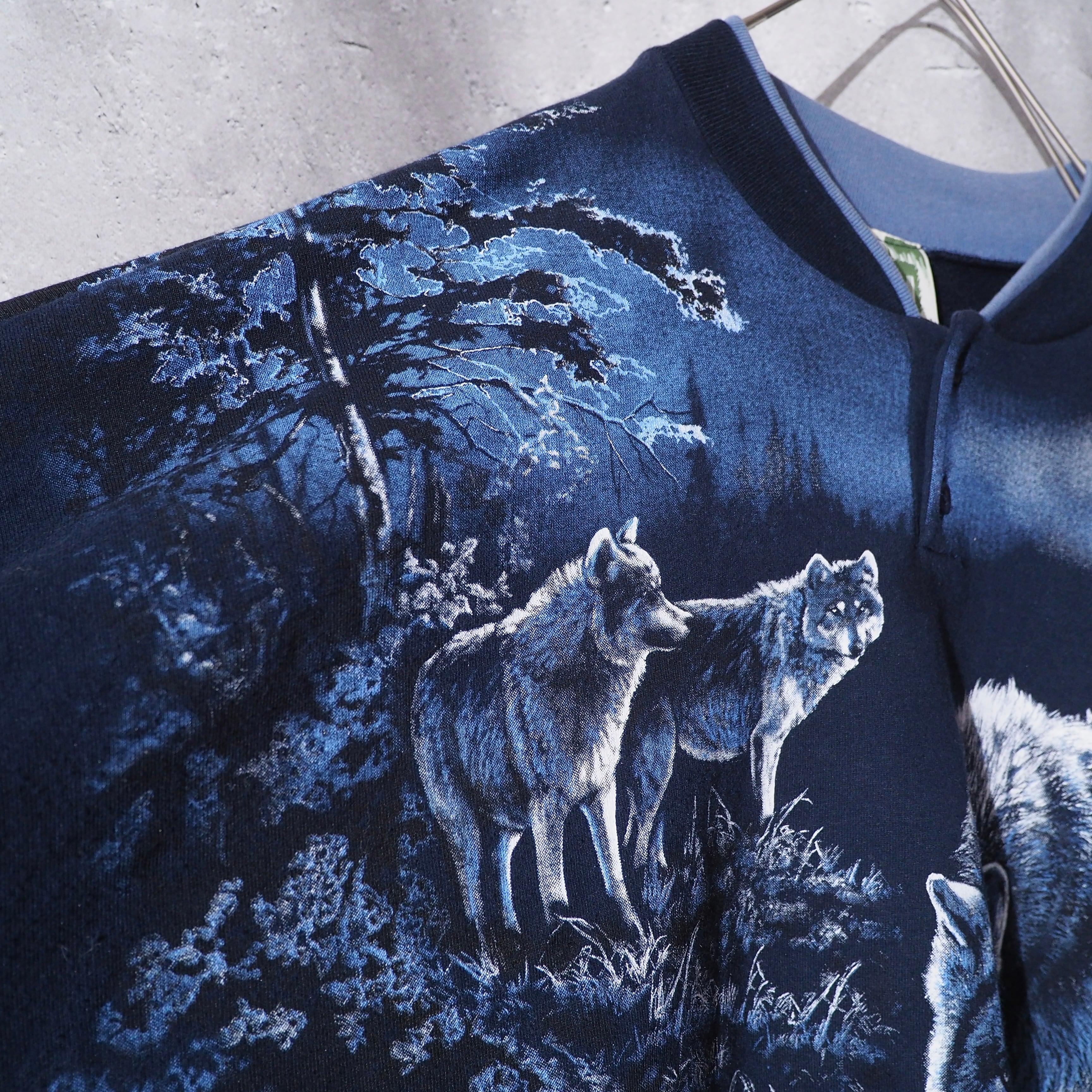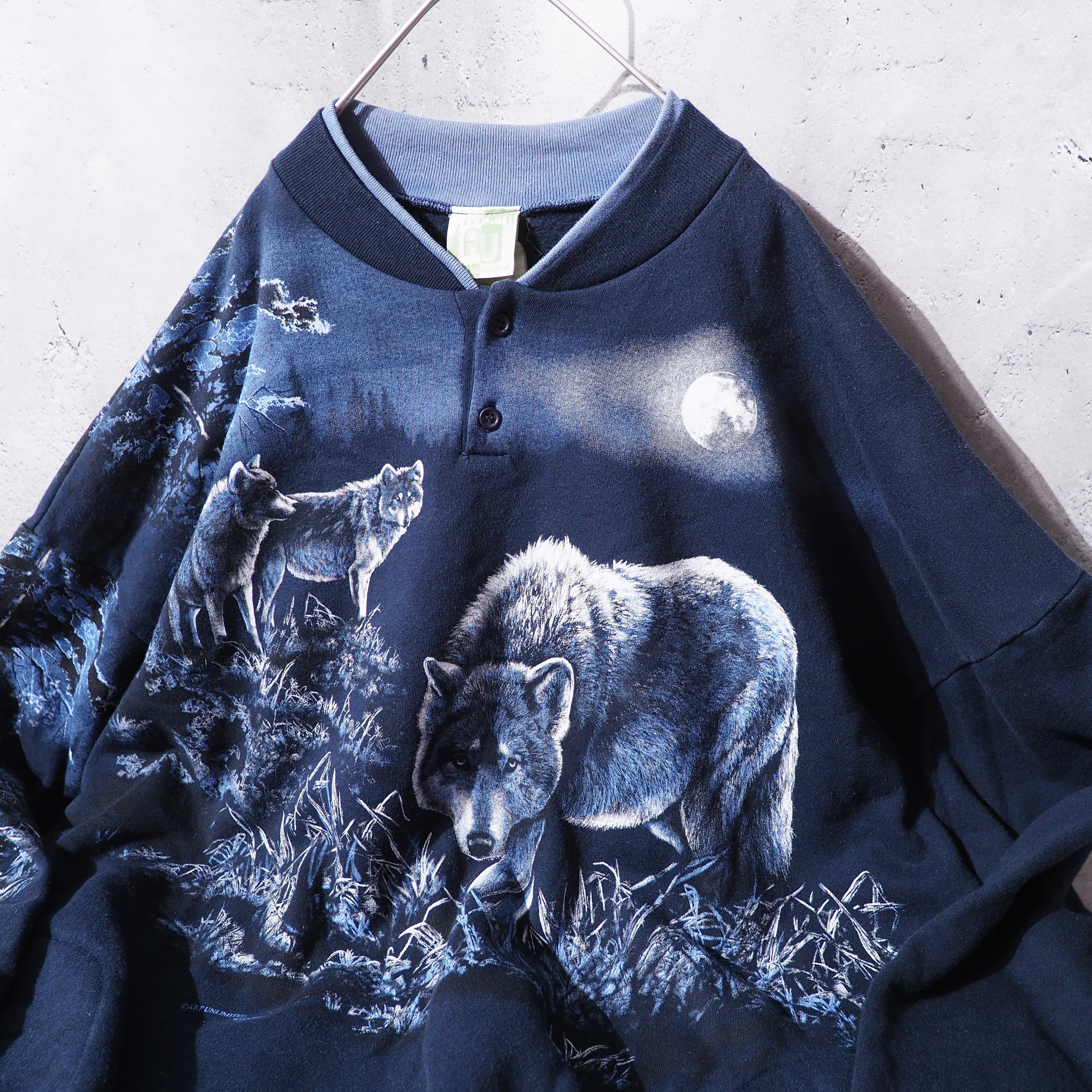 1990s " Made in USA - Wolf in the Moonlight " vintage loose Sweat shirt