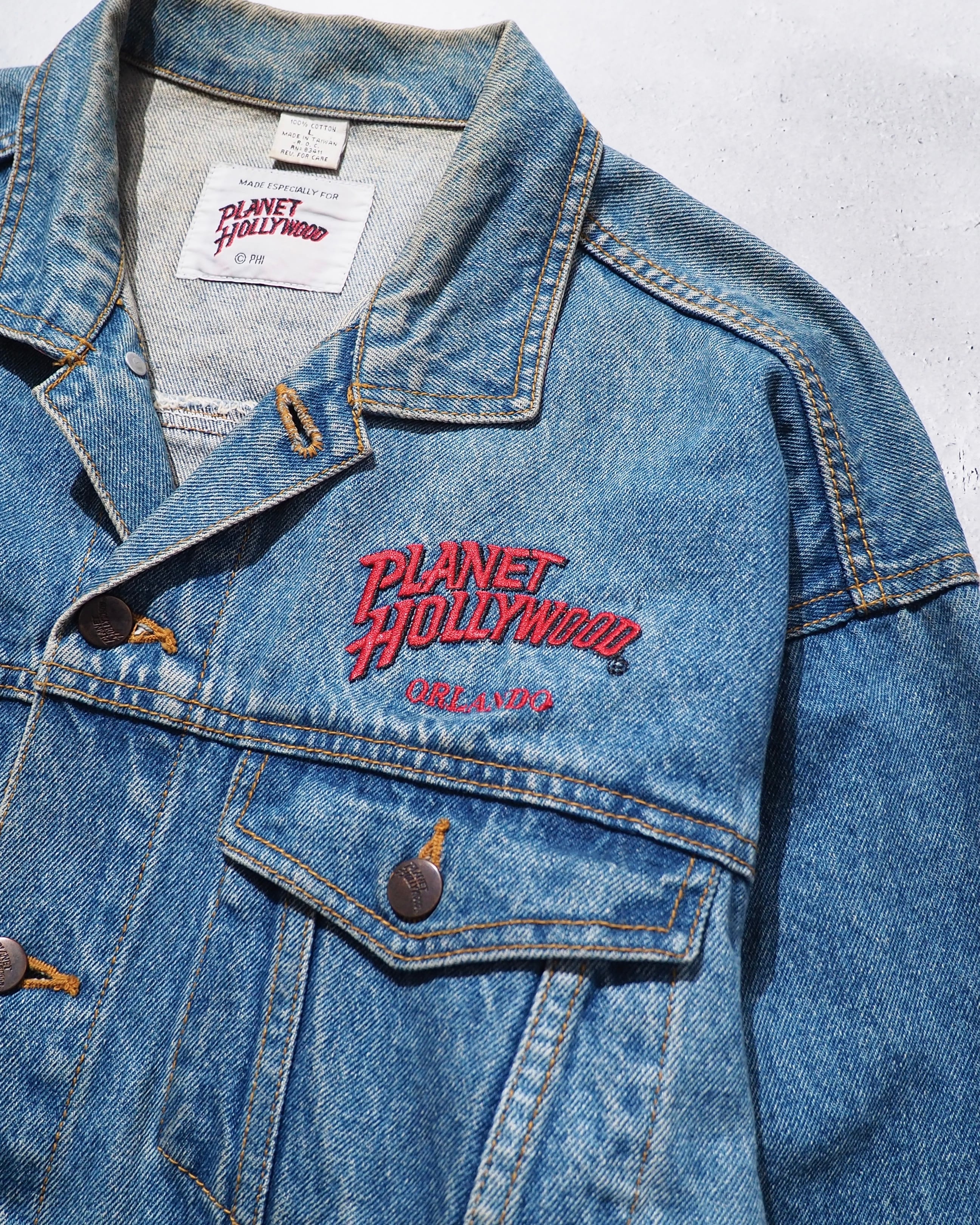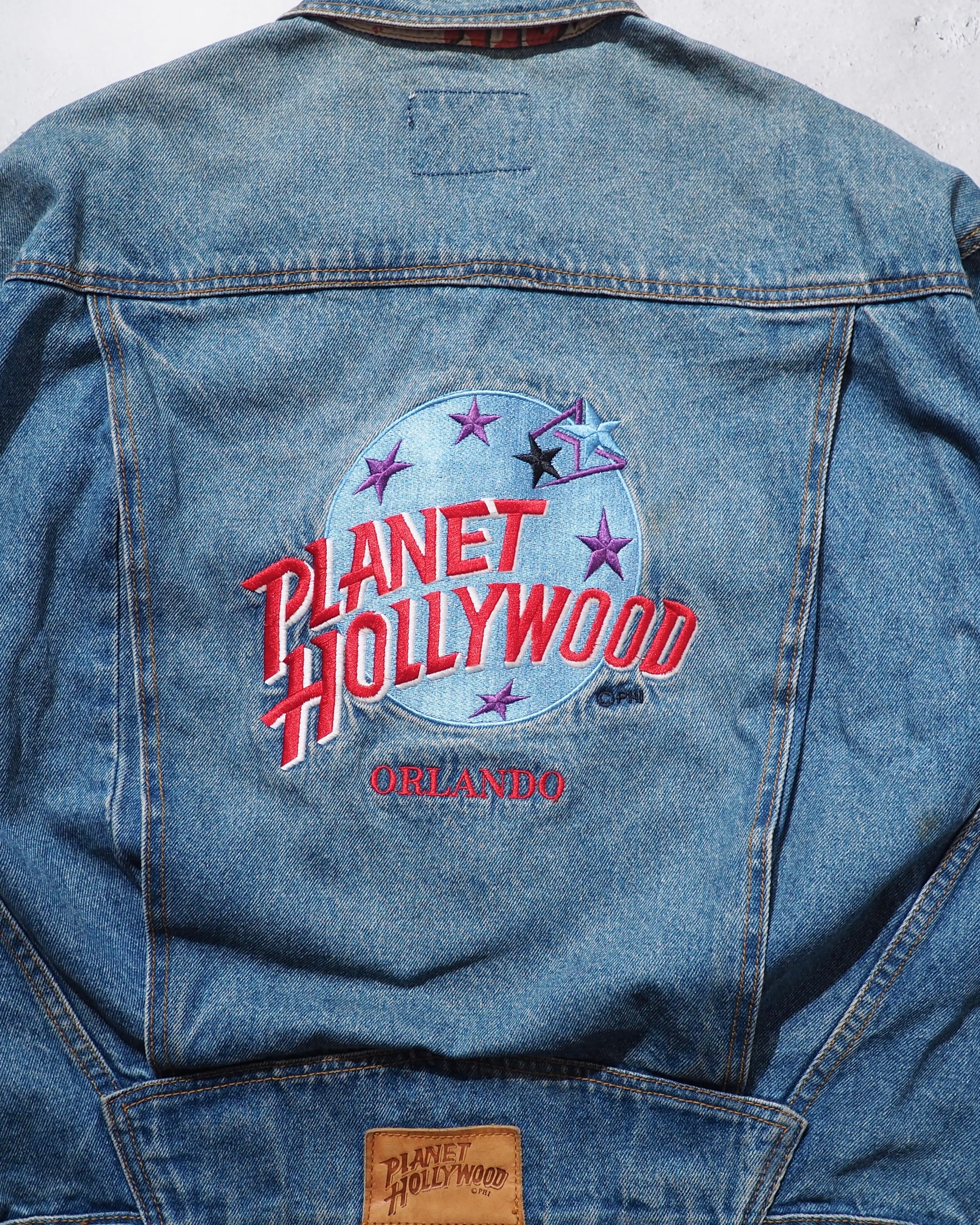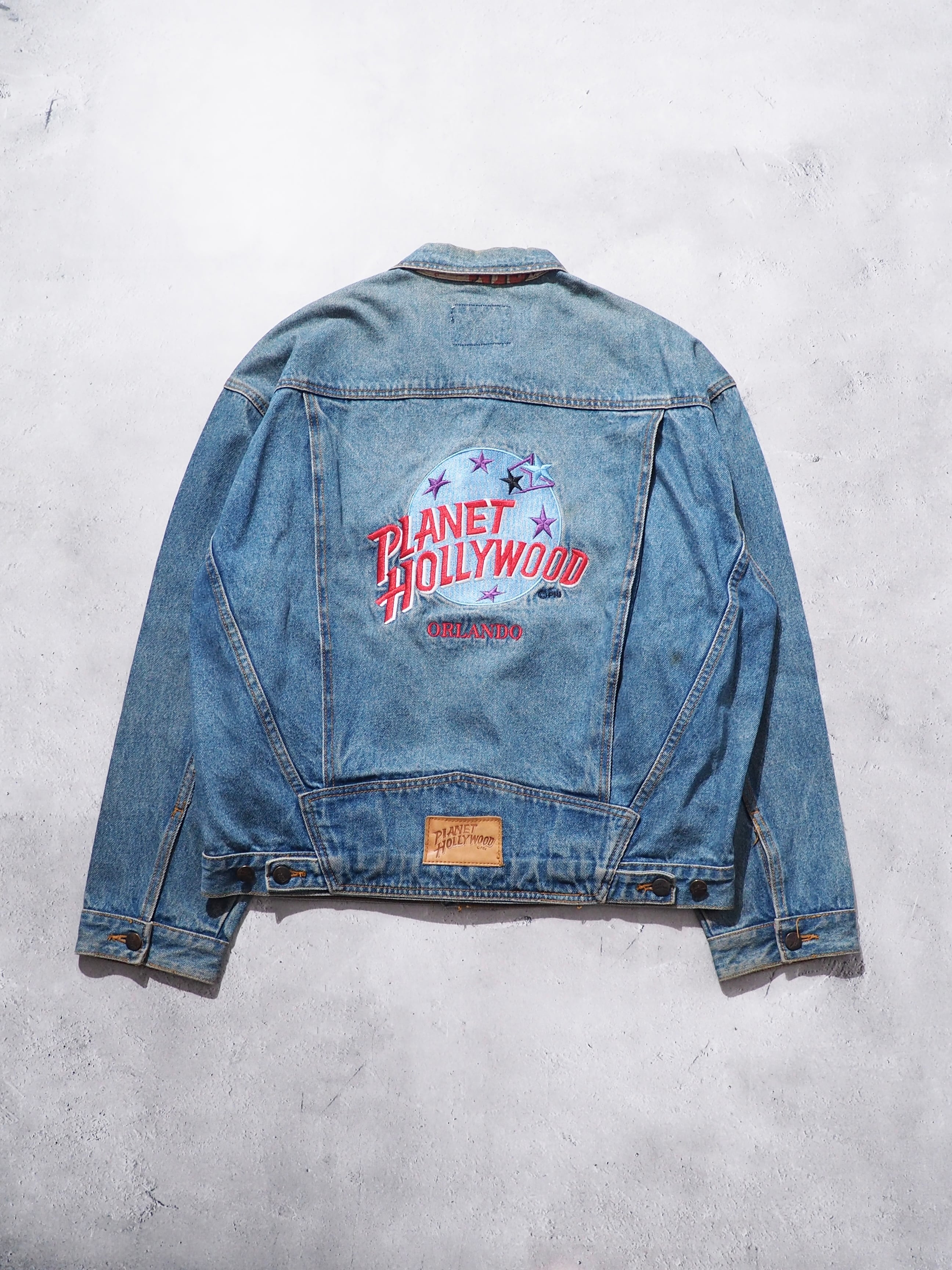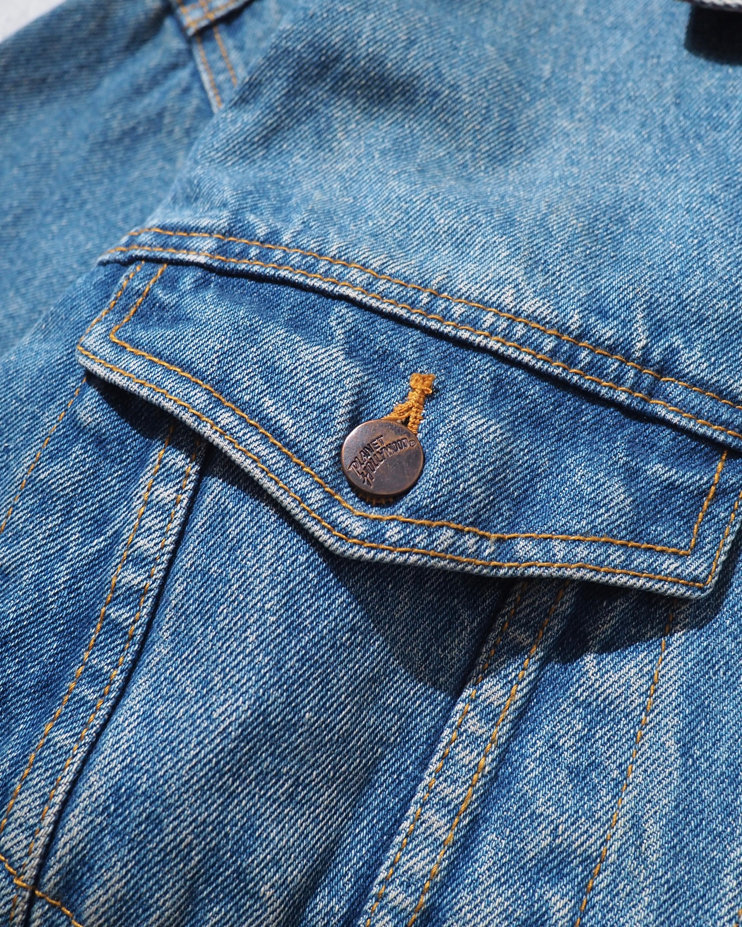 1990s " PLANET HOLLYWOOD " Blue planet Logo Embossed vintage loose Denim jacket