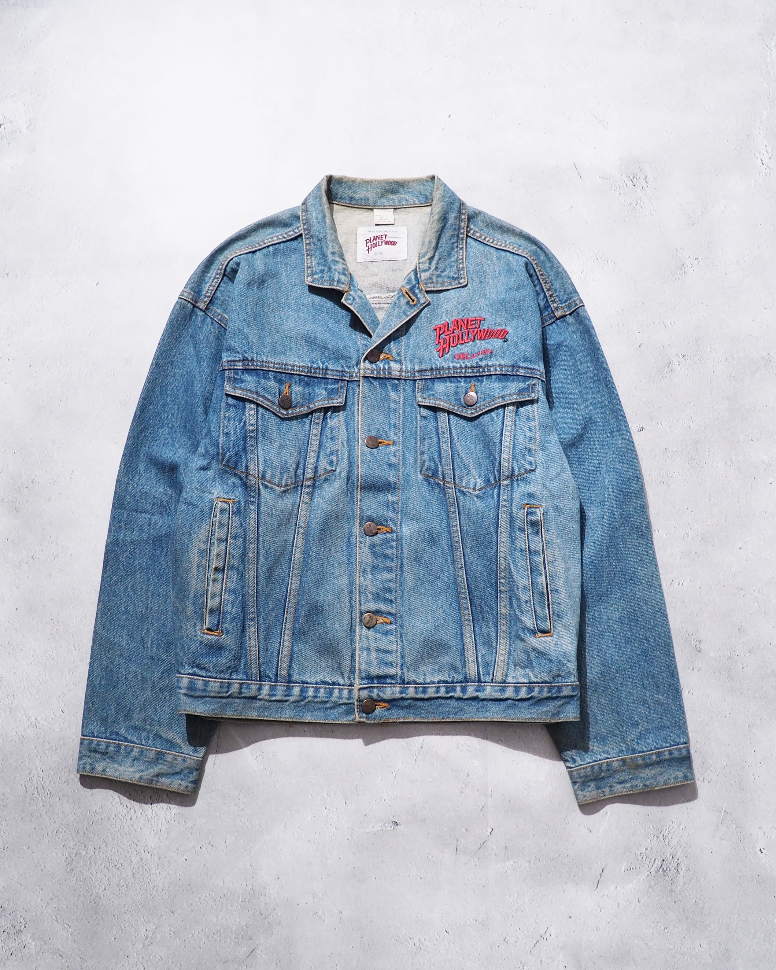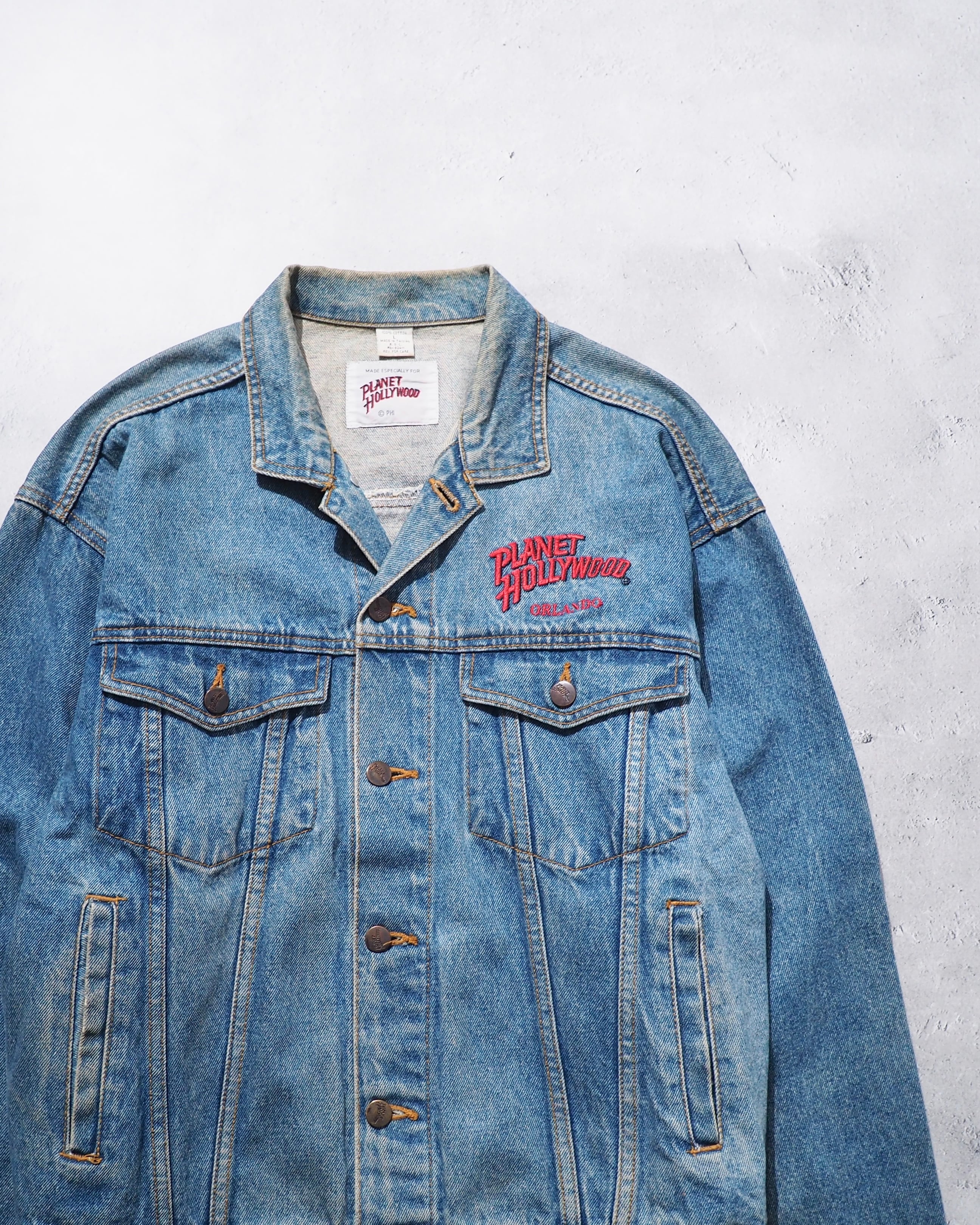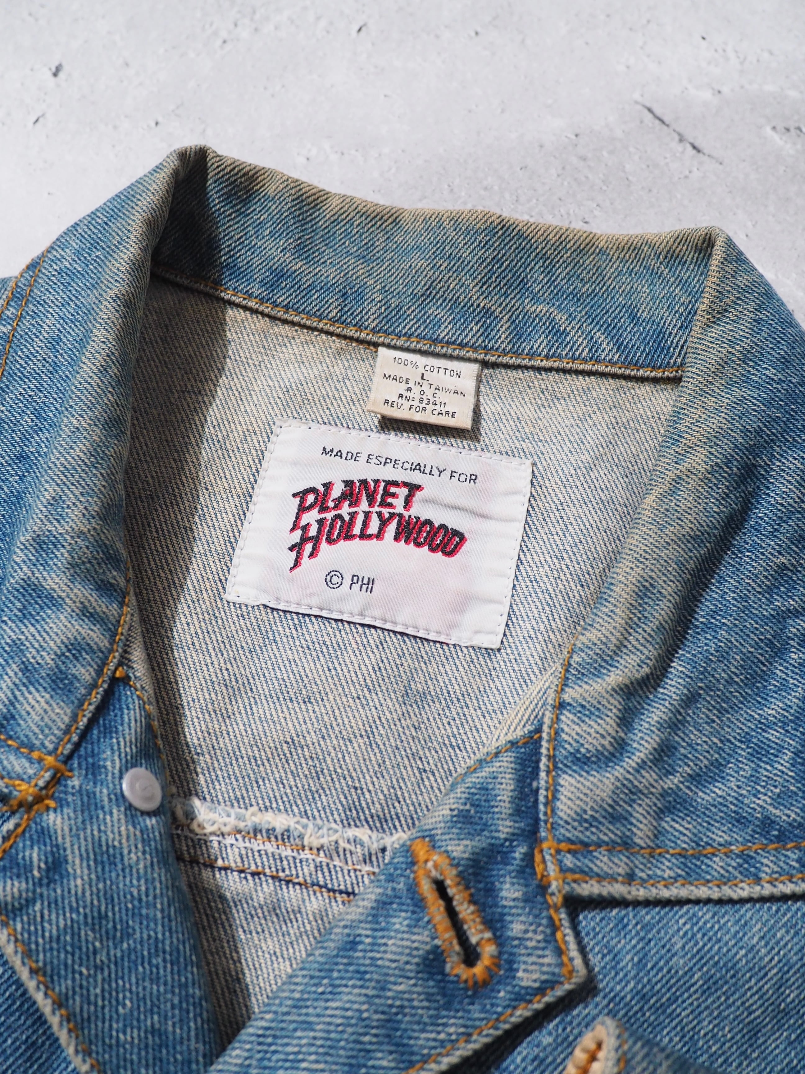 1990s " PLANET HOLLYWOOD " Blue planet Logo Embossed vintage loose Denim jacket