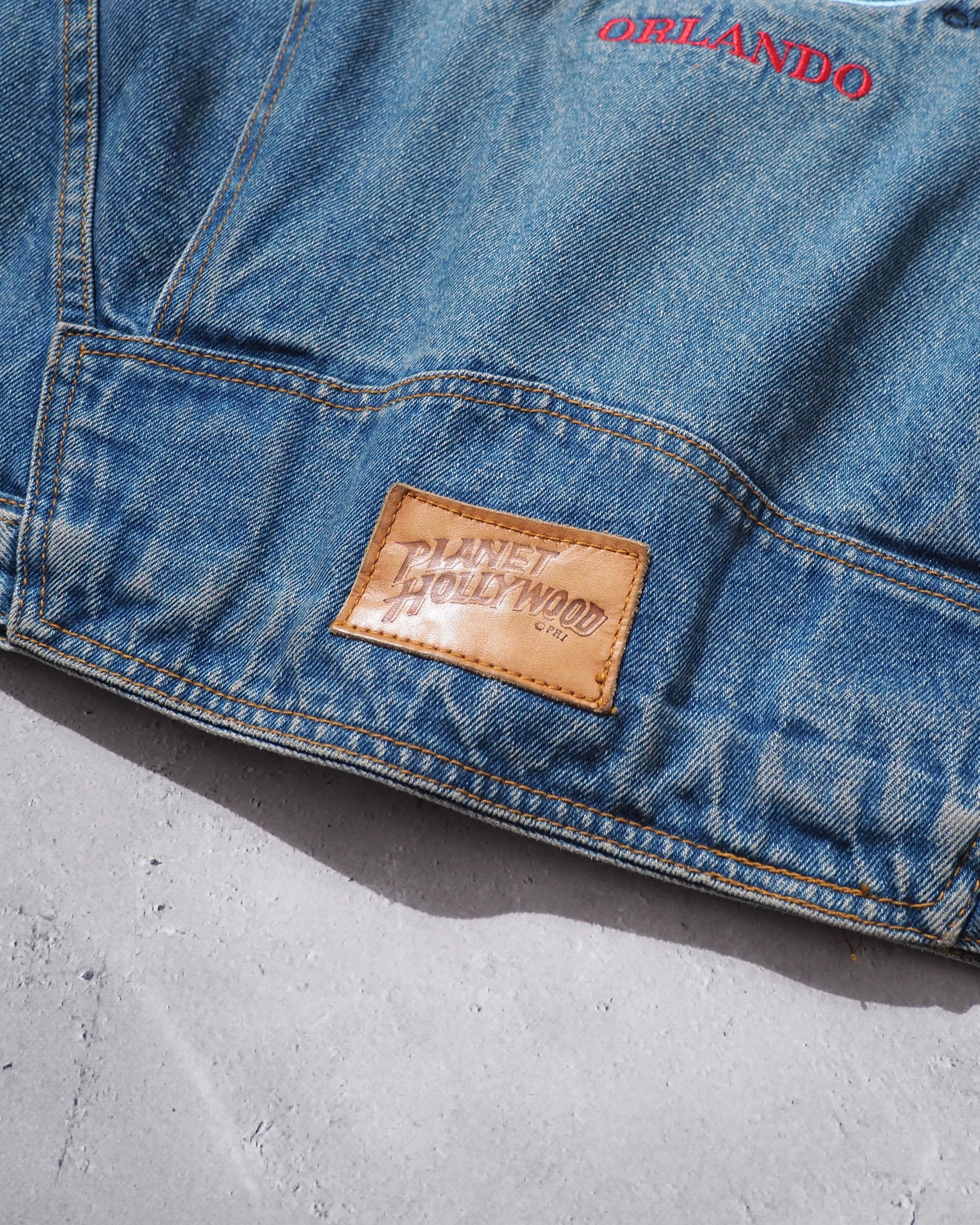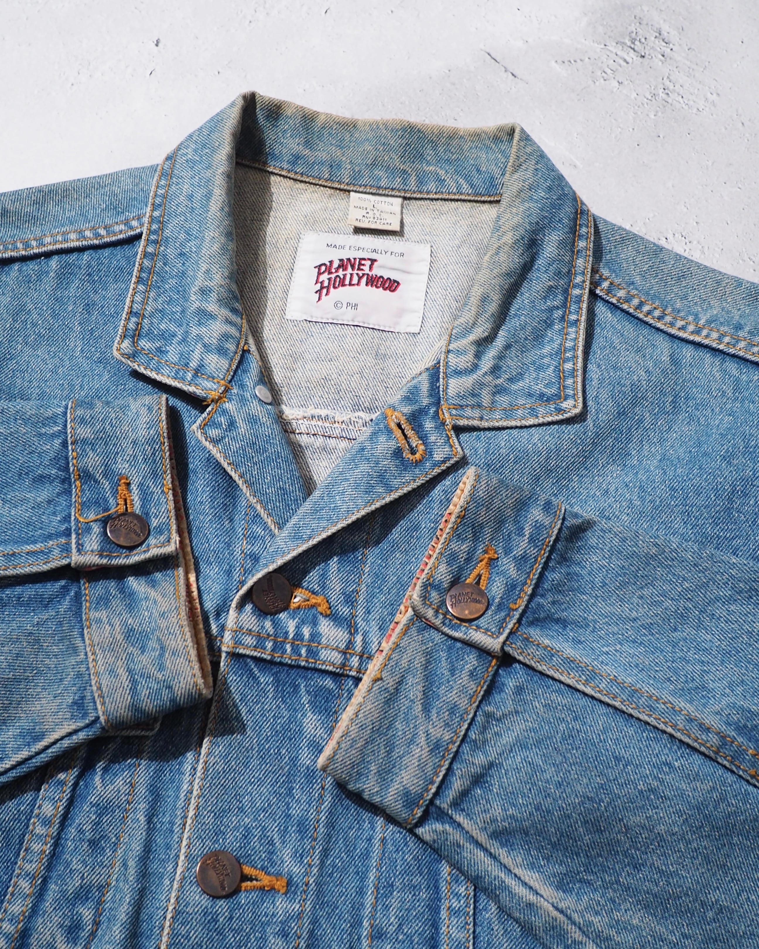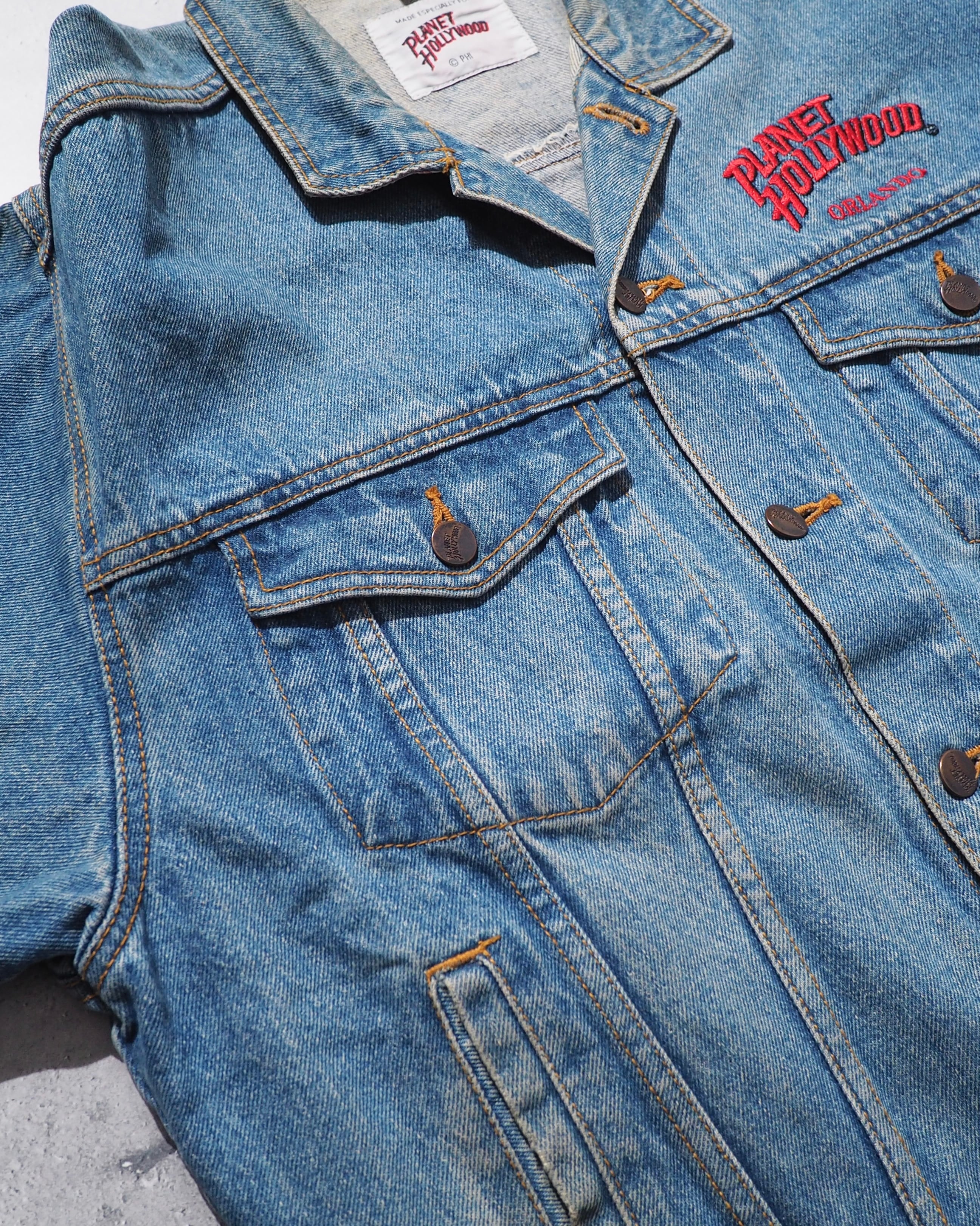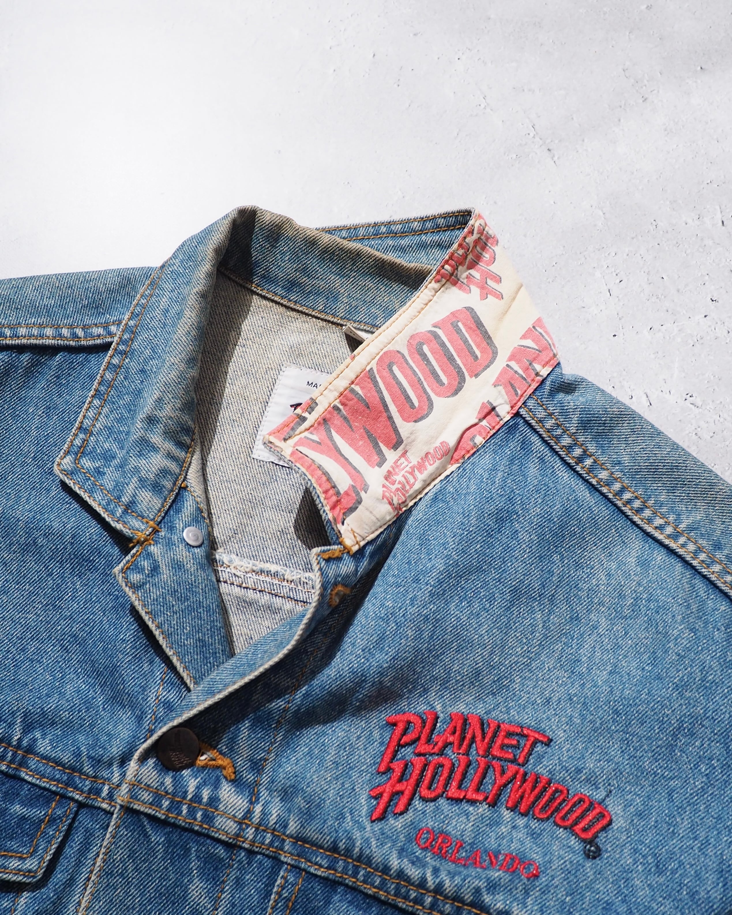 1990s " PLANET HOLLYWOOD " Blue planet Logo Embossed vintage loose Denim jacket