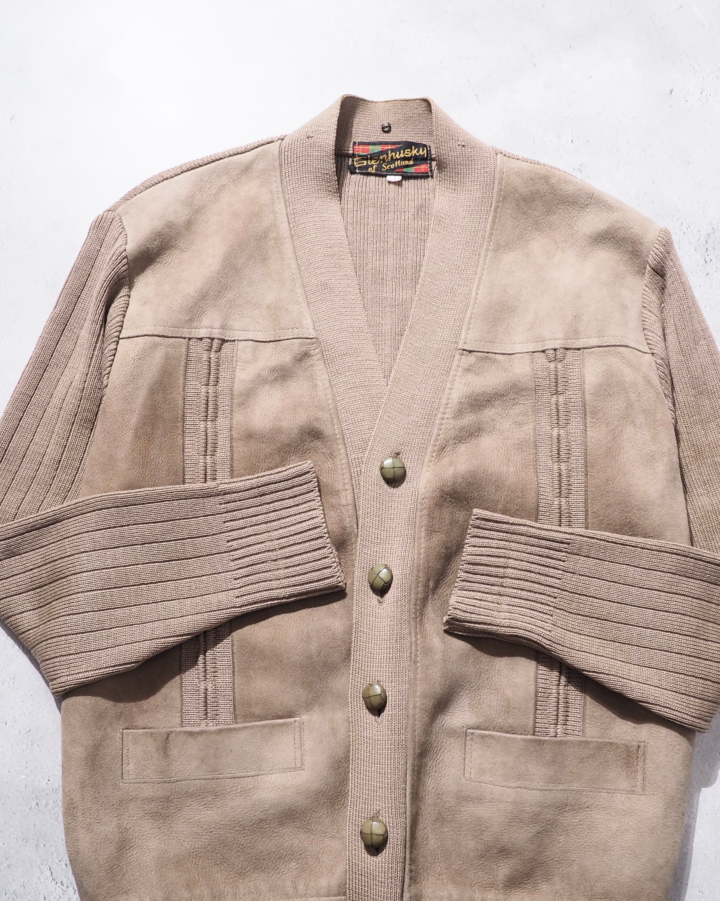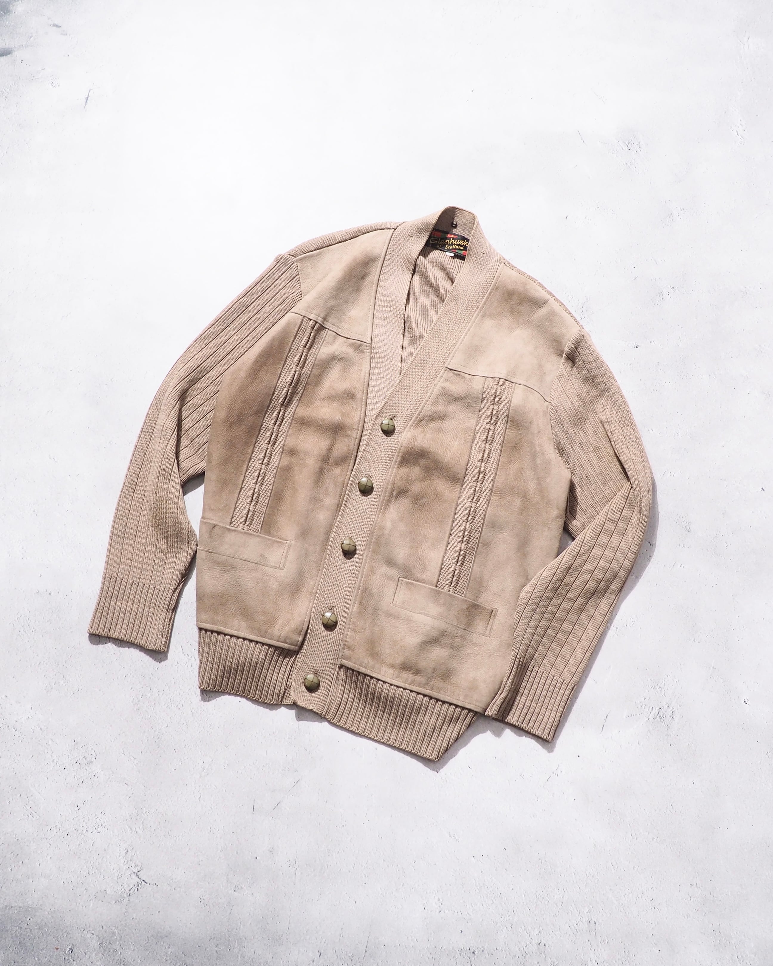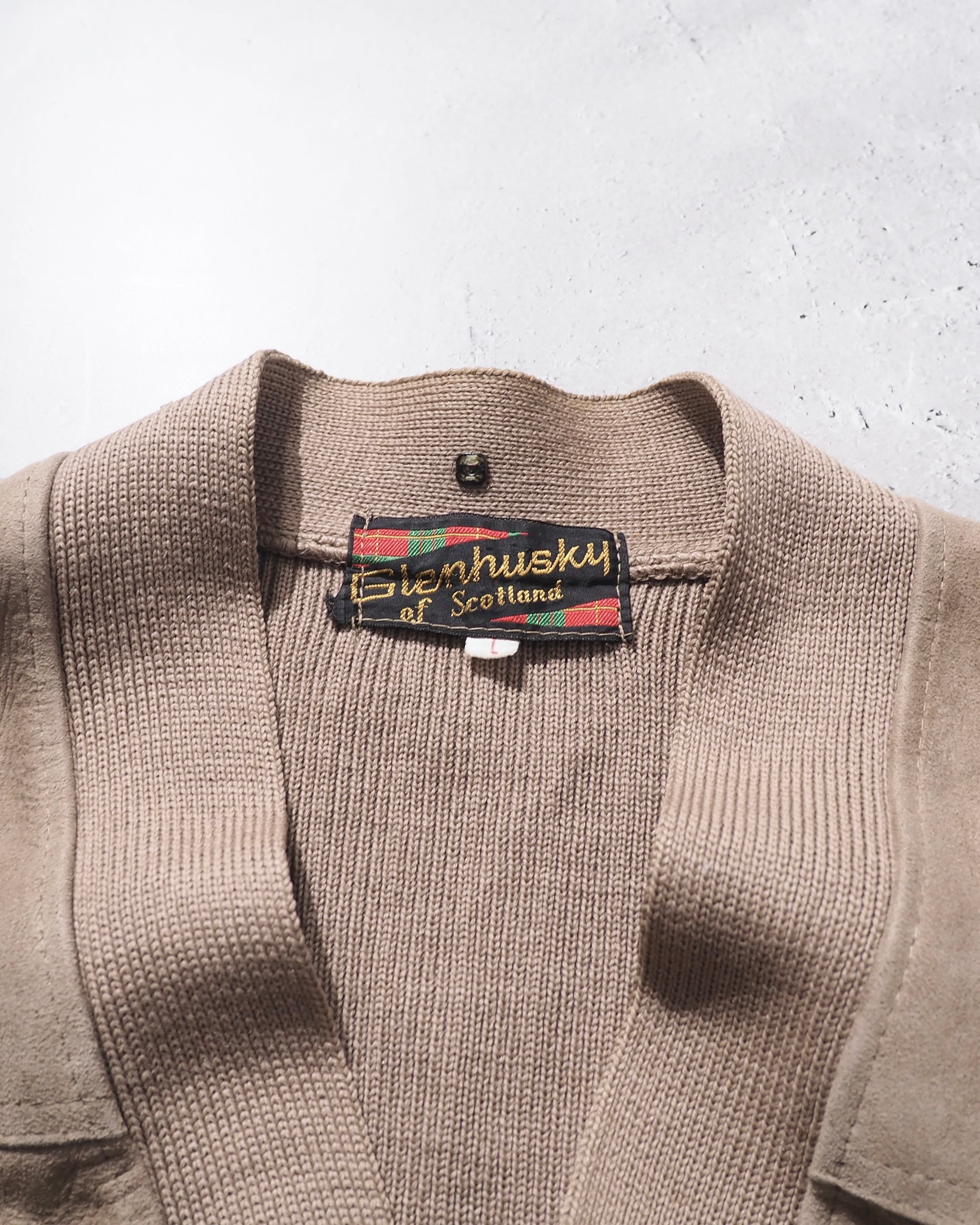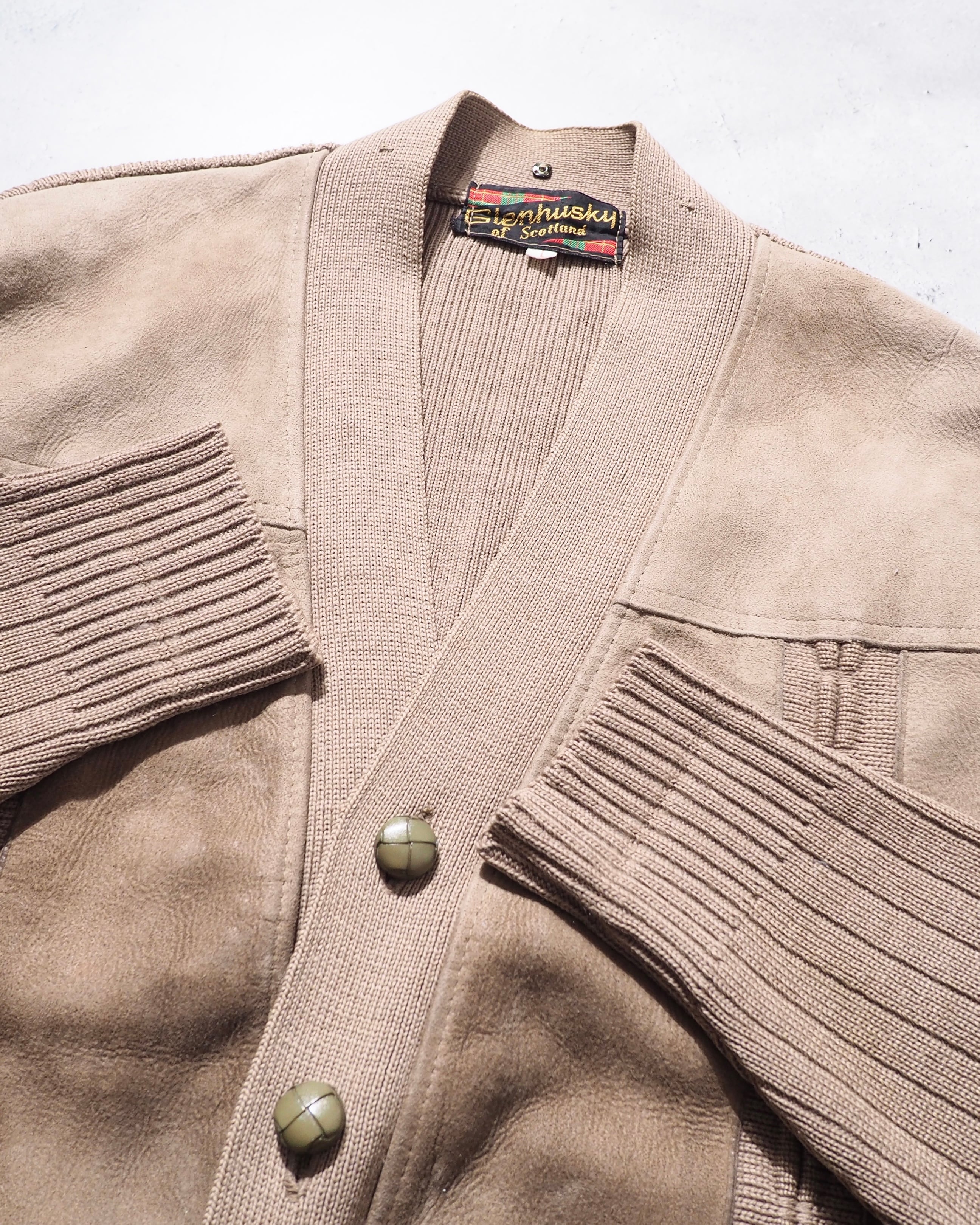 1970s " Made in Scotland " Suede leather Custom vintage knit Cardigan