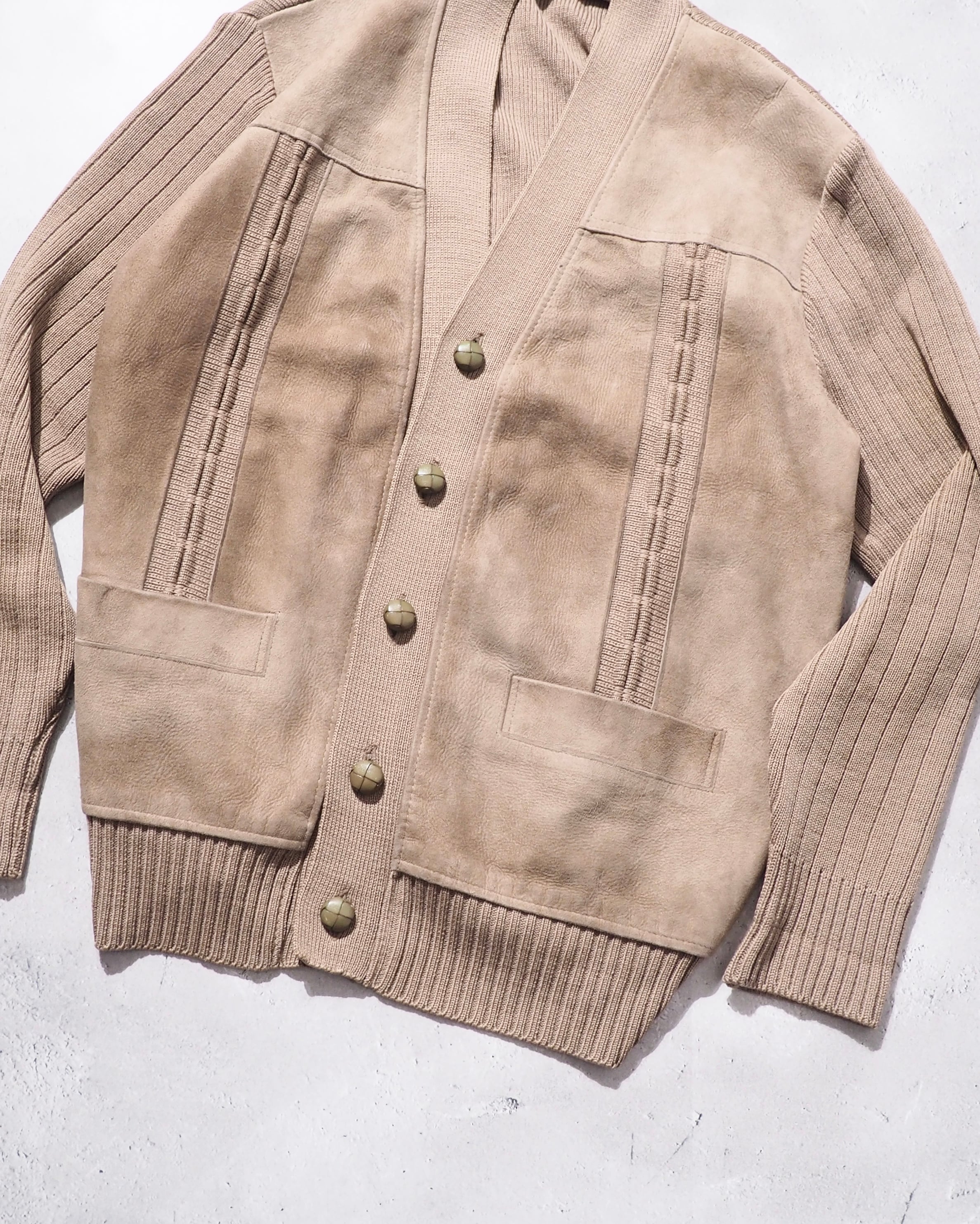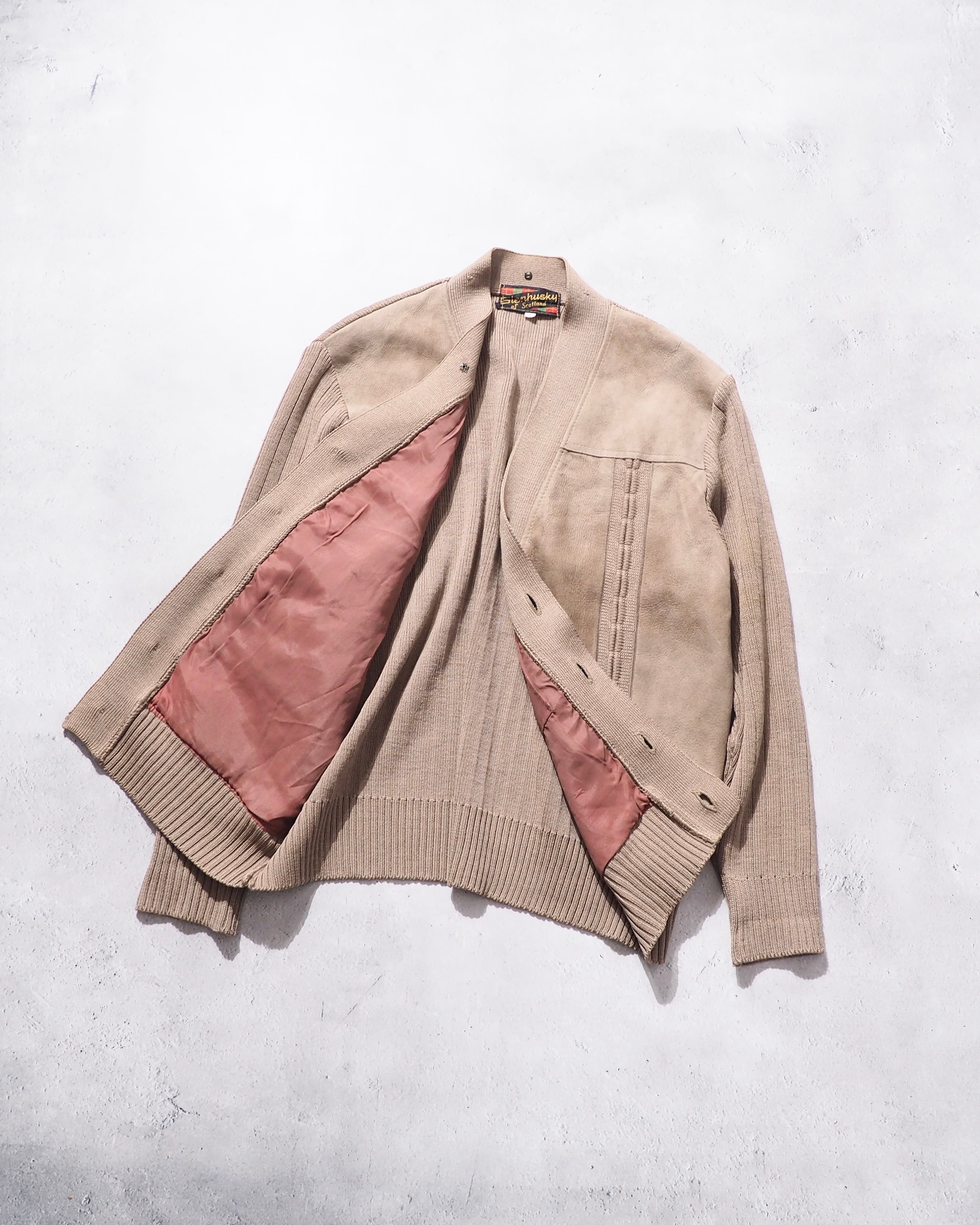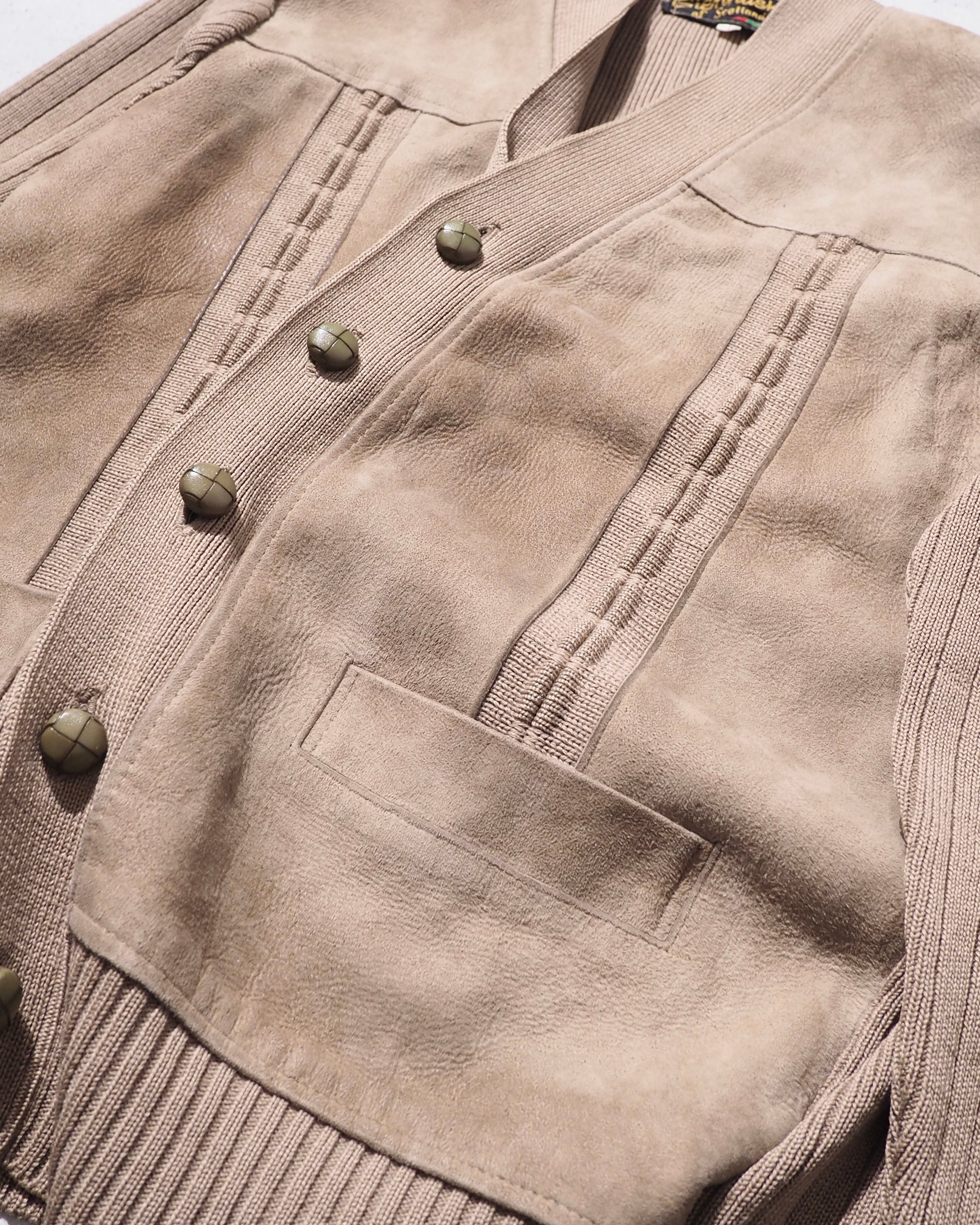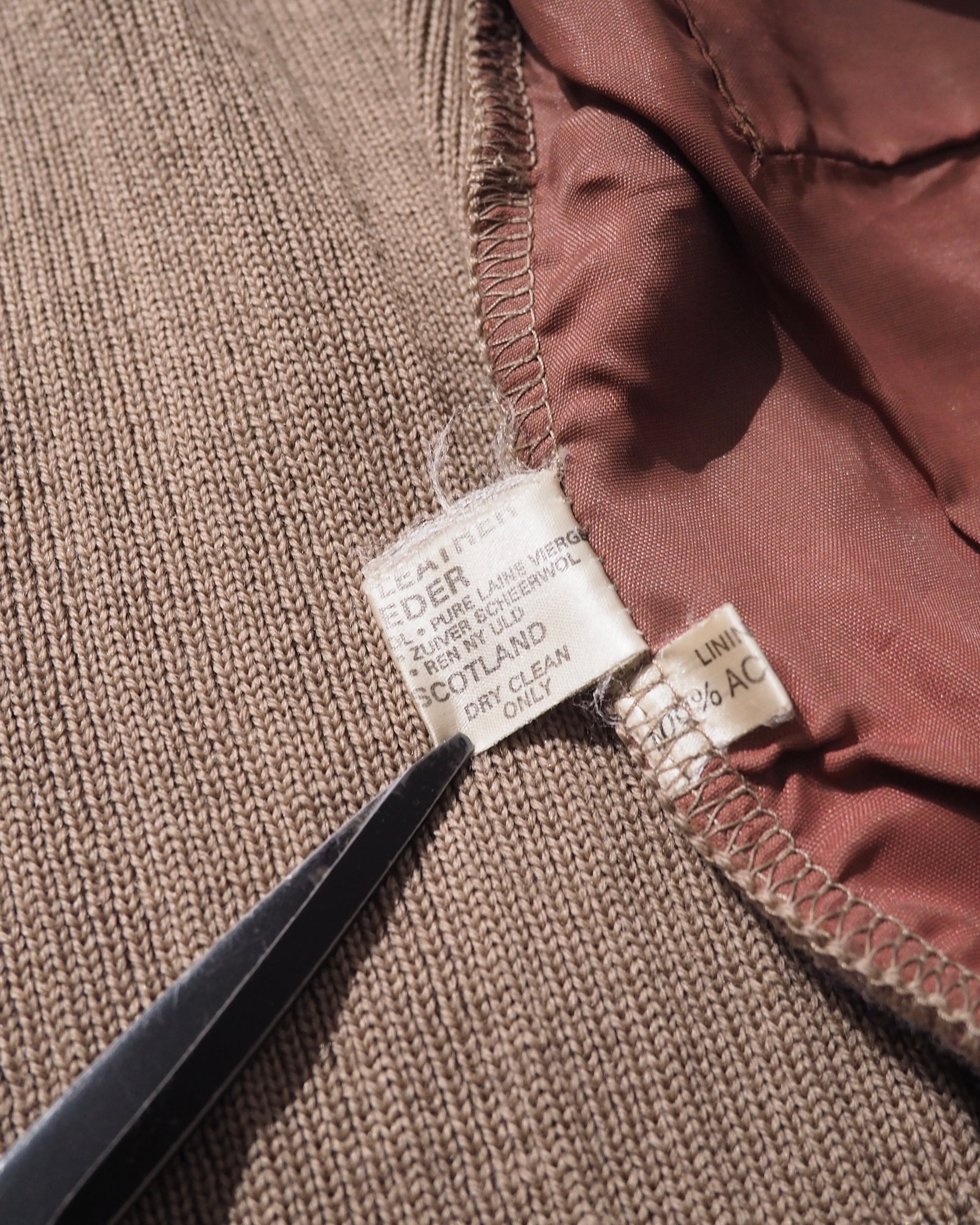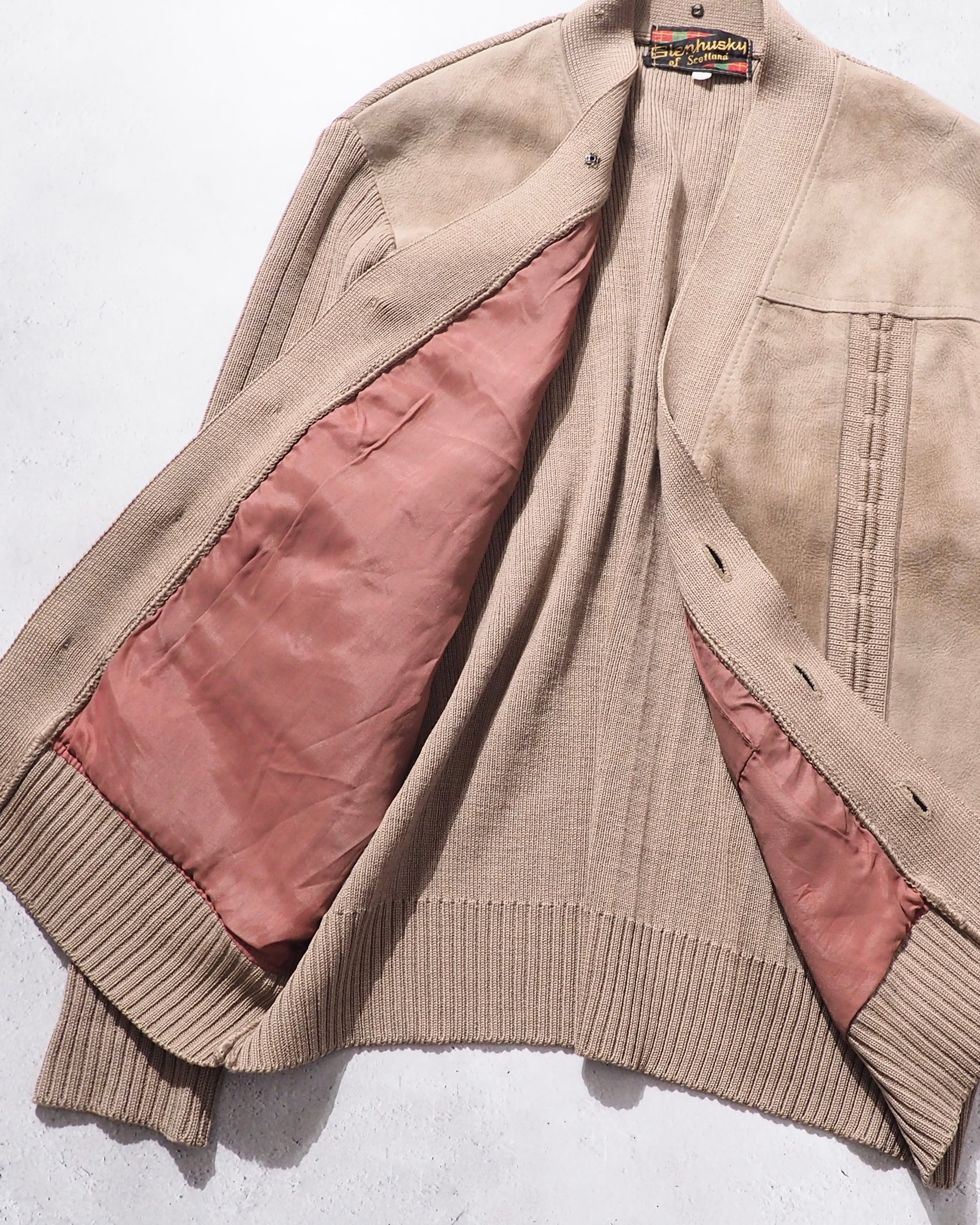 1970s " Made in Scotland " Suede leather Custom vintage knit Cardigan