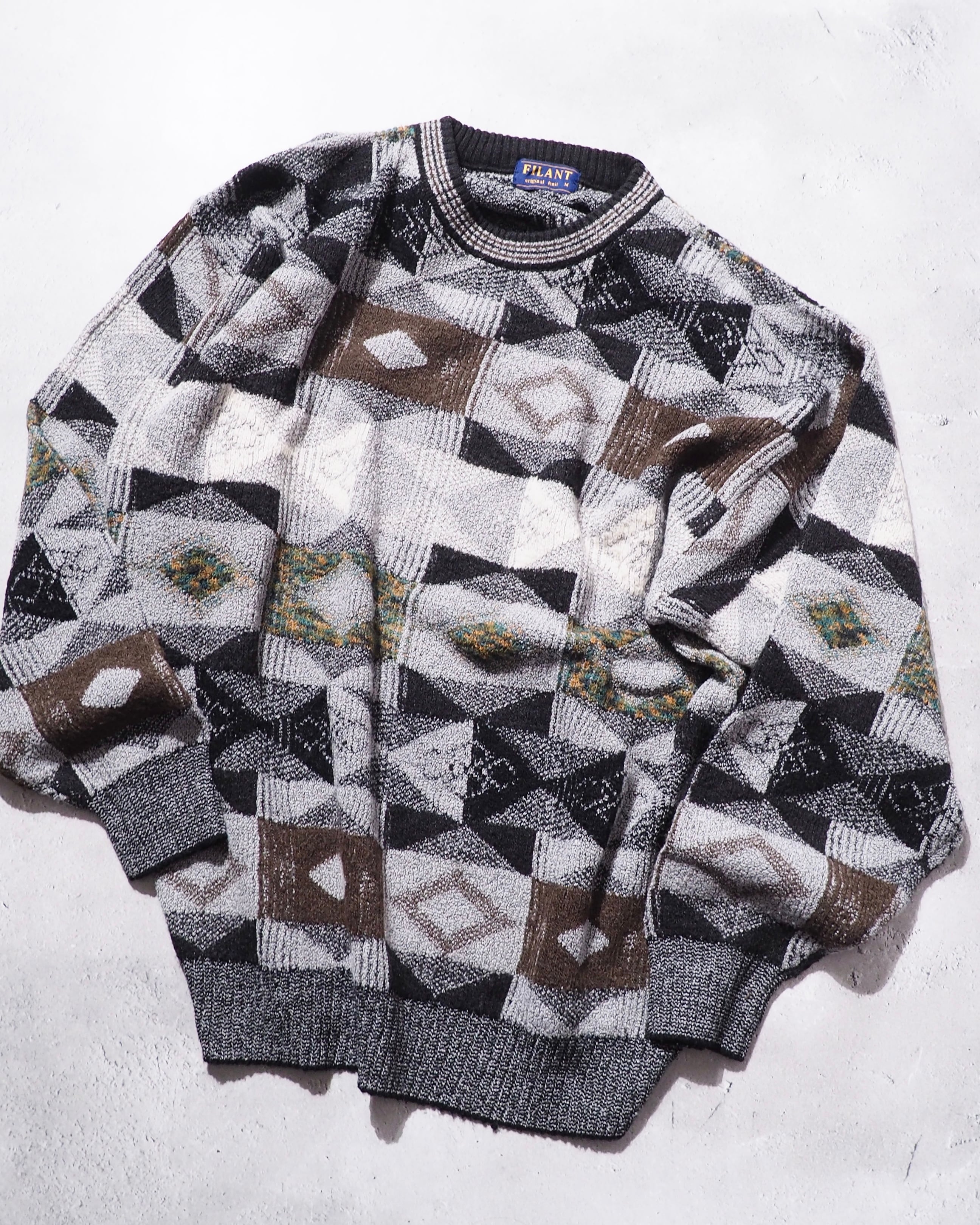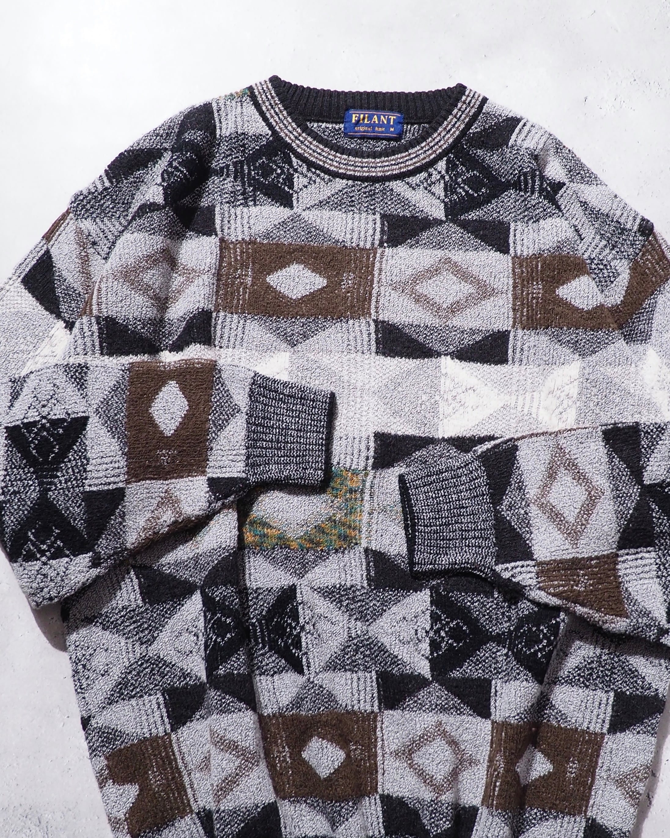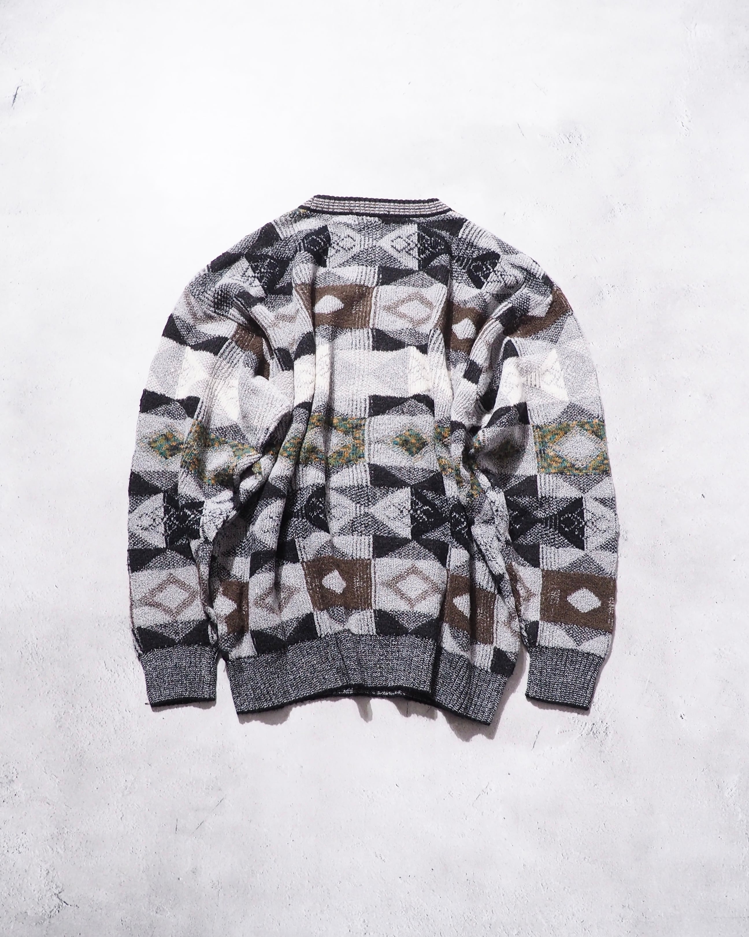 1990s Monotone Geometric pattern vintage loose knit