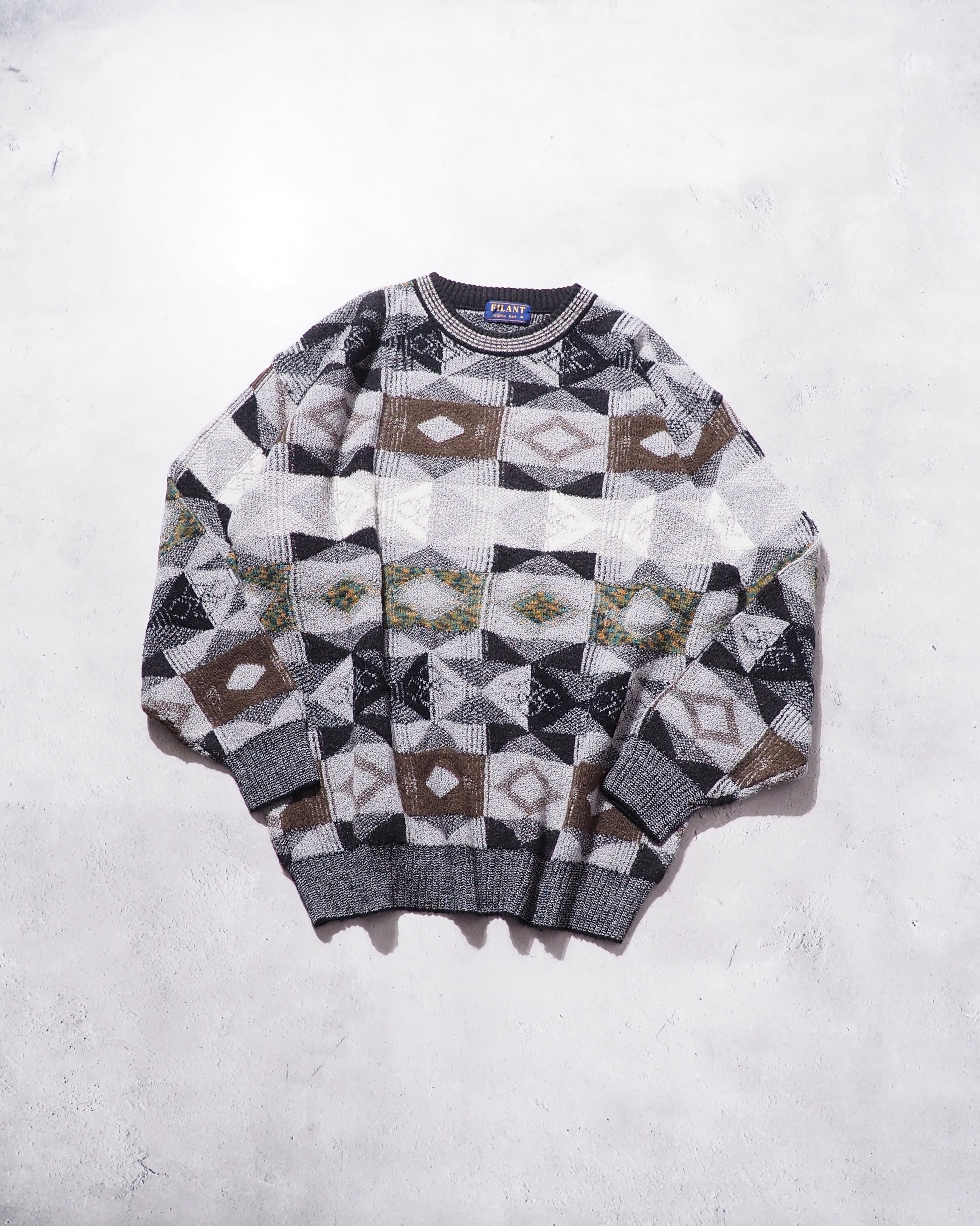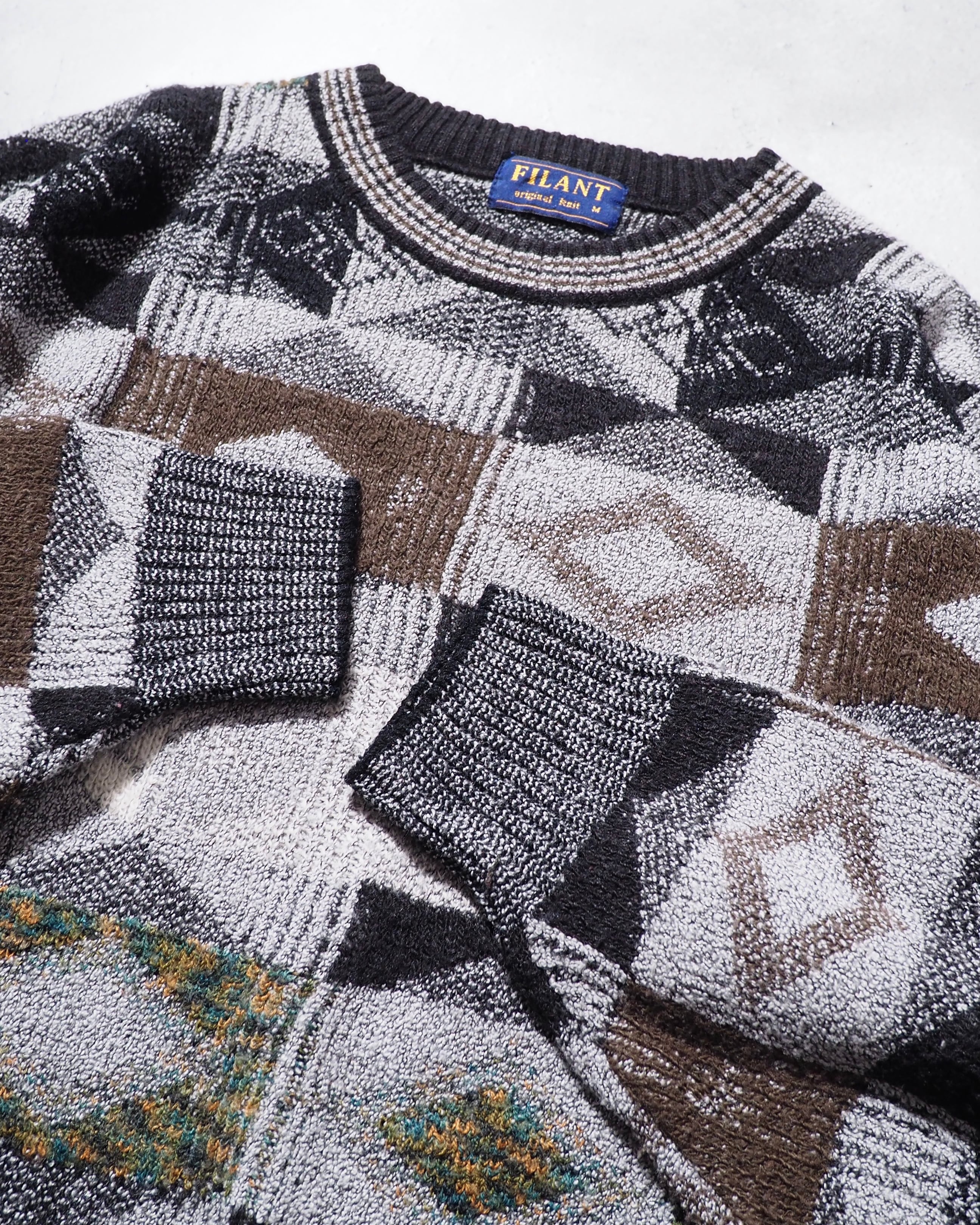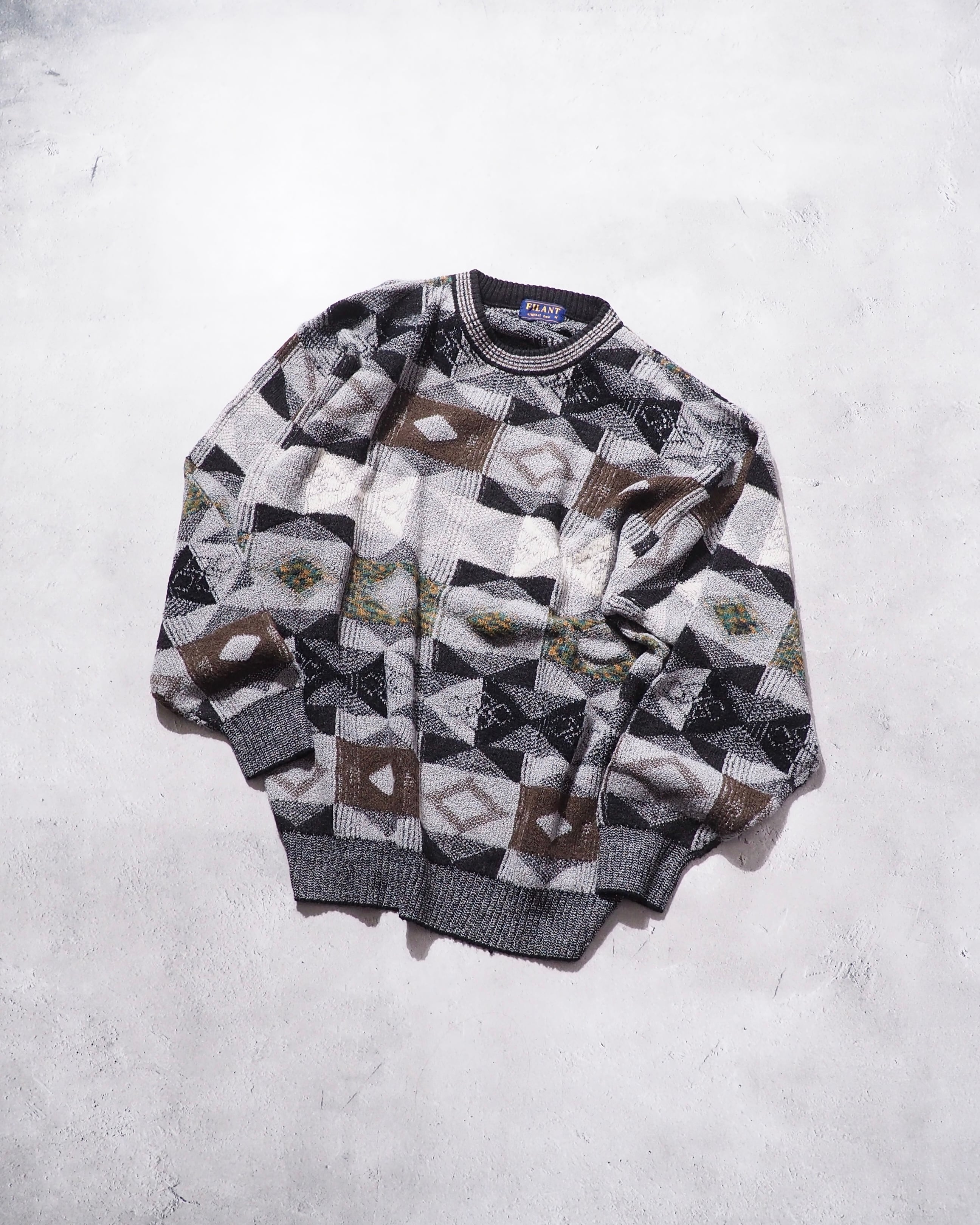 1990s Monotone Geometric pattern vintage loose knit