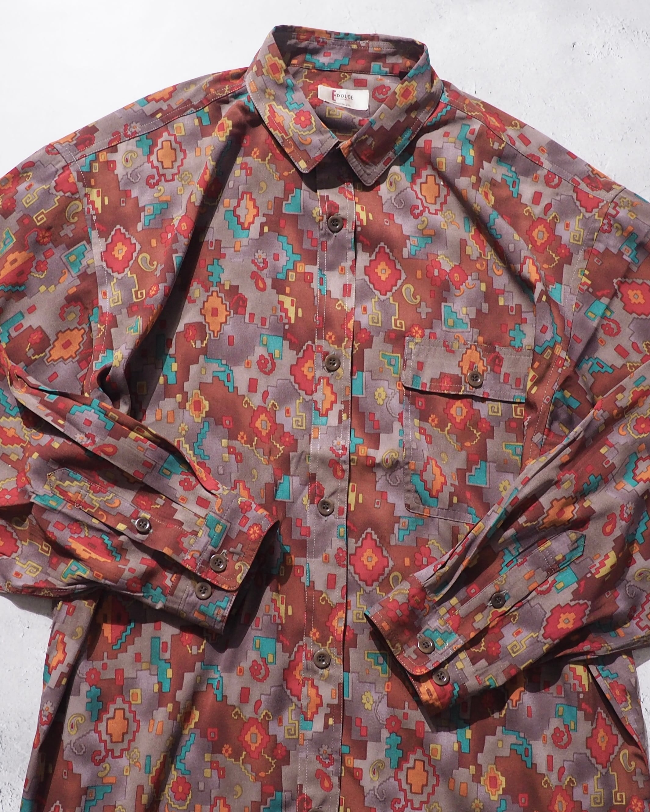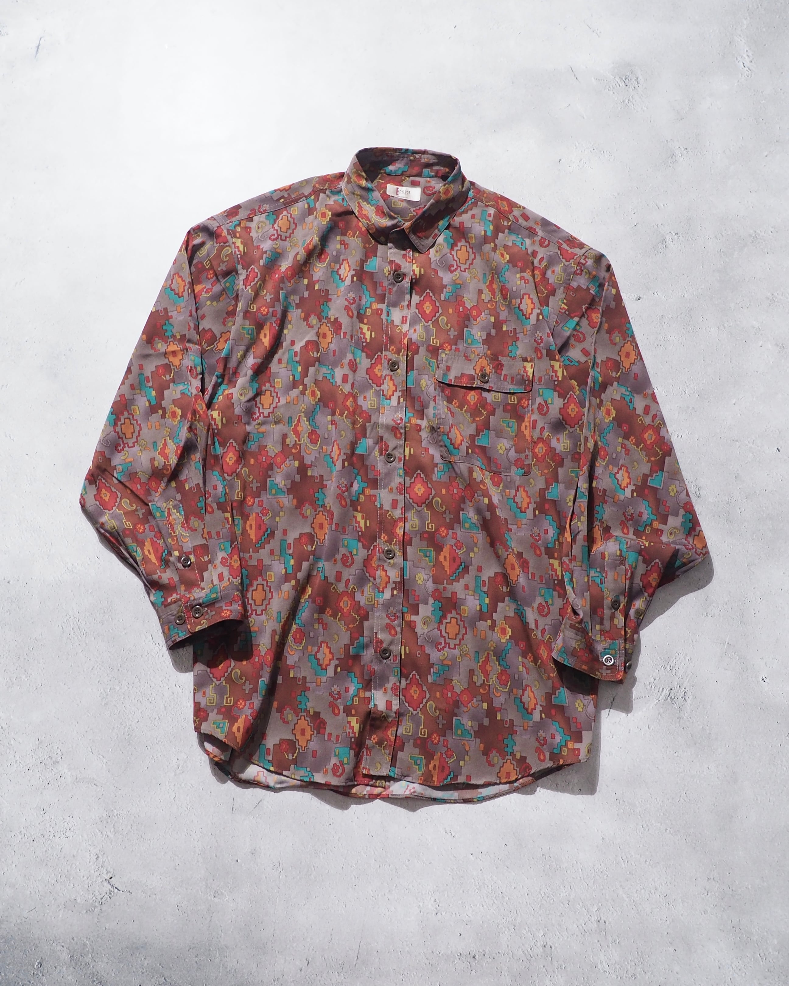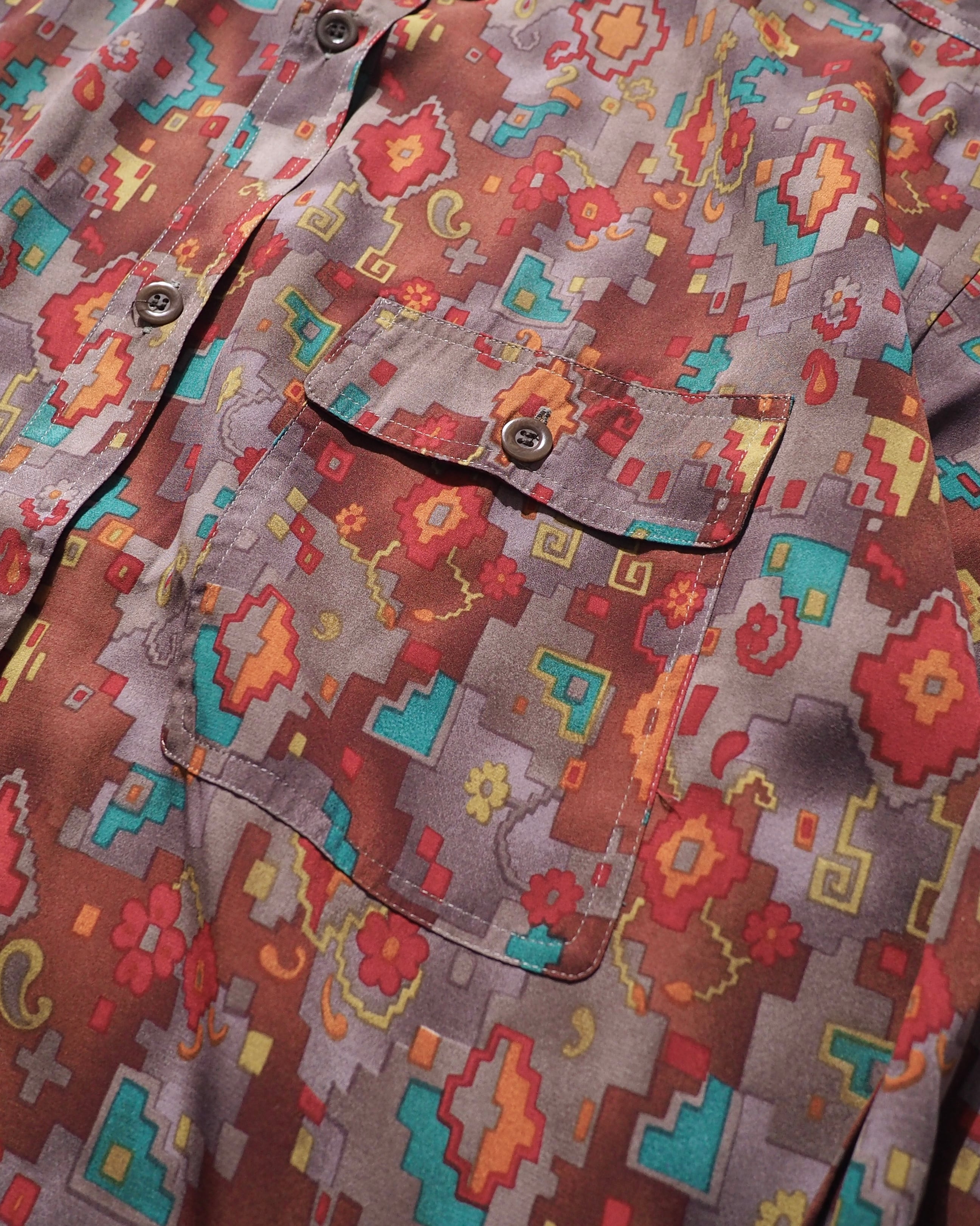 1980s Beautiful Pixel Flower Total pattern vintage loose shirt