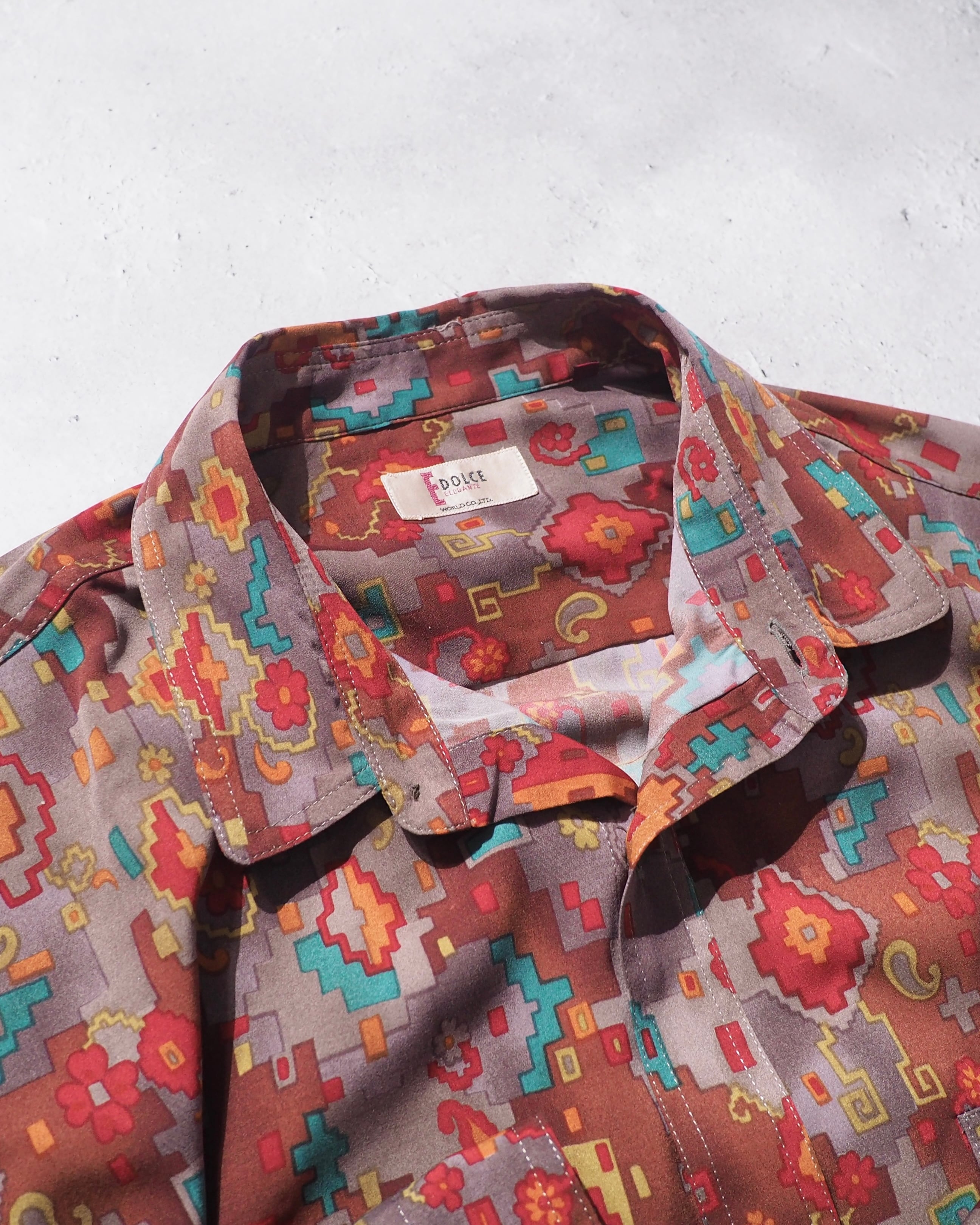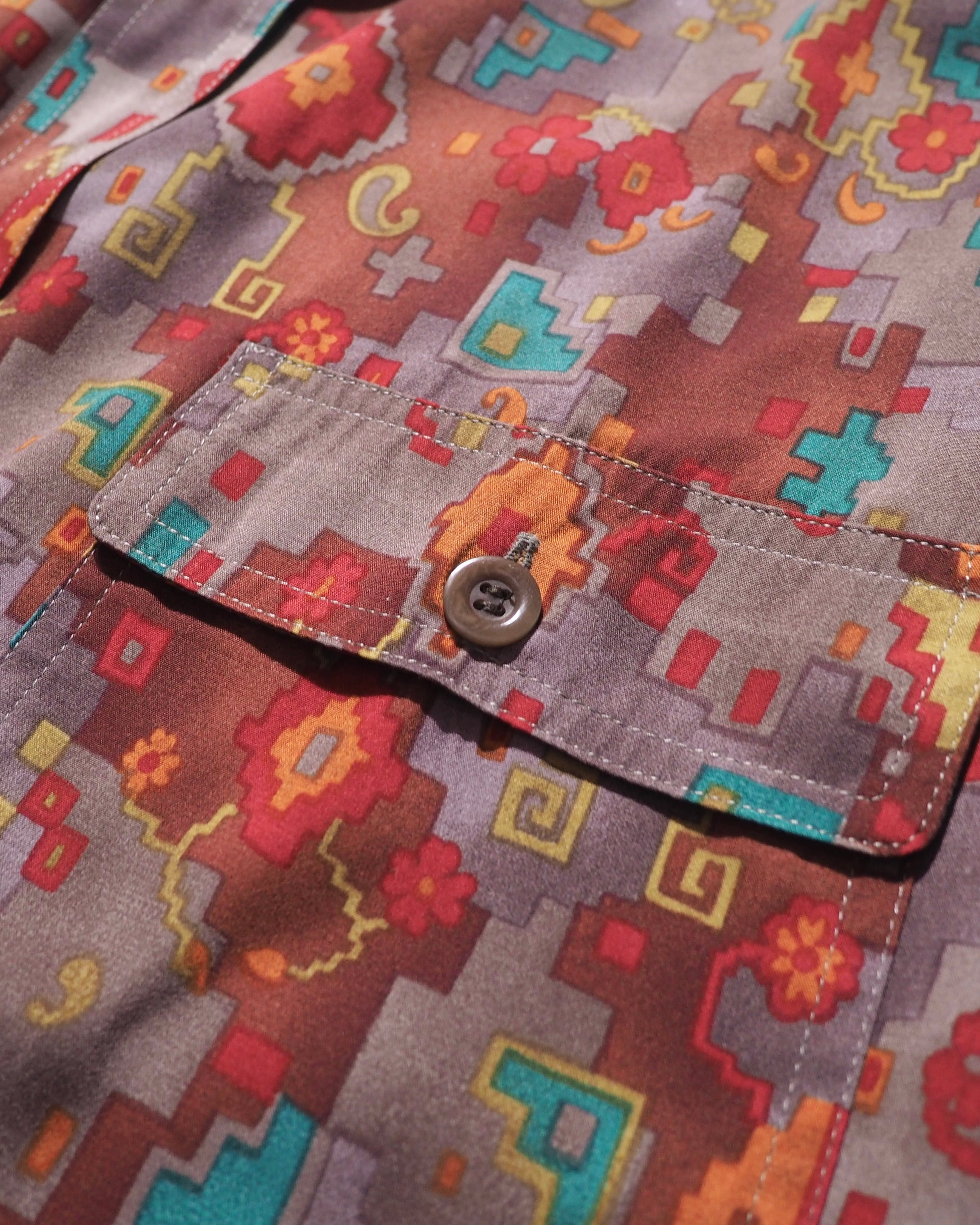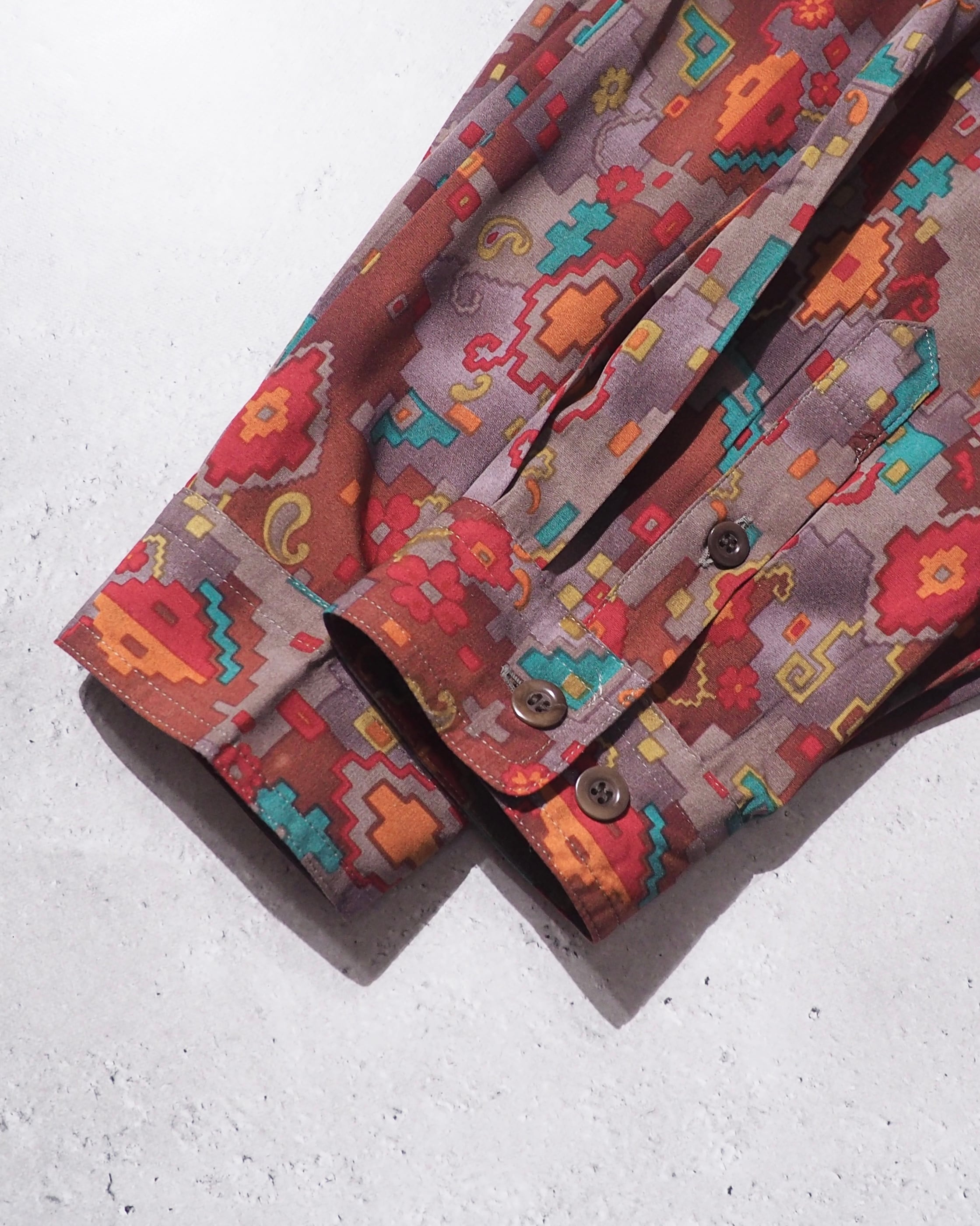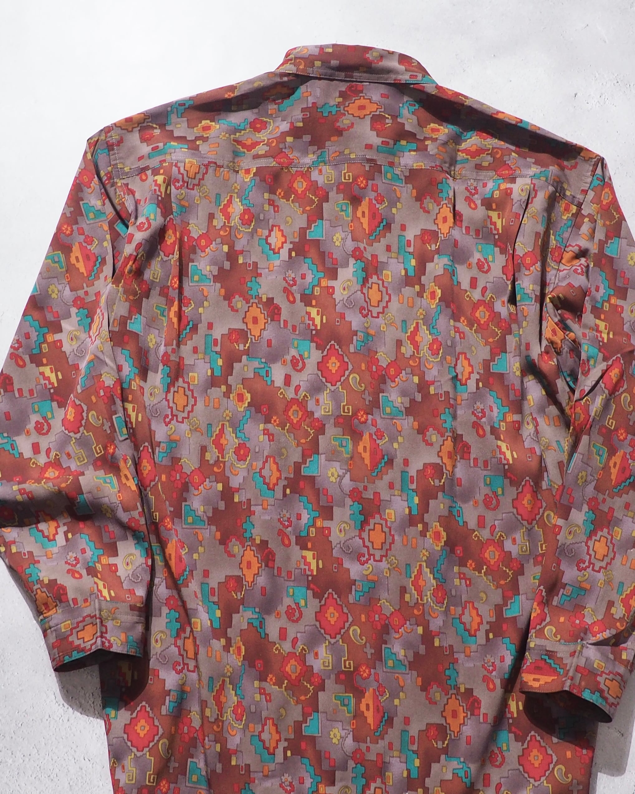 1980s Beautiful Pixel Flower Total pattern vintage loose shirt