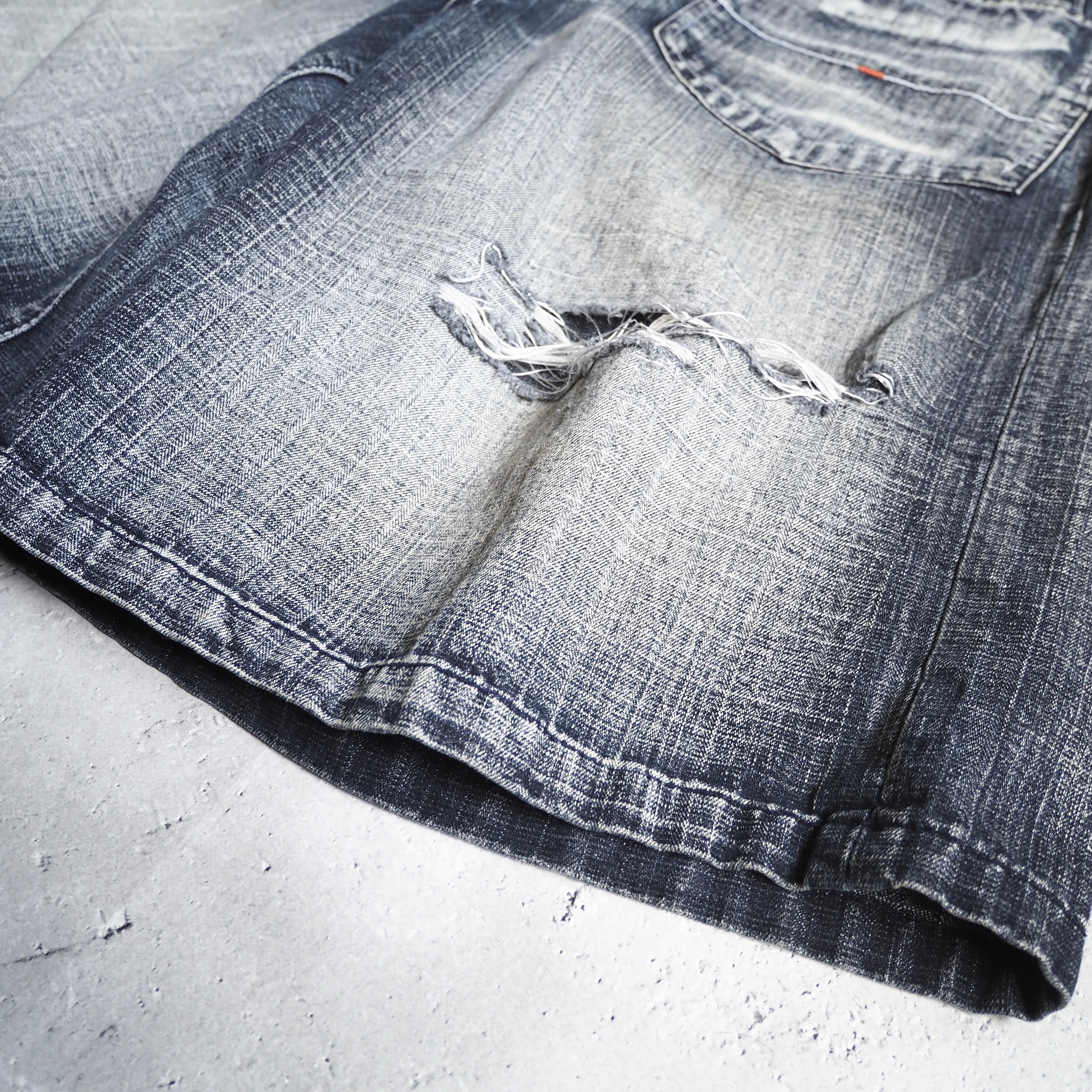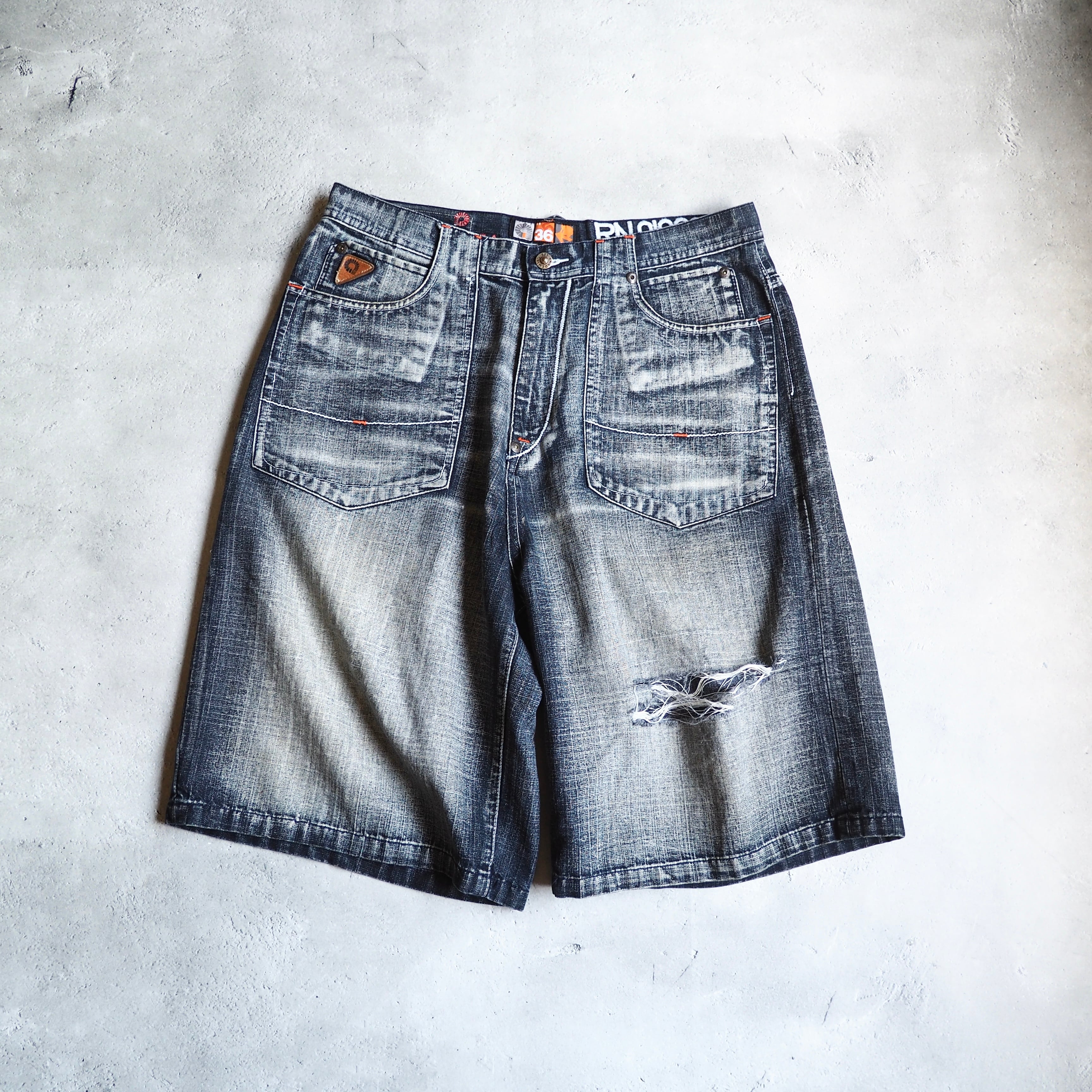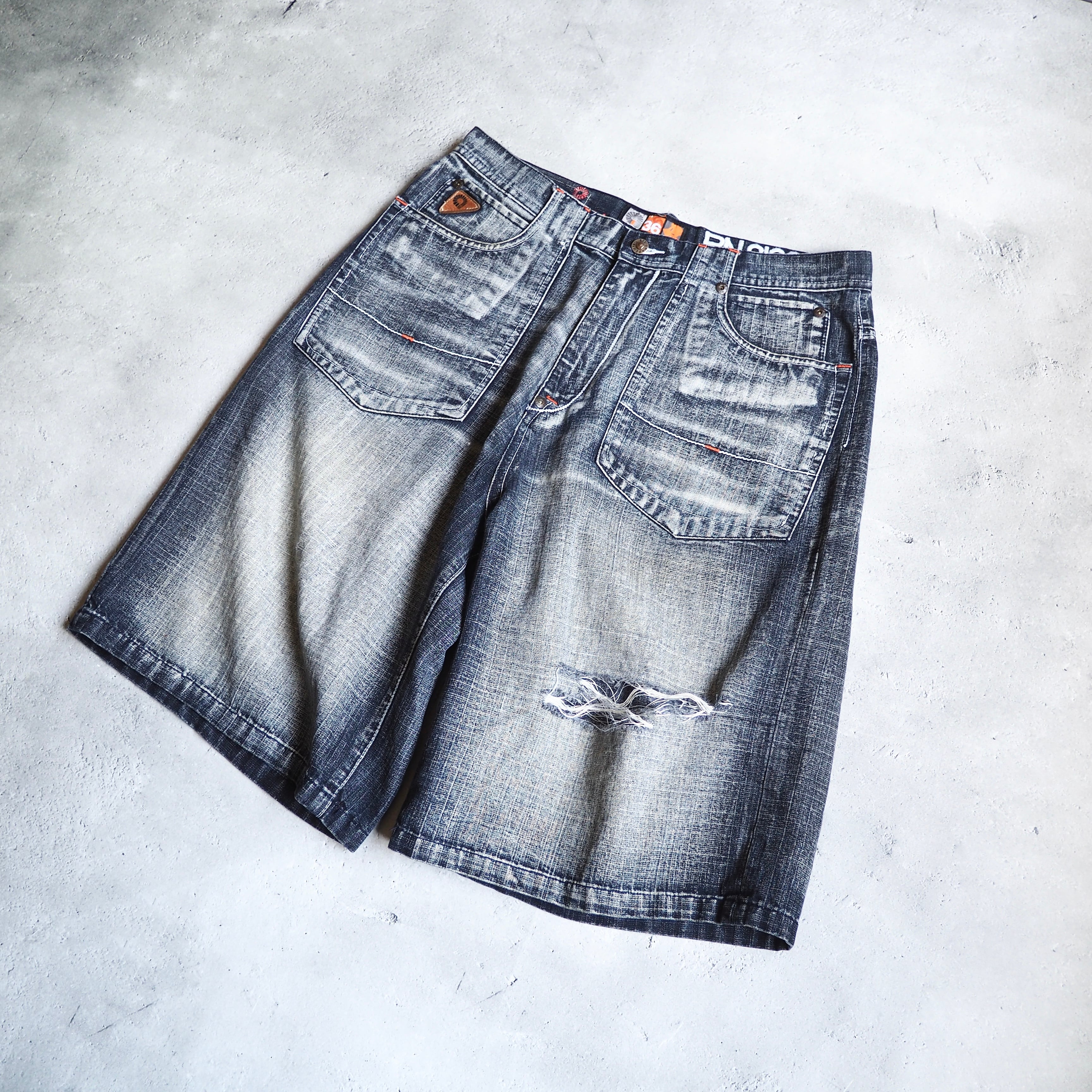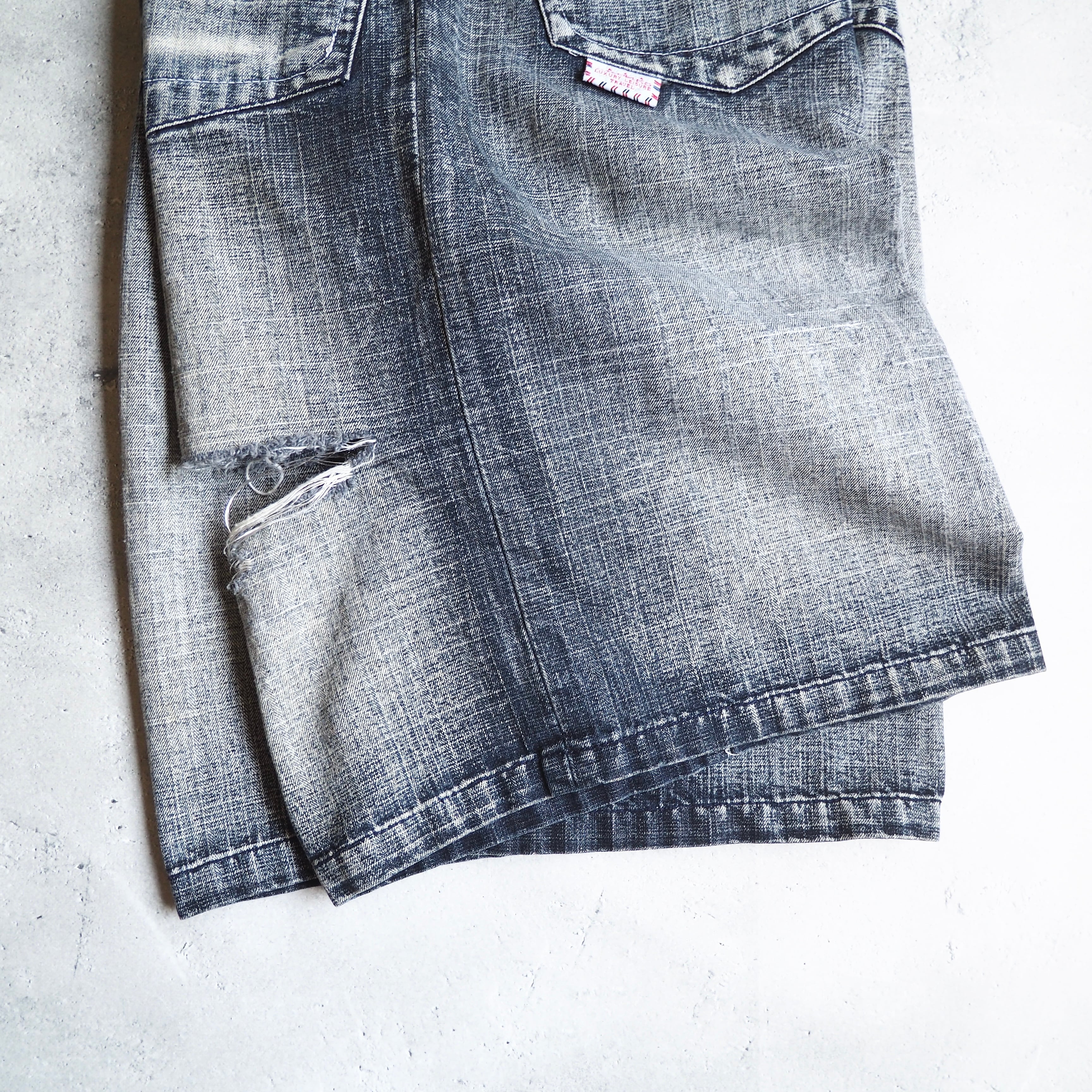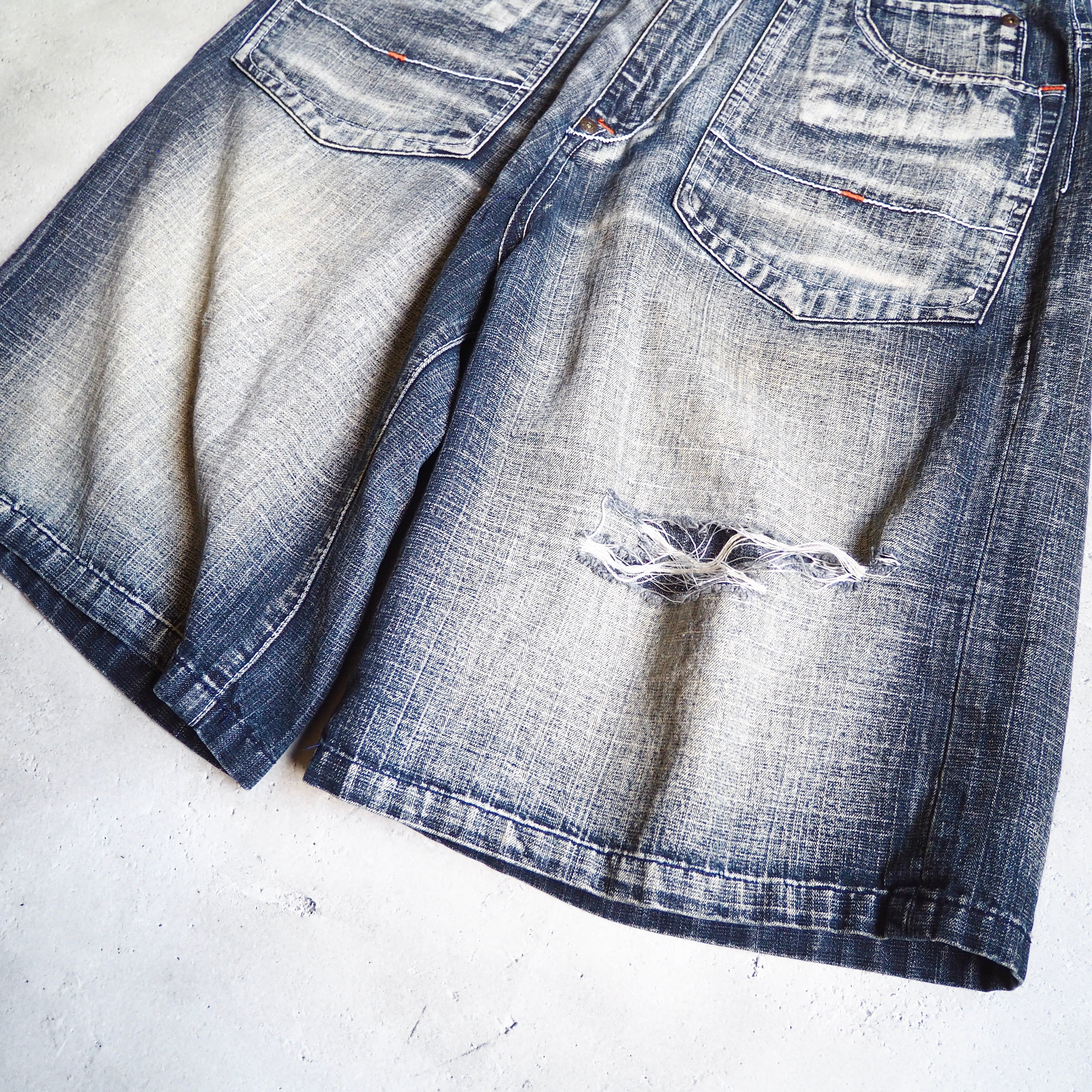" Special - AKADEMIKS " Good Fade × Damage Vintage Baggy Denim shorts