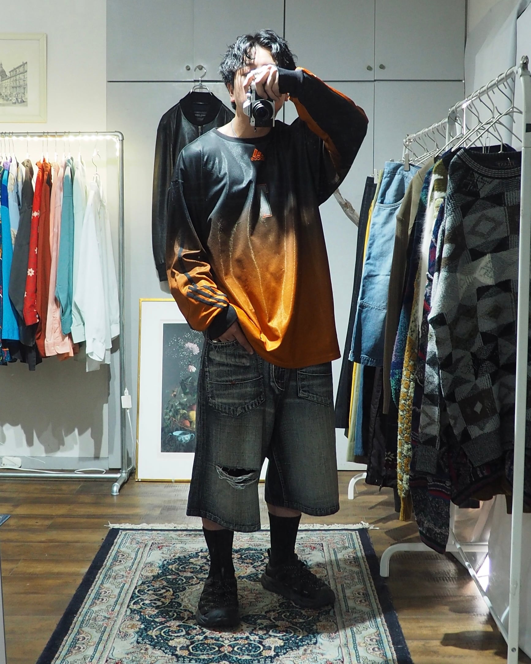 大ぶりのポッケやロゴ入りシルバーボタン、レザーパッチと随所にストリートなカルチャーを落とし込んだ1着になります。所々差し込まれたオレンジのライン刺繍がまた可愛い。