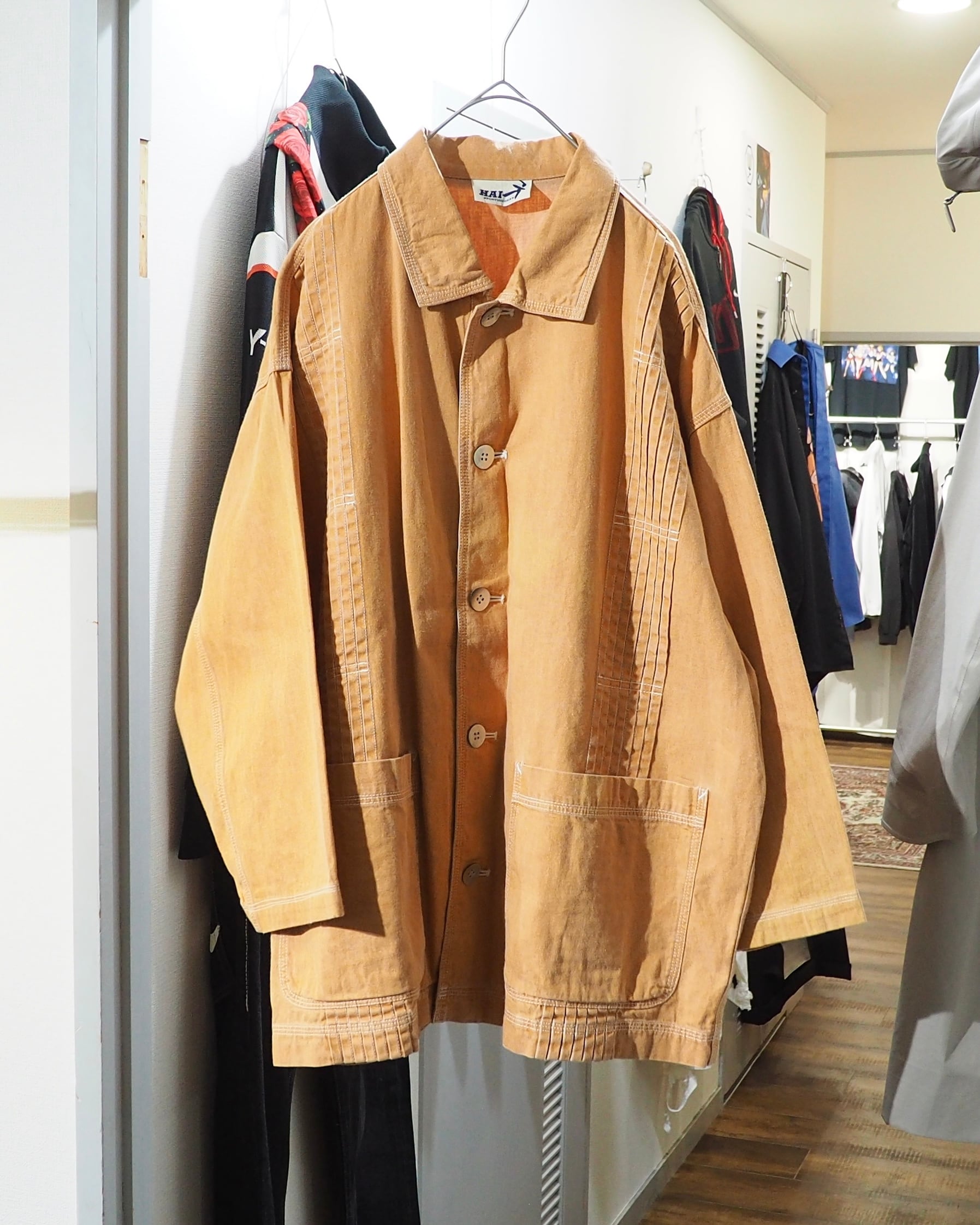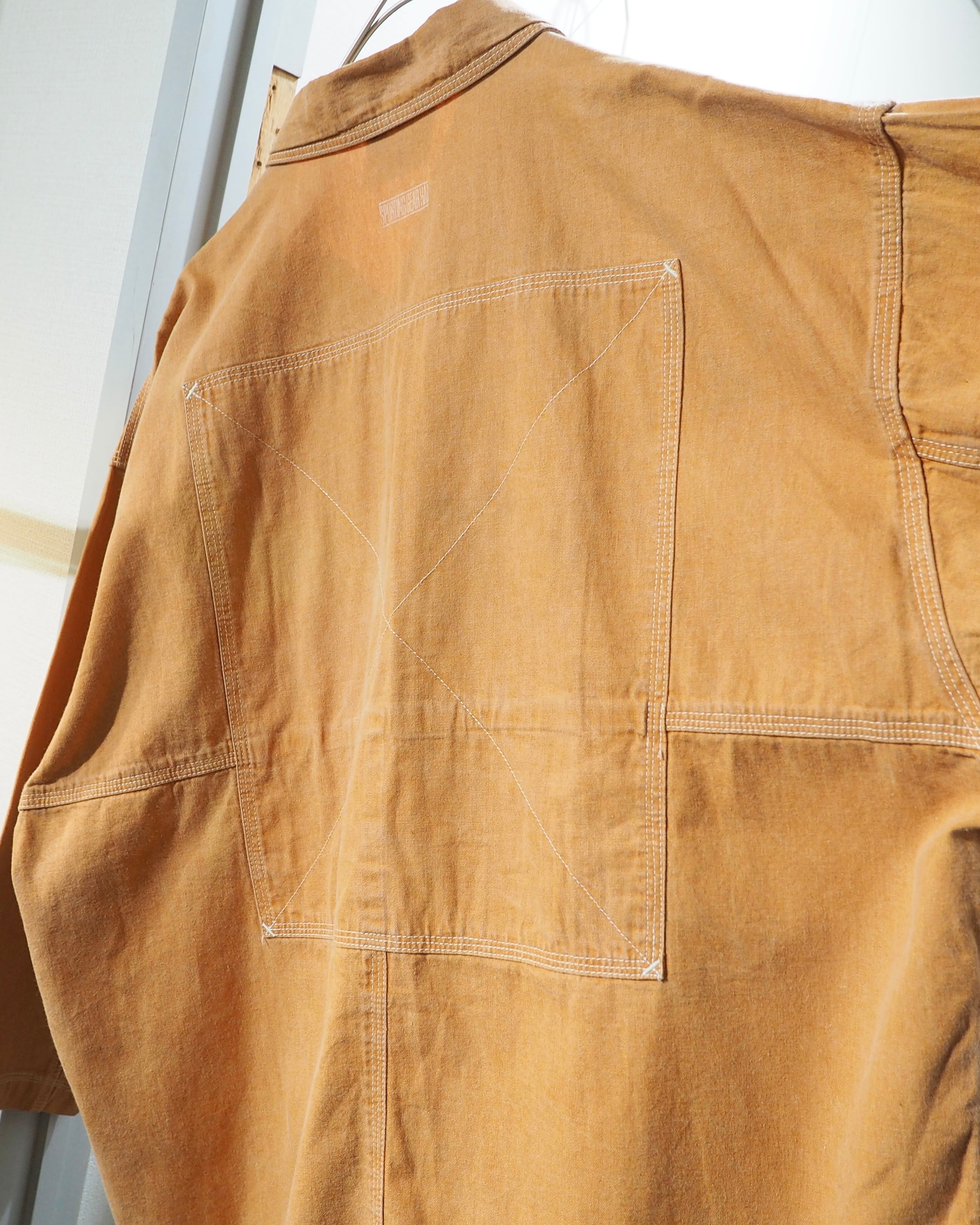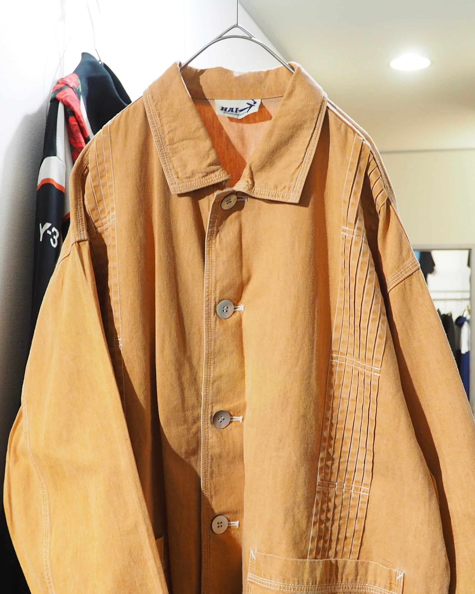 こちらはそんなHAIらしさが随所に感じられる一着。ボディは製品染めによって仕上げられたペールオレンジ。着込むほどに風合いが増していく、アーカイブならではの味わい深い表情が魅力です。