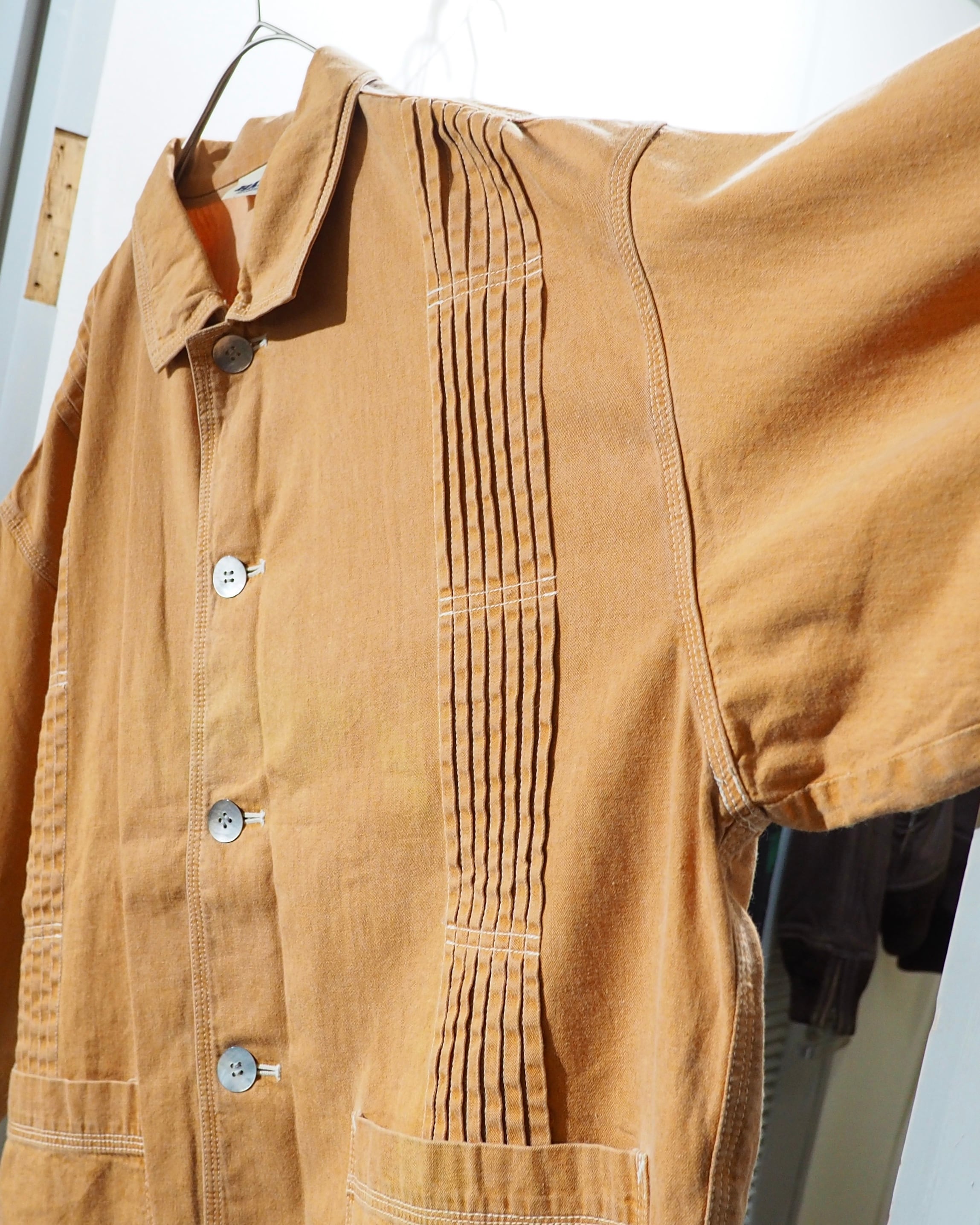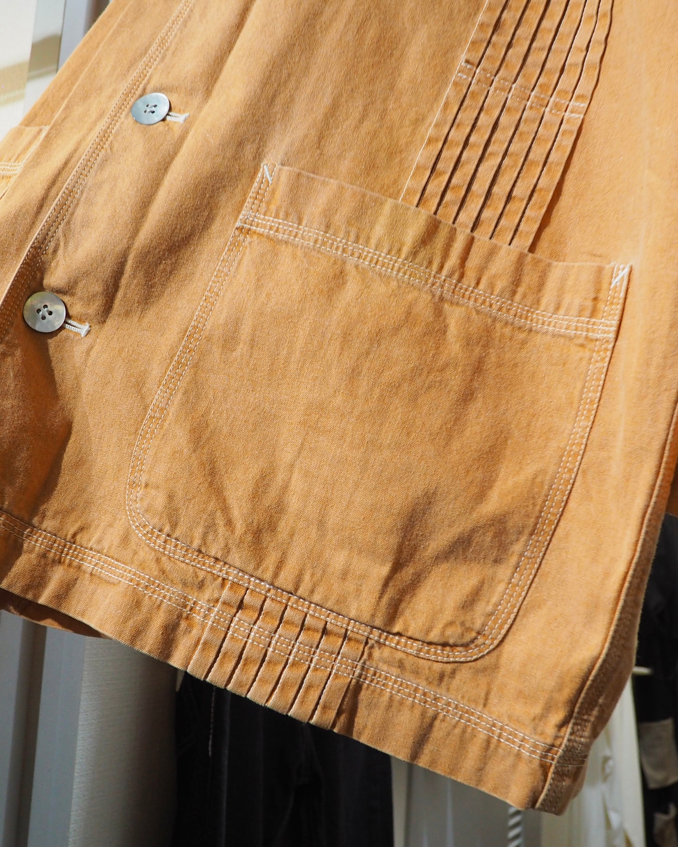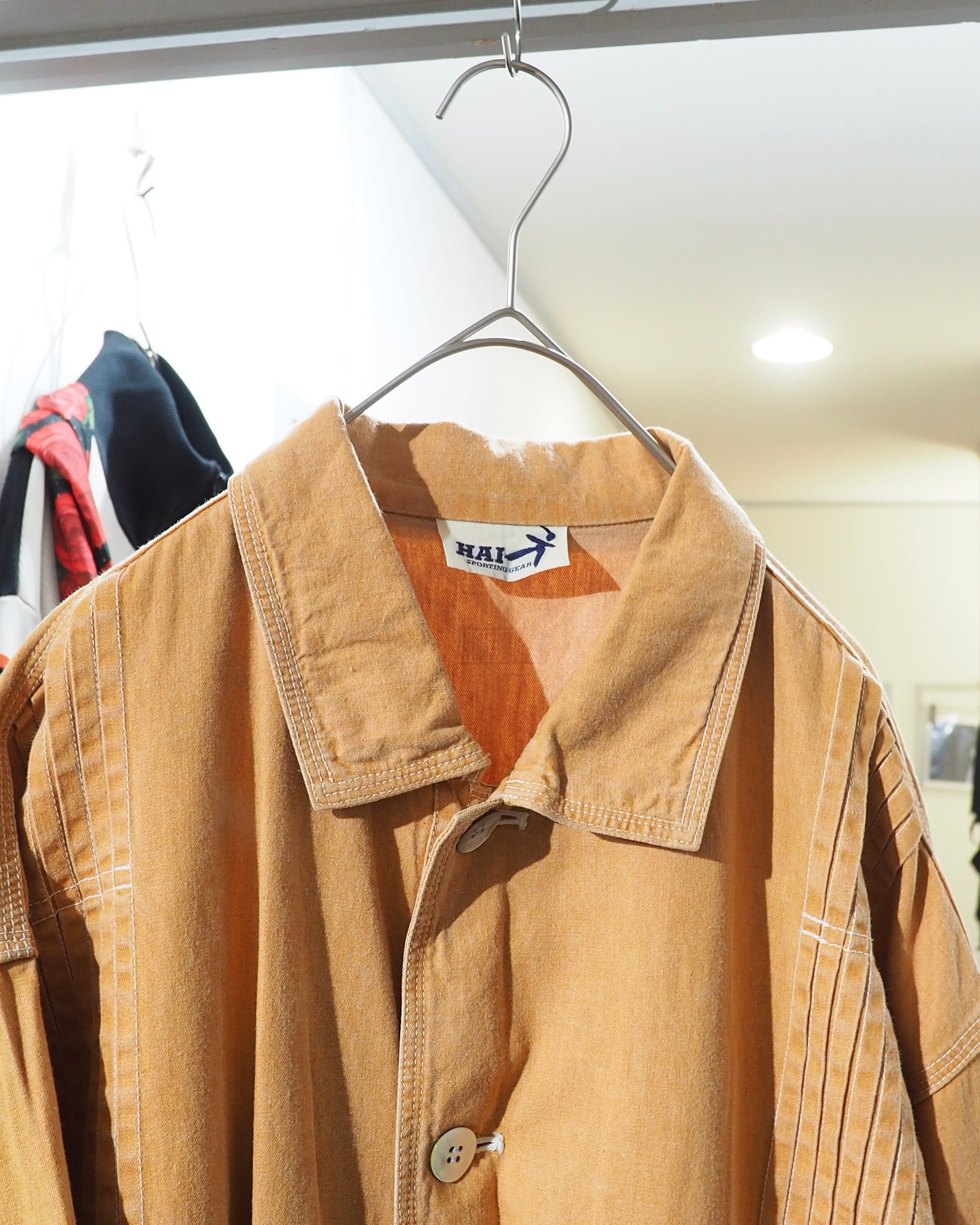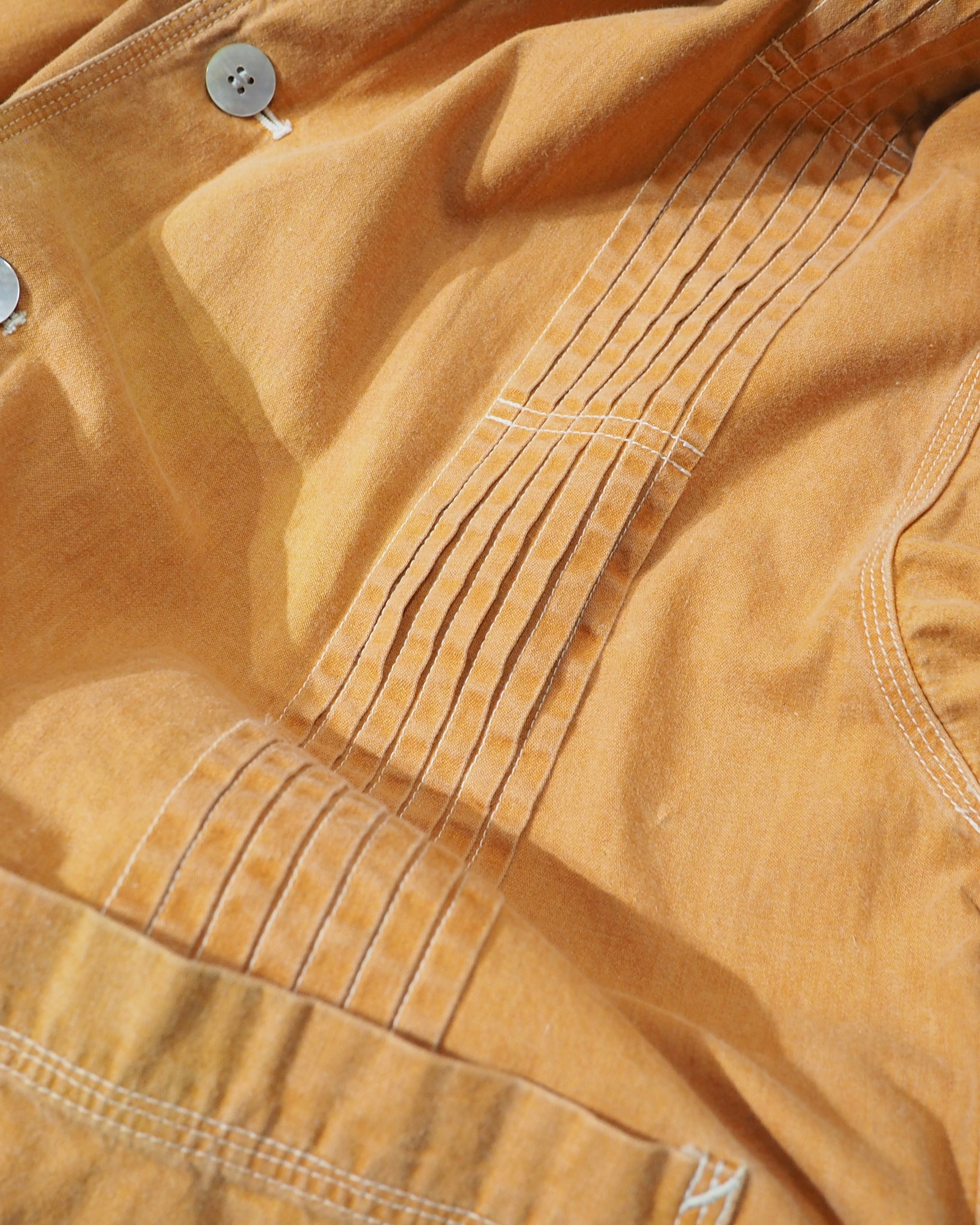 こちらはそんなHAIらしさが随所に感じられる一着。ボディは製品染めによって仕上げられたペールオレンジ。着込むほどに風合いが増していく、アーカイブならではの味わい深い表情が魅力です。