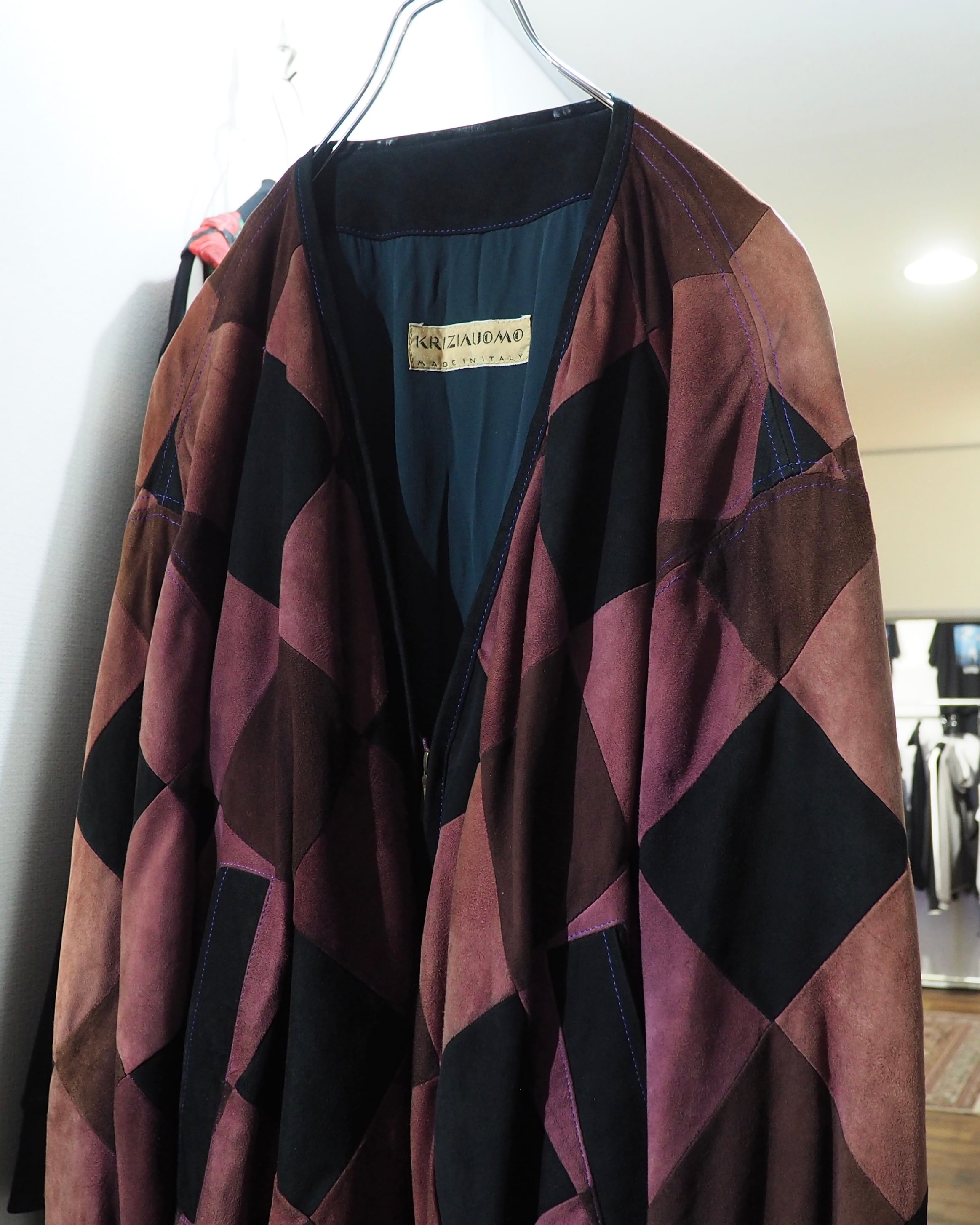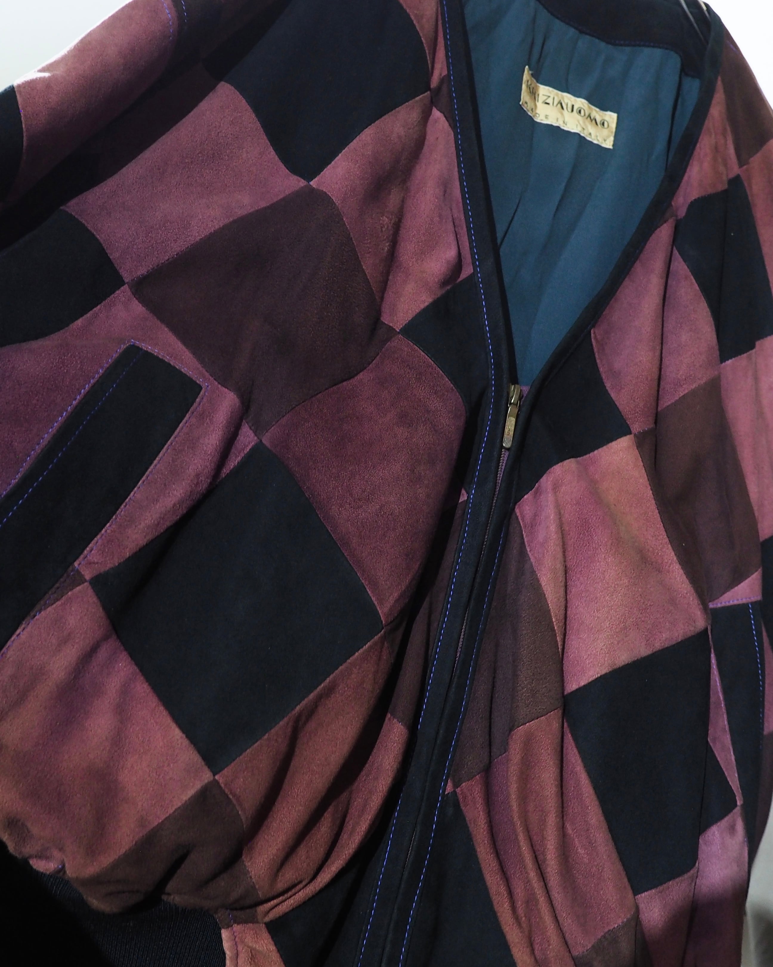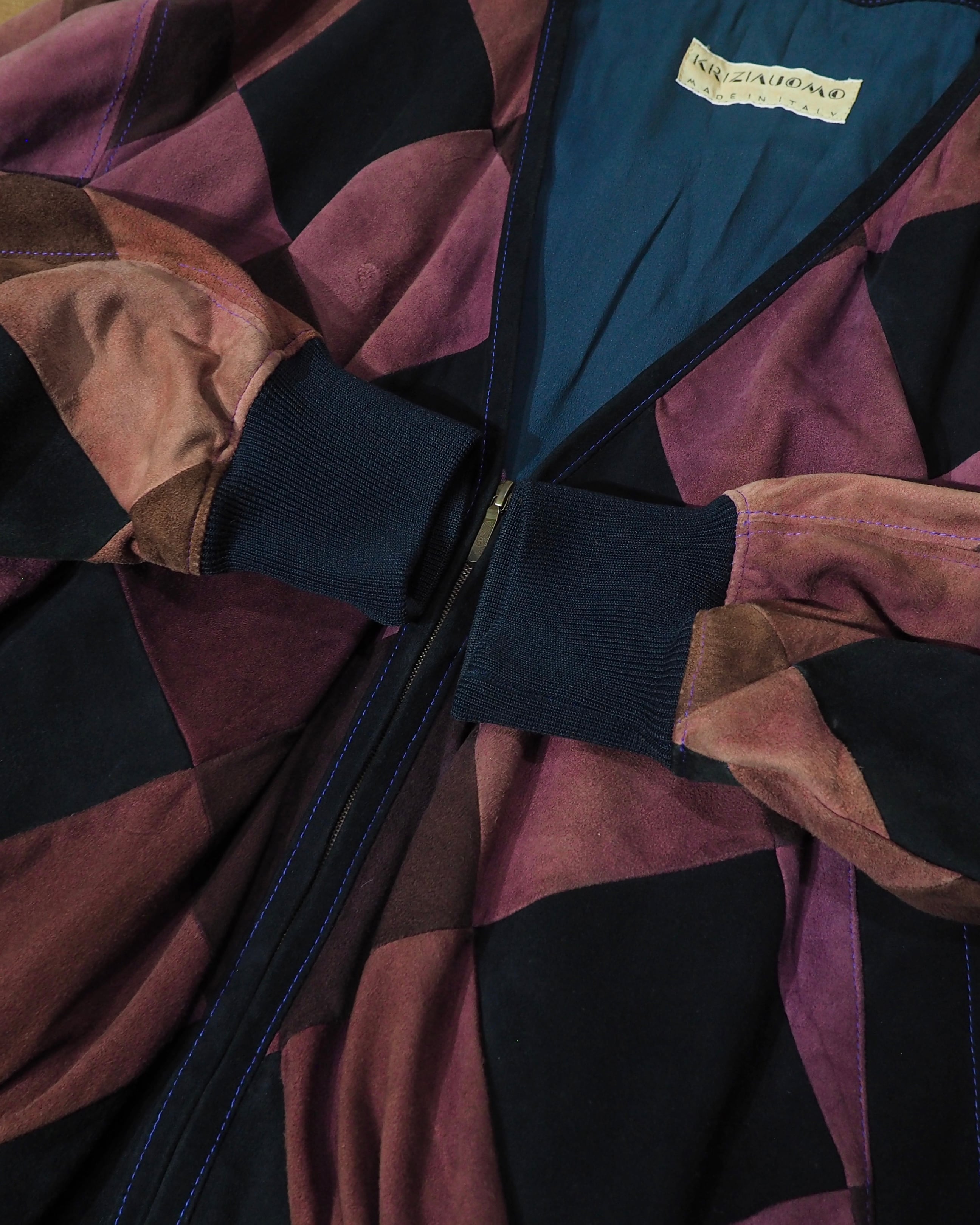 1980s ” KRIZIAUOMO - 染色 ” Diamond check switching vintage Suede leather jacket (made in Italy)