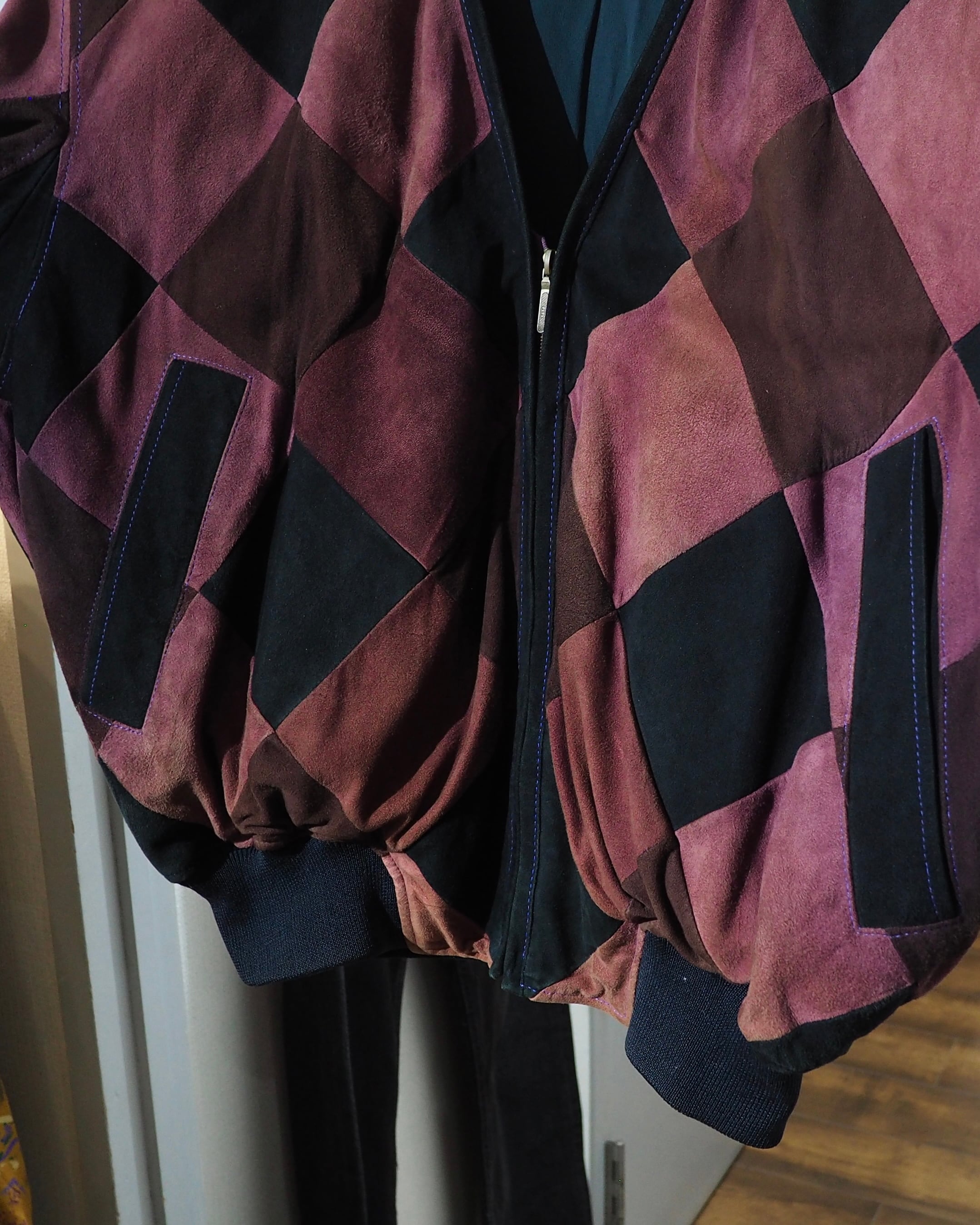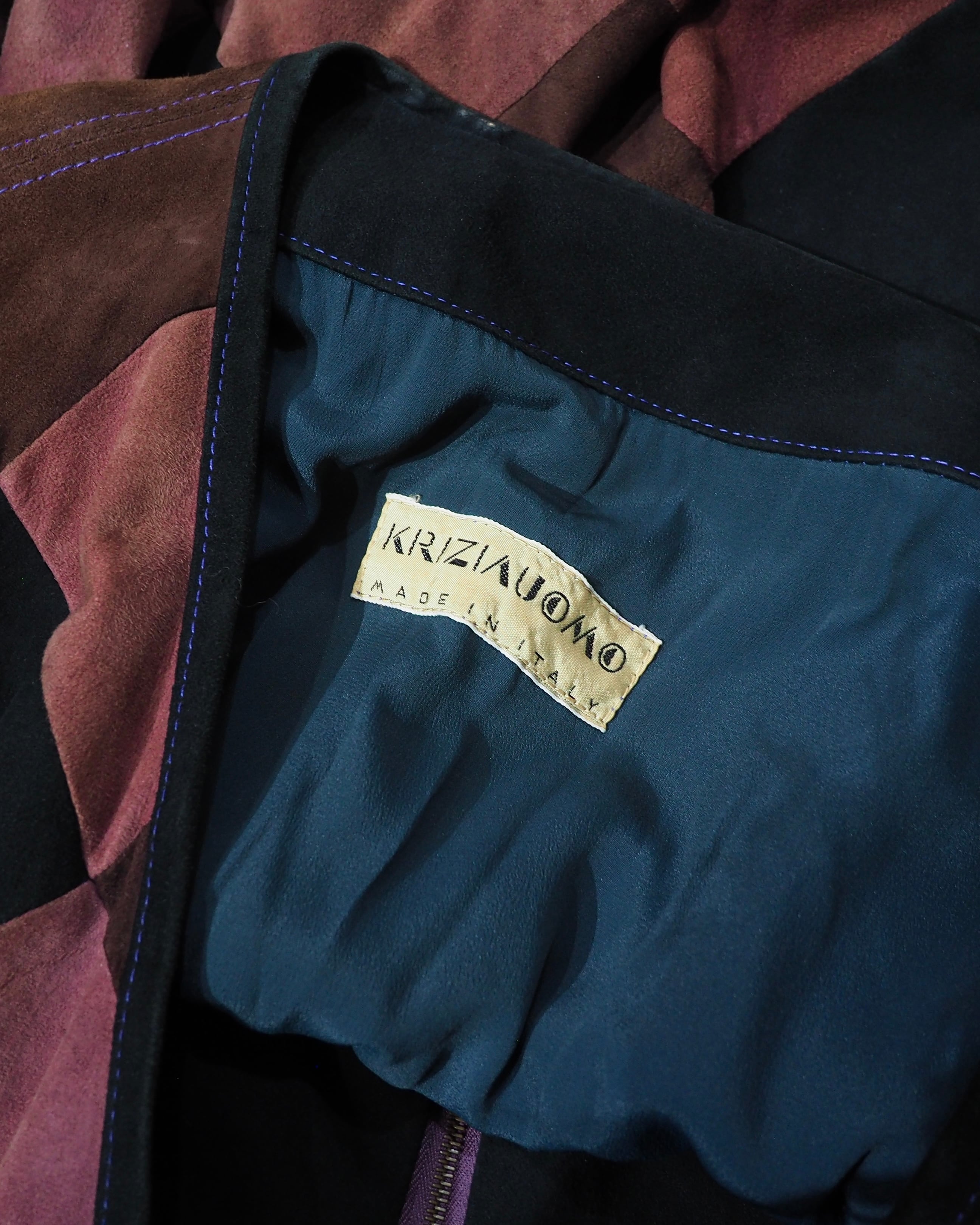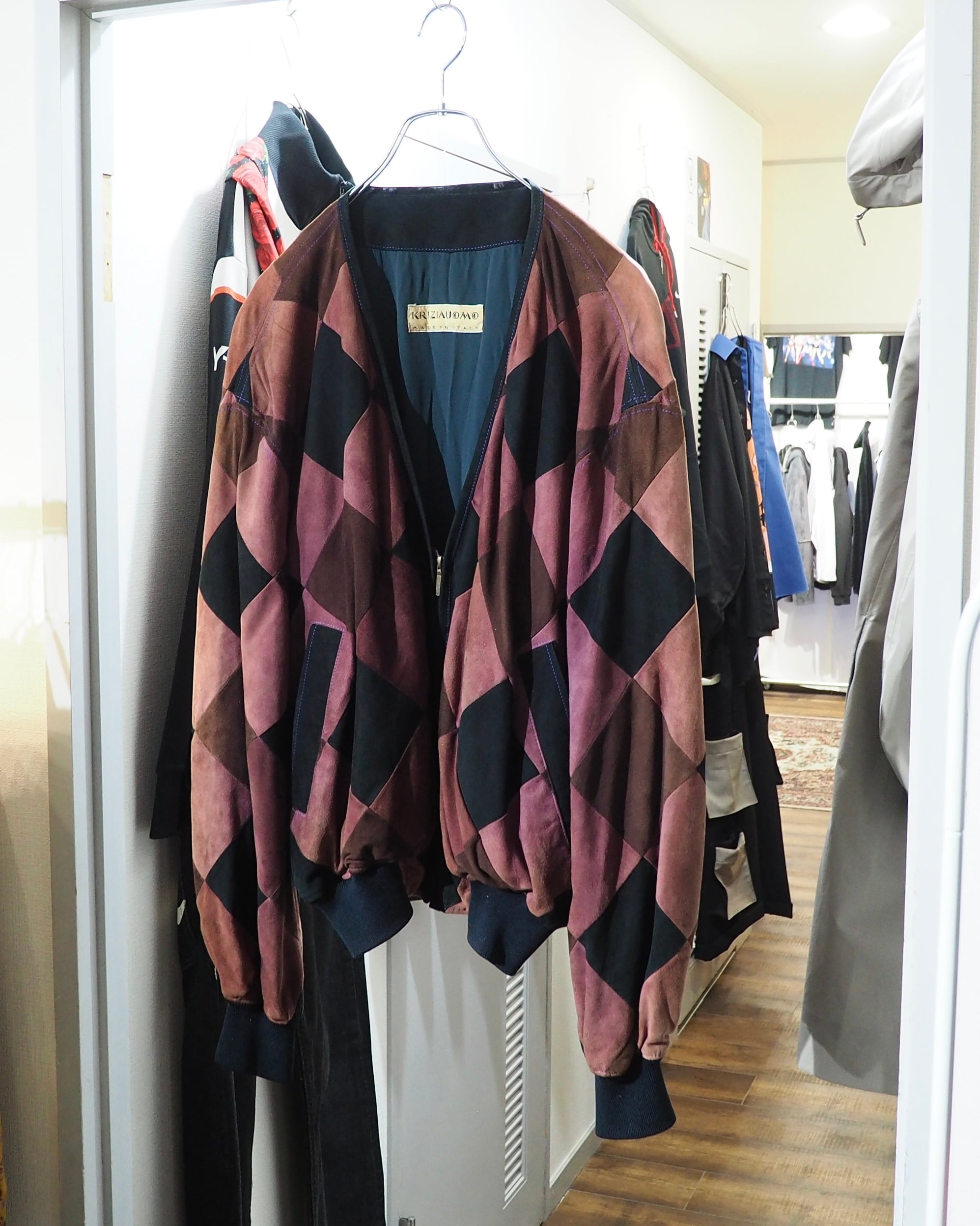 1980s ” KRIZIAUOMO - 染色 ” Diamond check switching vintage Suede leather jacket (made in Italy)