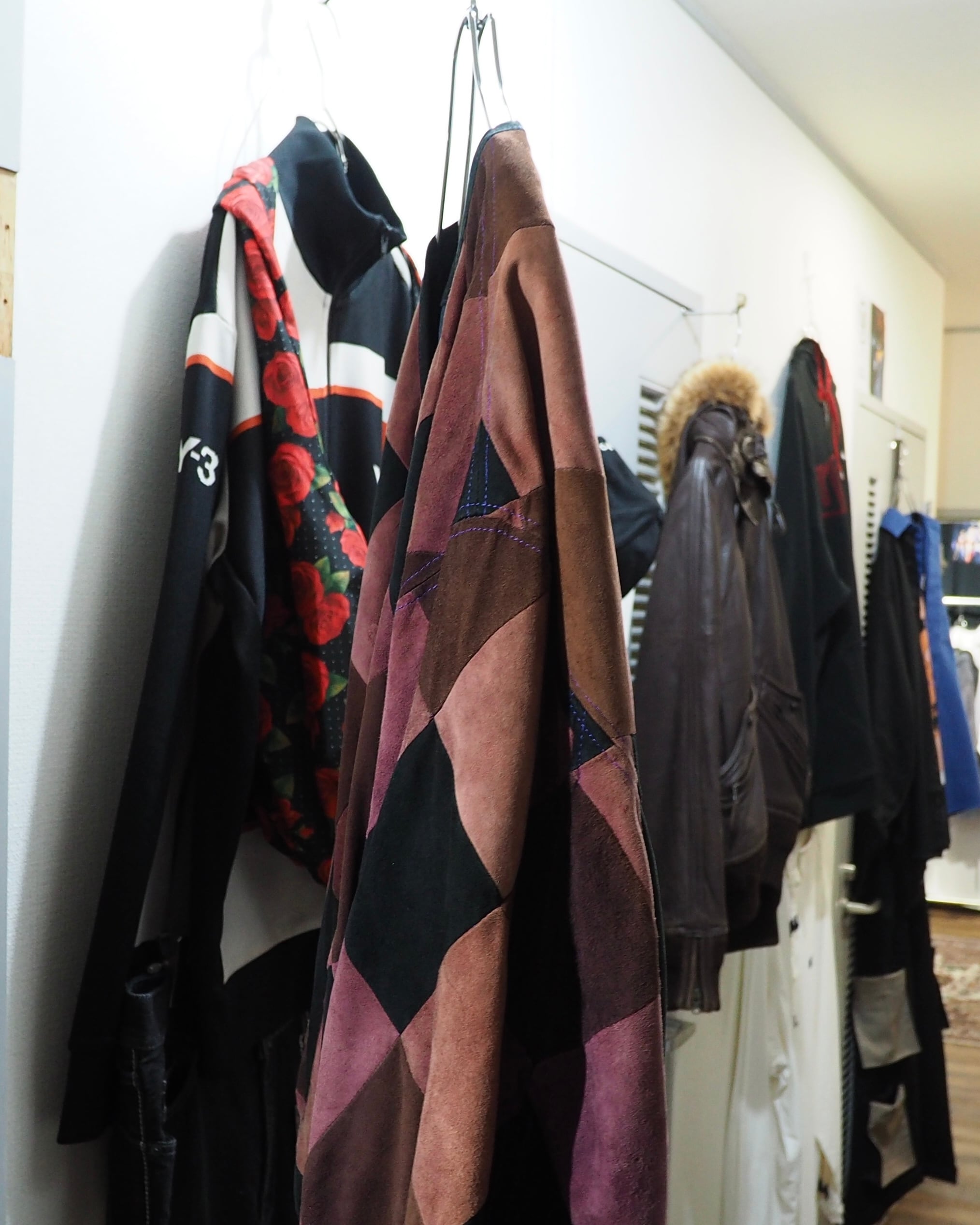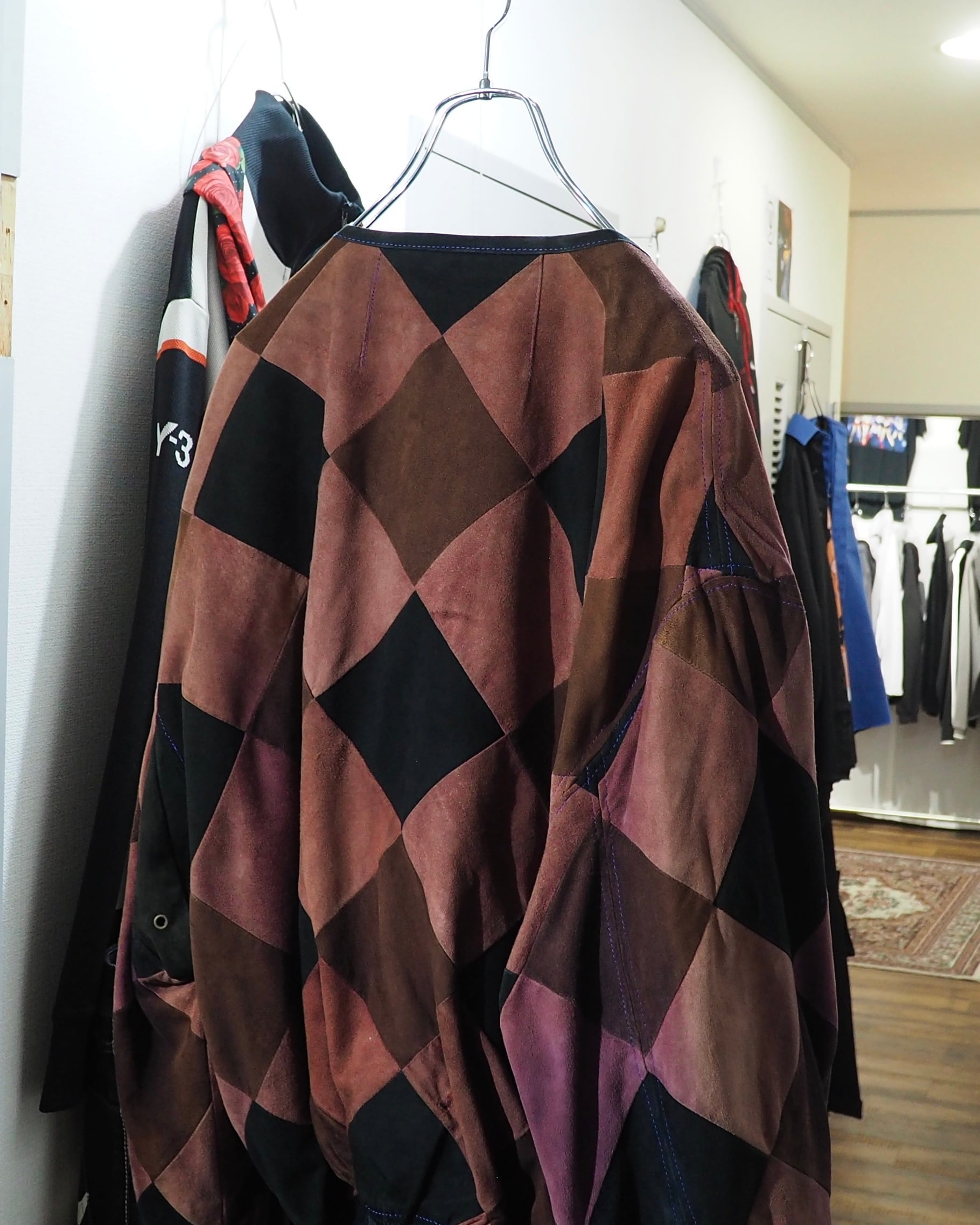 単なるプリントではなく、革の表情と染色のニュアンスが絡み合うことで生まれる奥行きのある色彩が非常に魅力的な一着です。