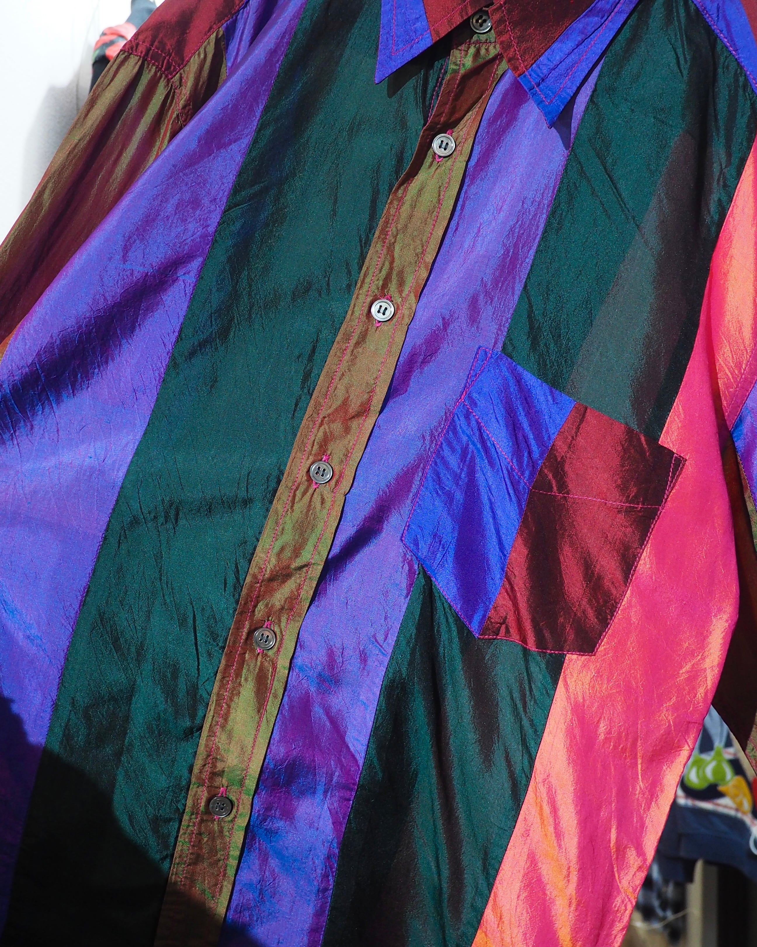 1990s " Paul Smith - 玉虫色 " Bewitching Iridescent Stripe pattern vintage Silk shirt