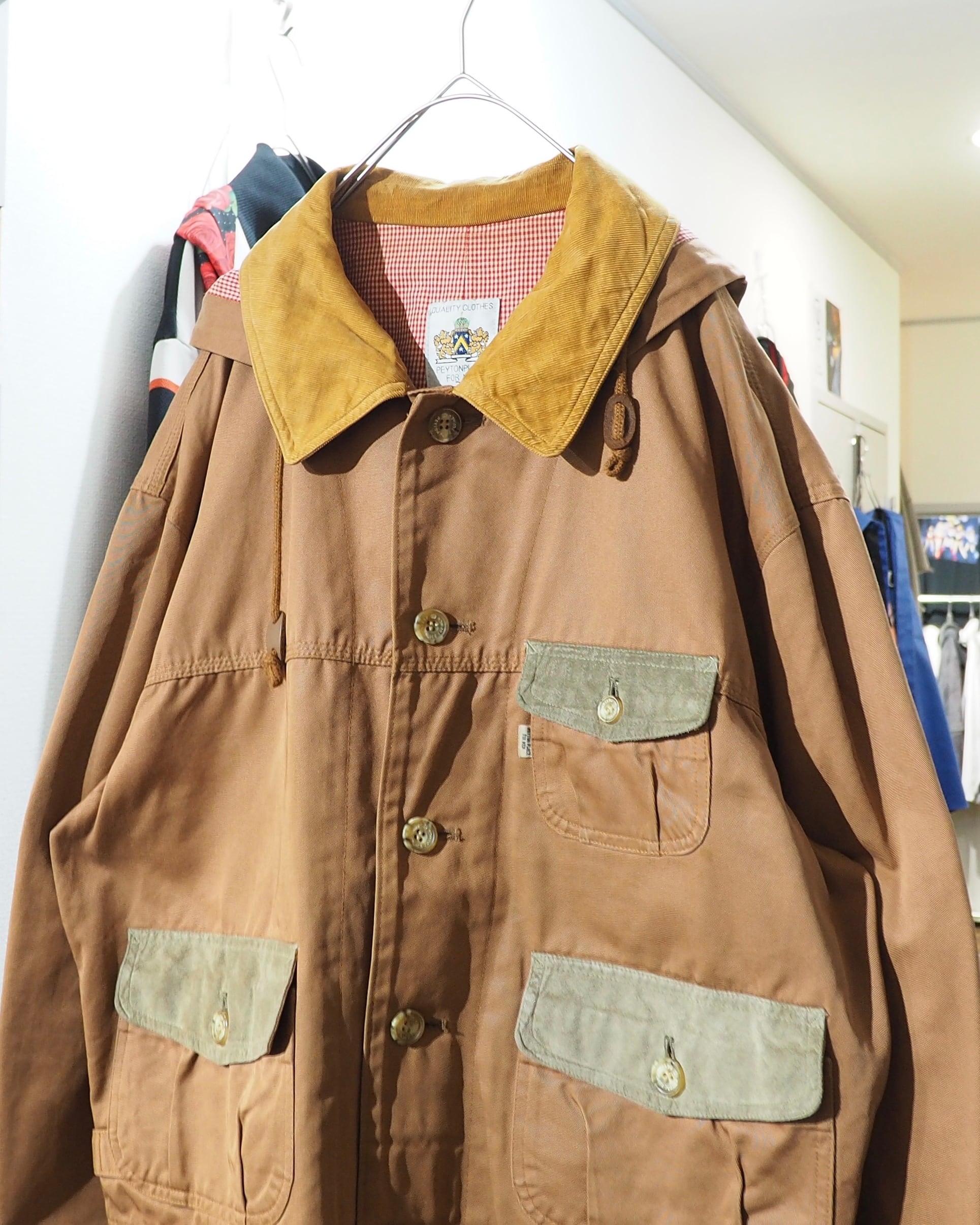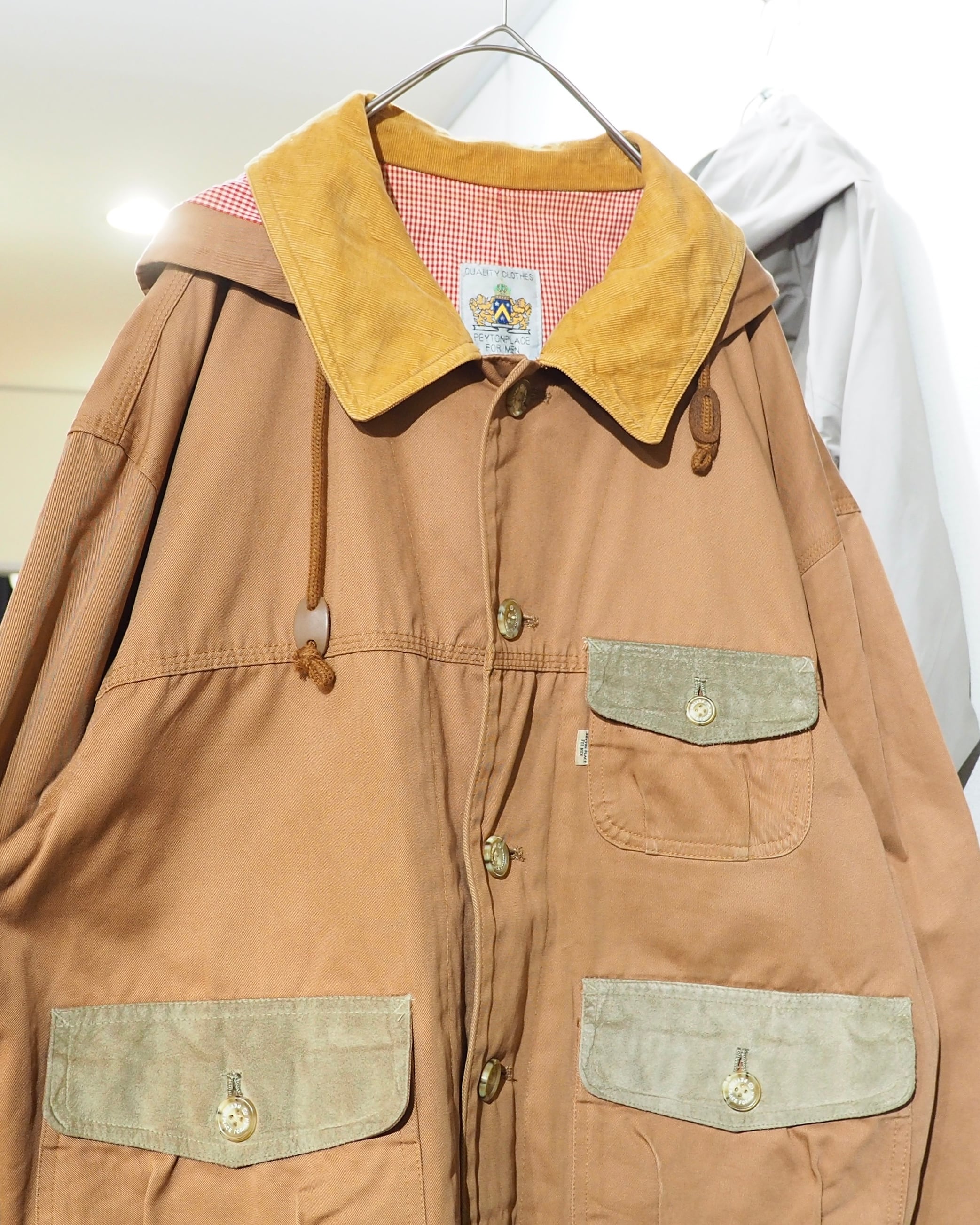 2000s " PPFM " Corduroy Collar × Suede Pocket switching Short Hoodie Jacket