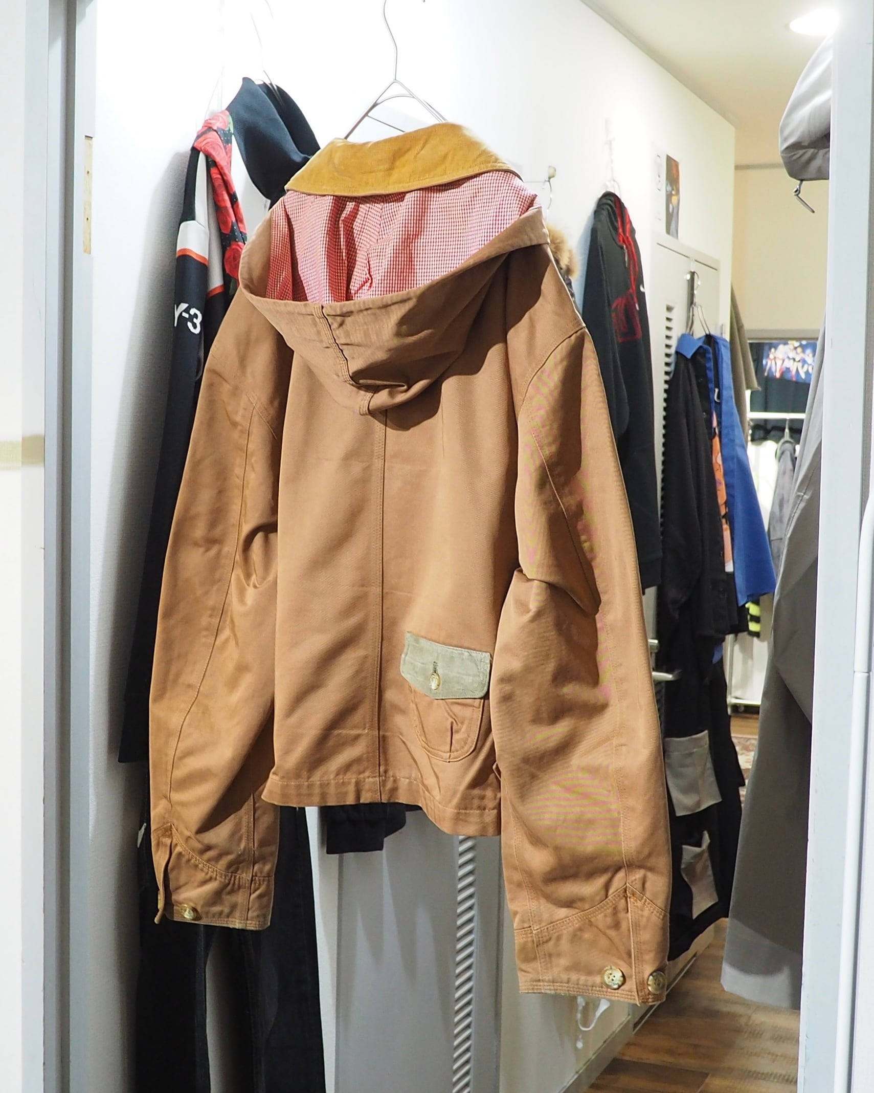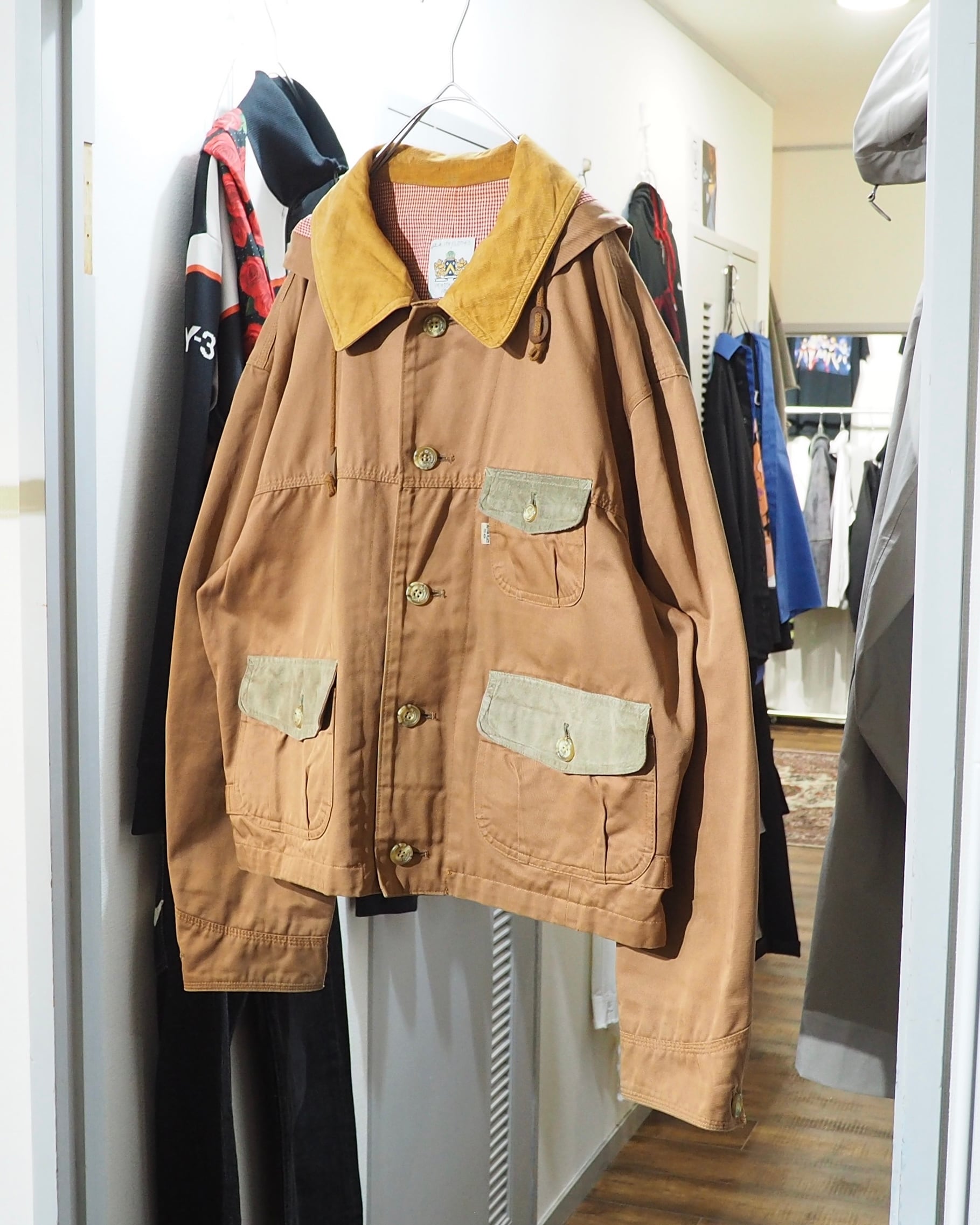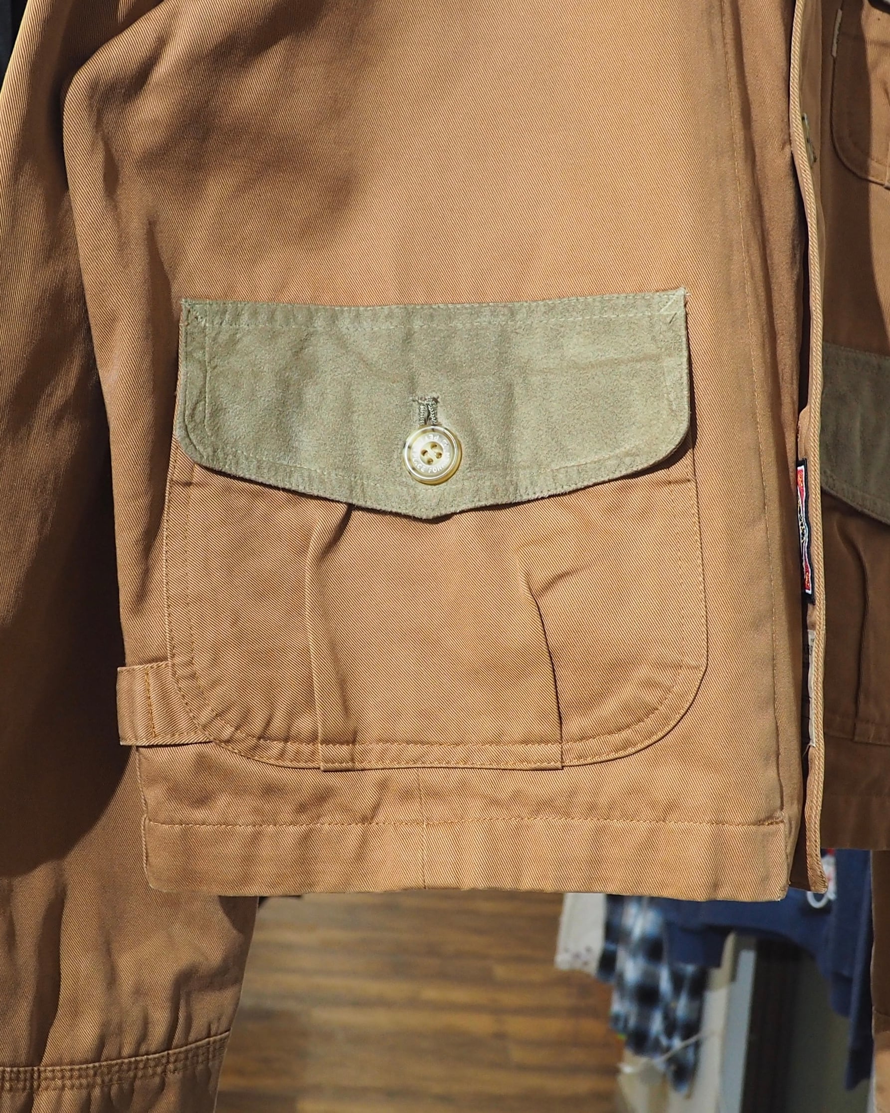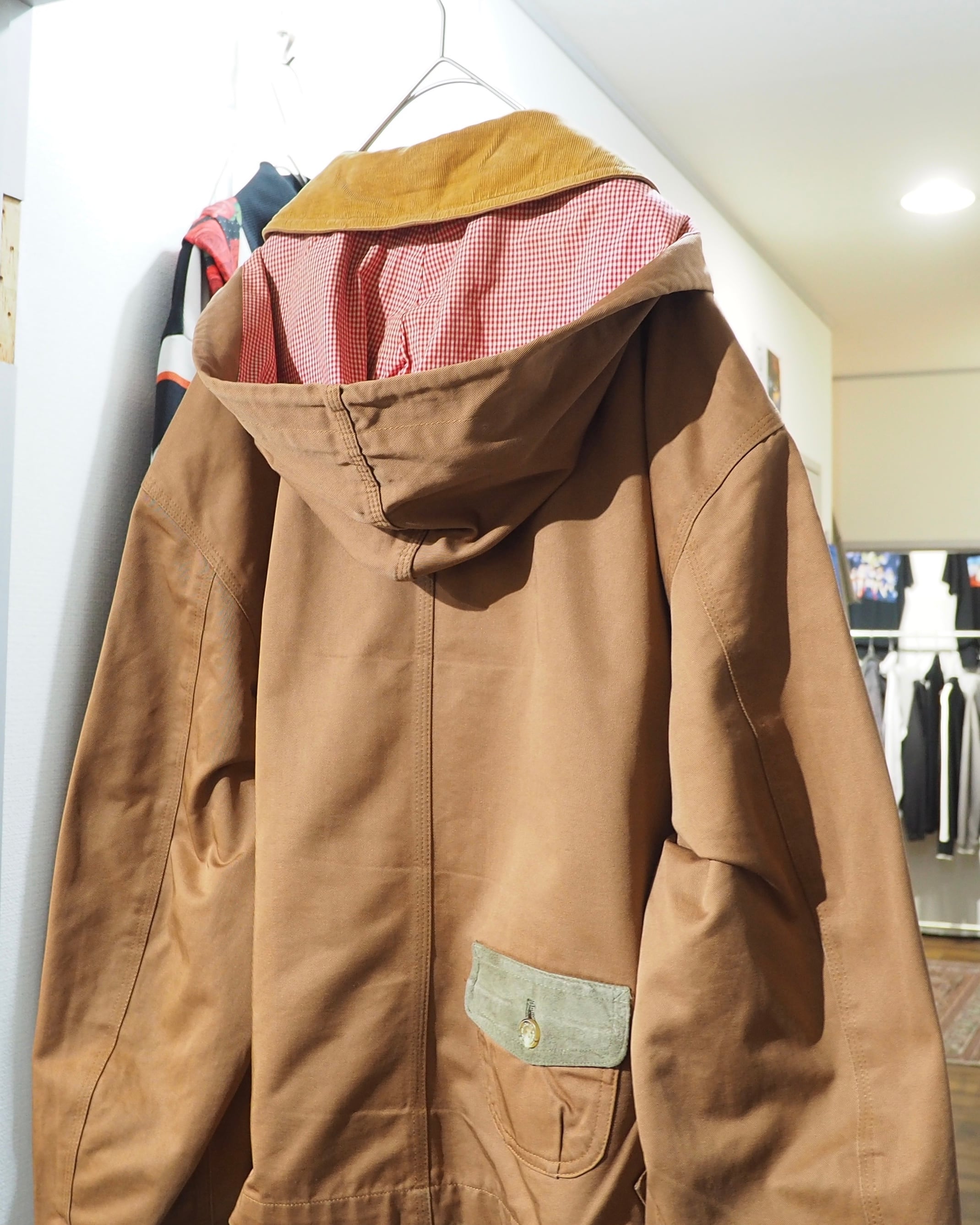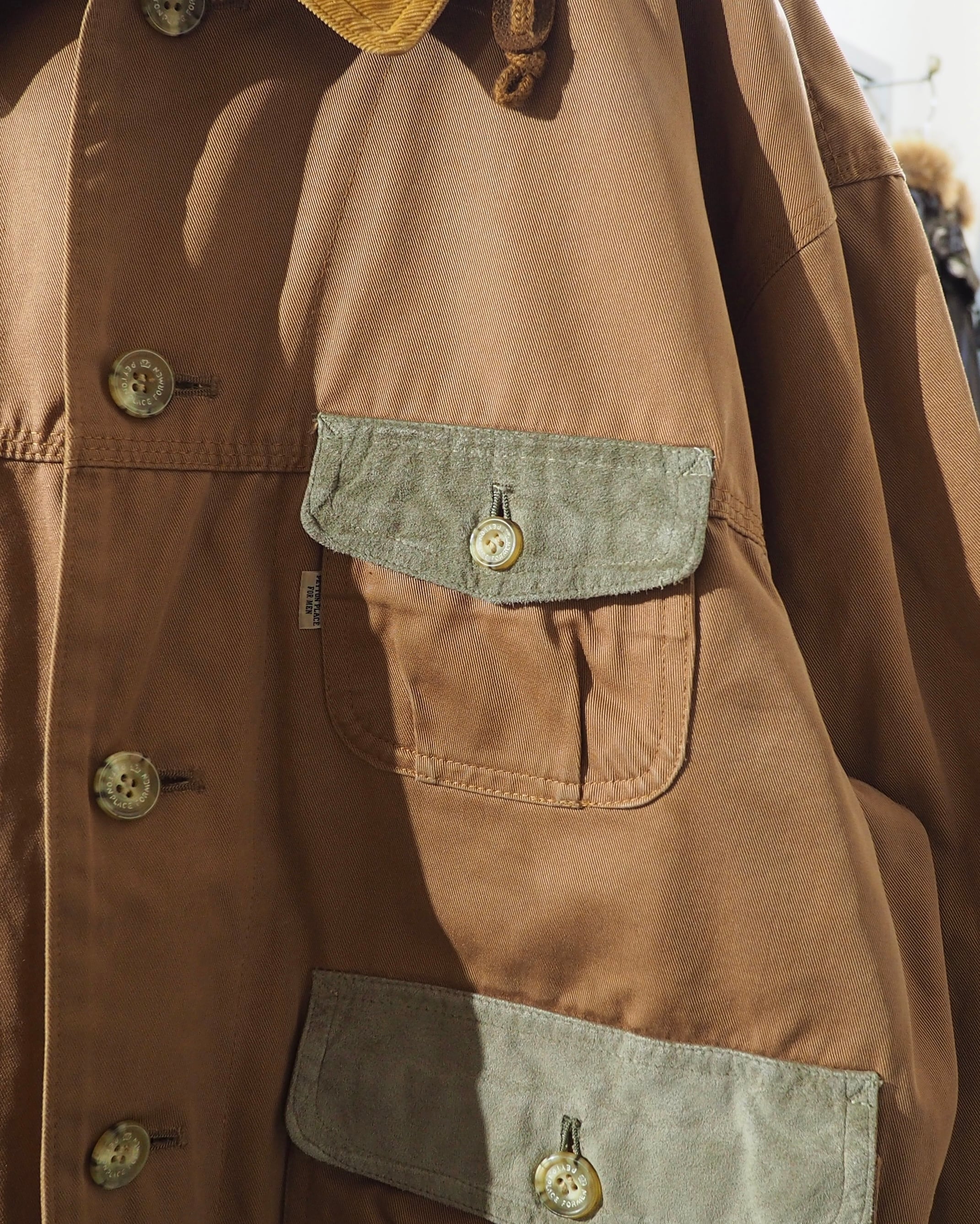 襟のコーデュロイ切り替えやスウェードフラップポケットなど、異素材を組み合わせたデザインがアイコニックな一着です。このフラップポッケ、背面にあしらわれているのも良いですね。