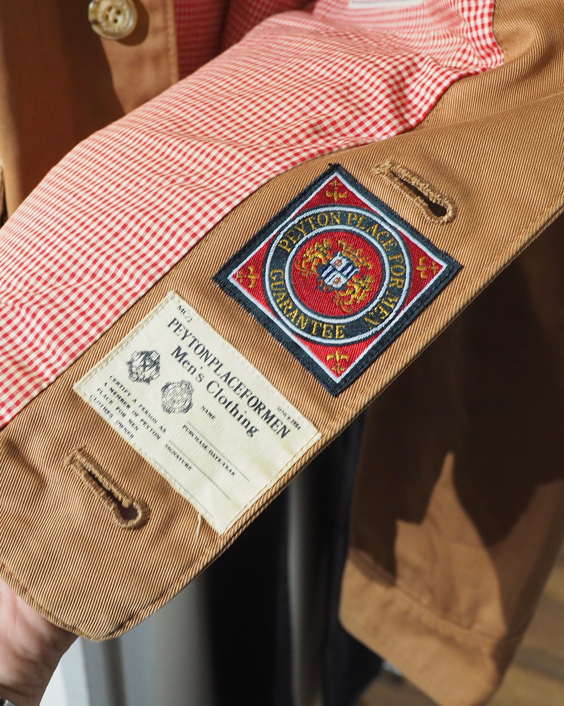 とろみのあるボタンや裏地のギンガムチェックなど、細かなディテールまで抜かりなし。