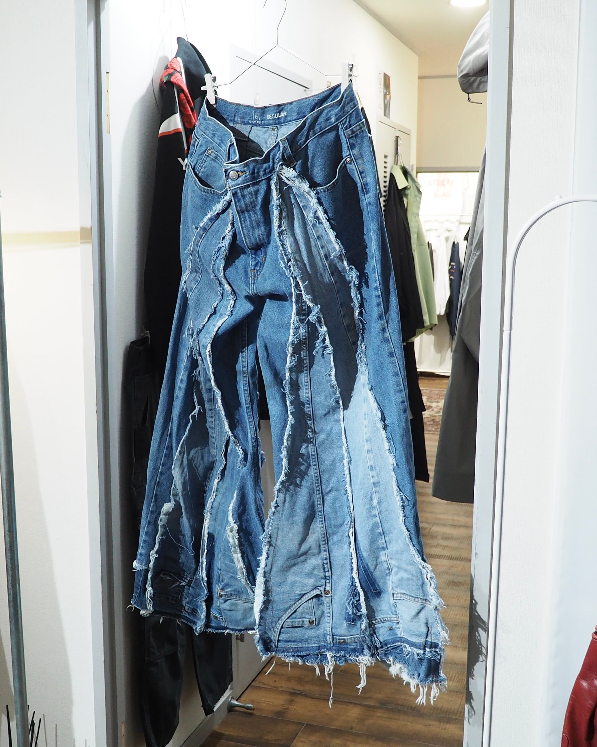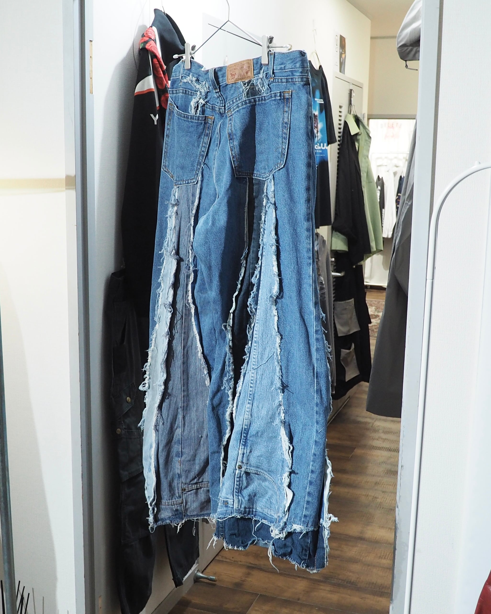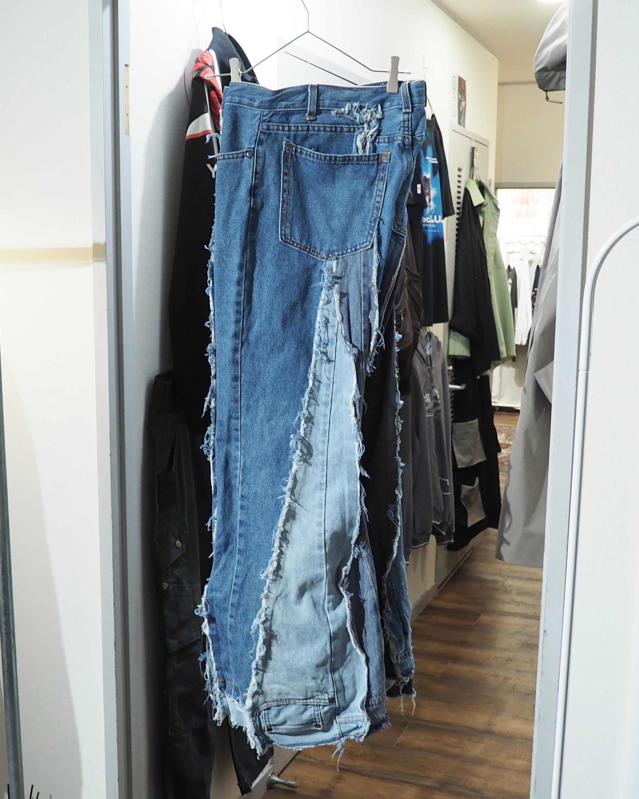 複数のデニムを解体▶︎再構築によって生まれた唯一無二のデザインとディテール、シルエットがスペシャルなリメイクワイドバギーパンツ。