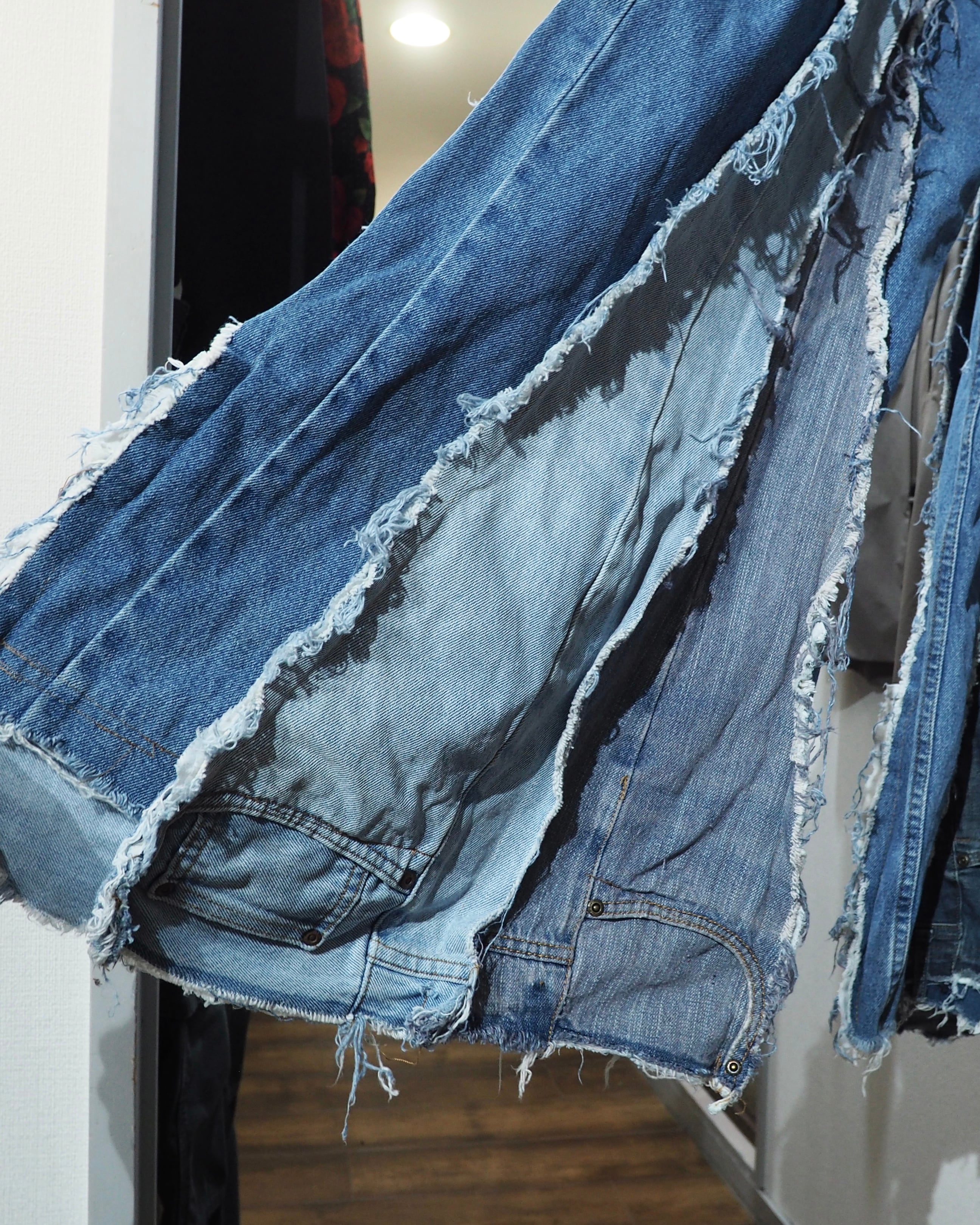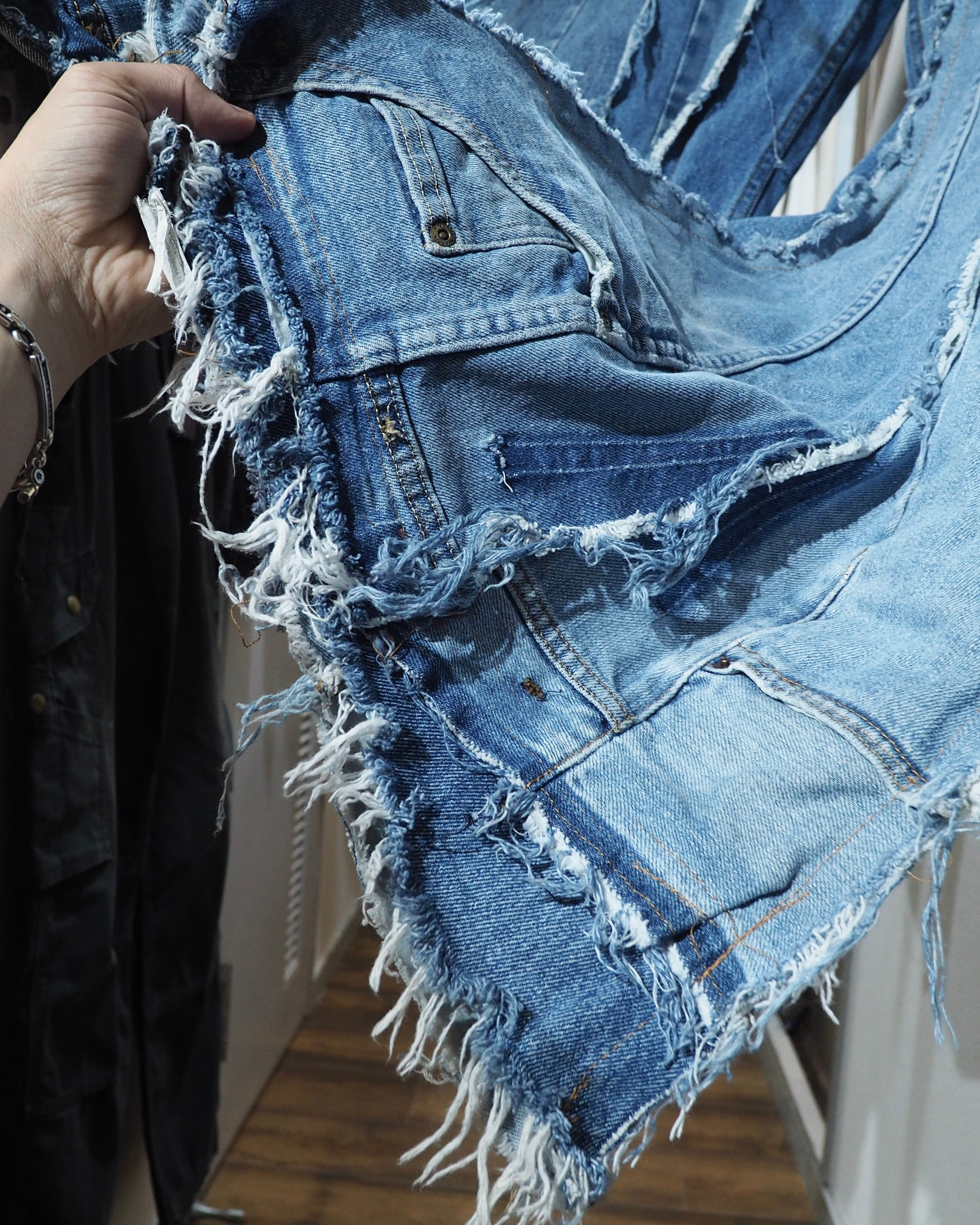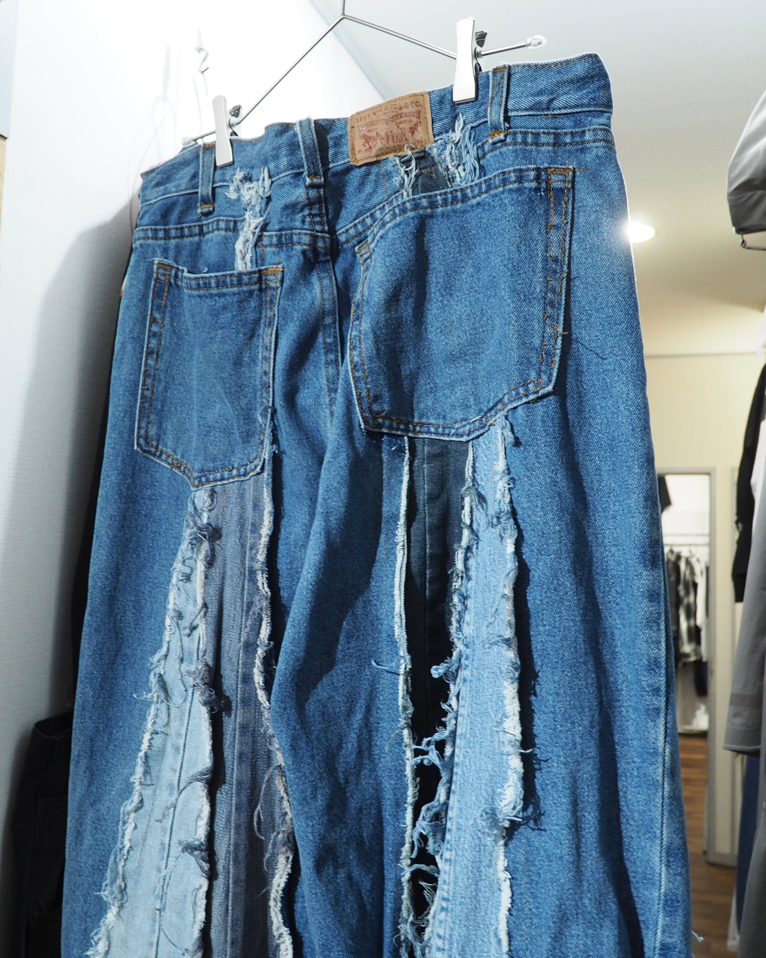 複数のデニムを解体▶︎再構築によって生まれた唯一無二のデザインとディテール、シルエットがスペシャルなリメイクワイドバギーパンツ。