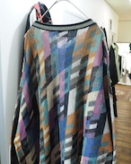 ピンク、オレンジ、エクリュホワイト、ブルー、ブラックといった色鮮やかなマルチパステルカラーをパネル状に切り替えたヴィンテージニット。
