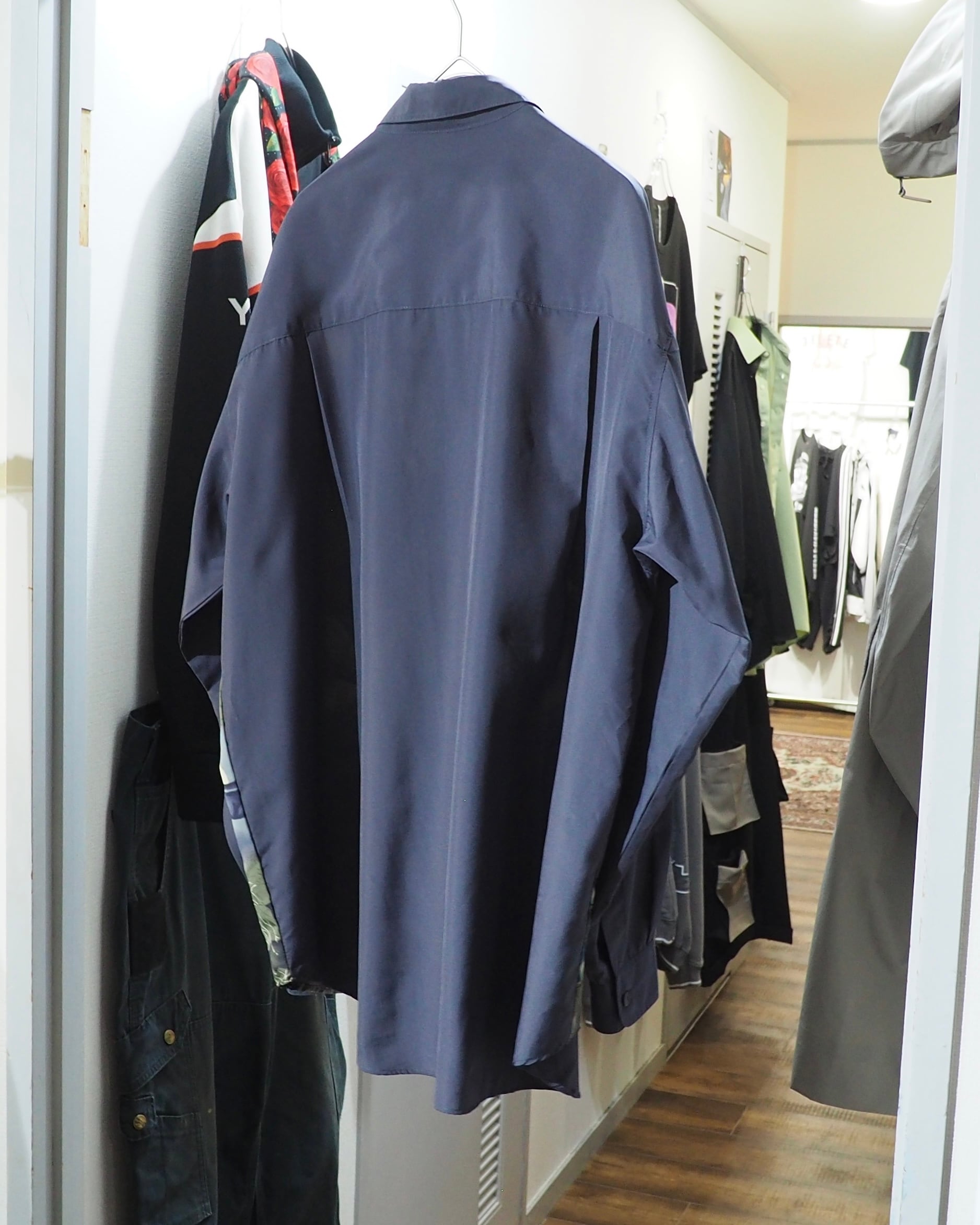 生地はとろみのあるドレープ素材。動くたびに揺れる落ち感が美しく、洗練されたシルエットを形成。羽織るだけで空気感まで纏える、そんな一枚です。