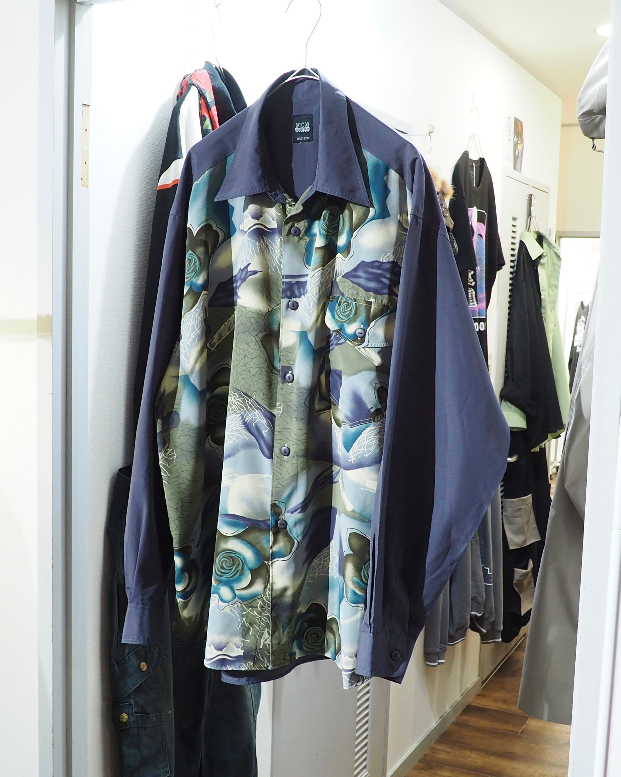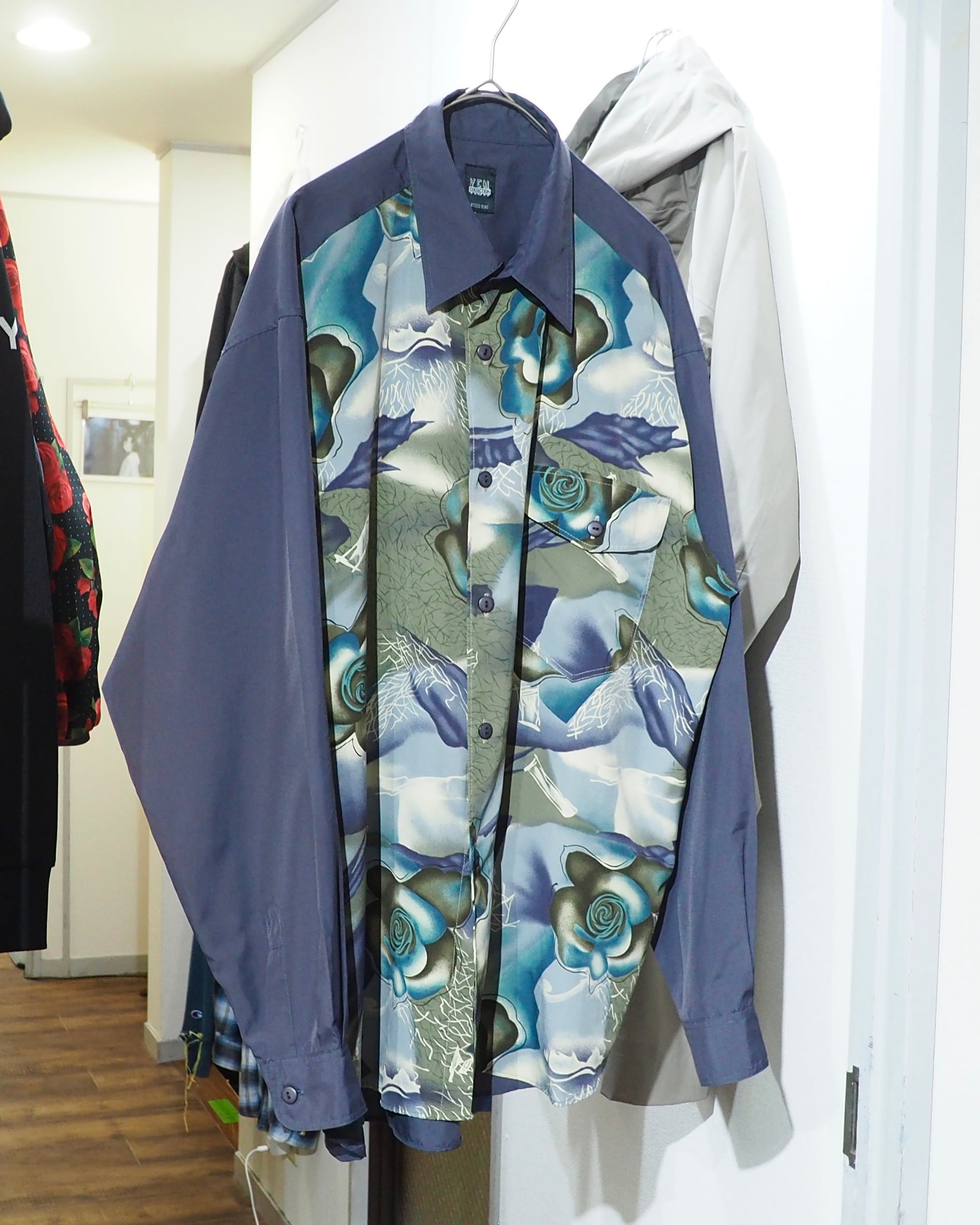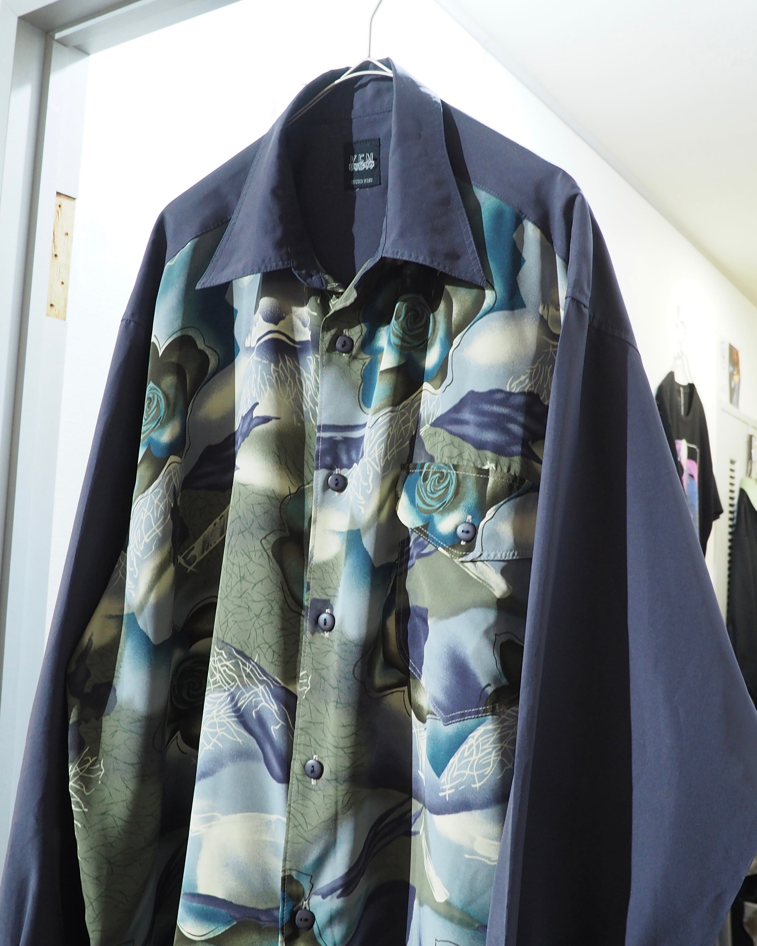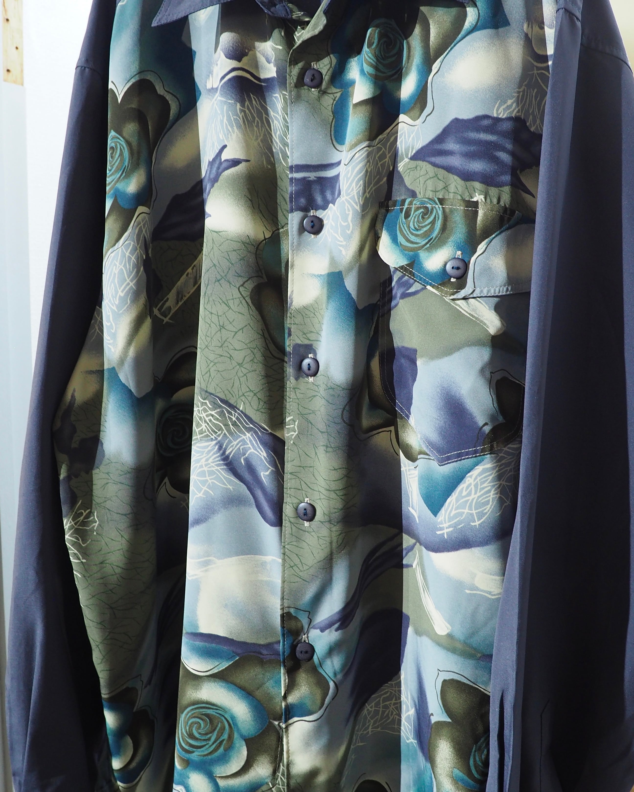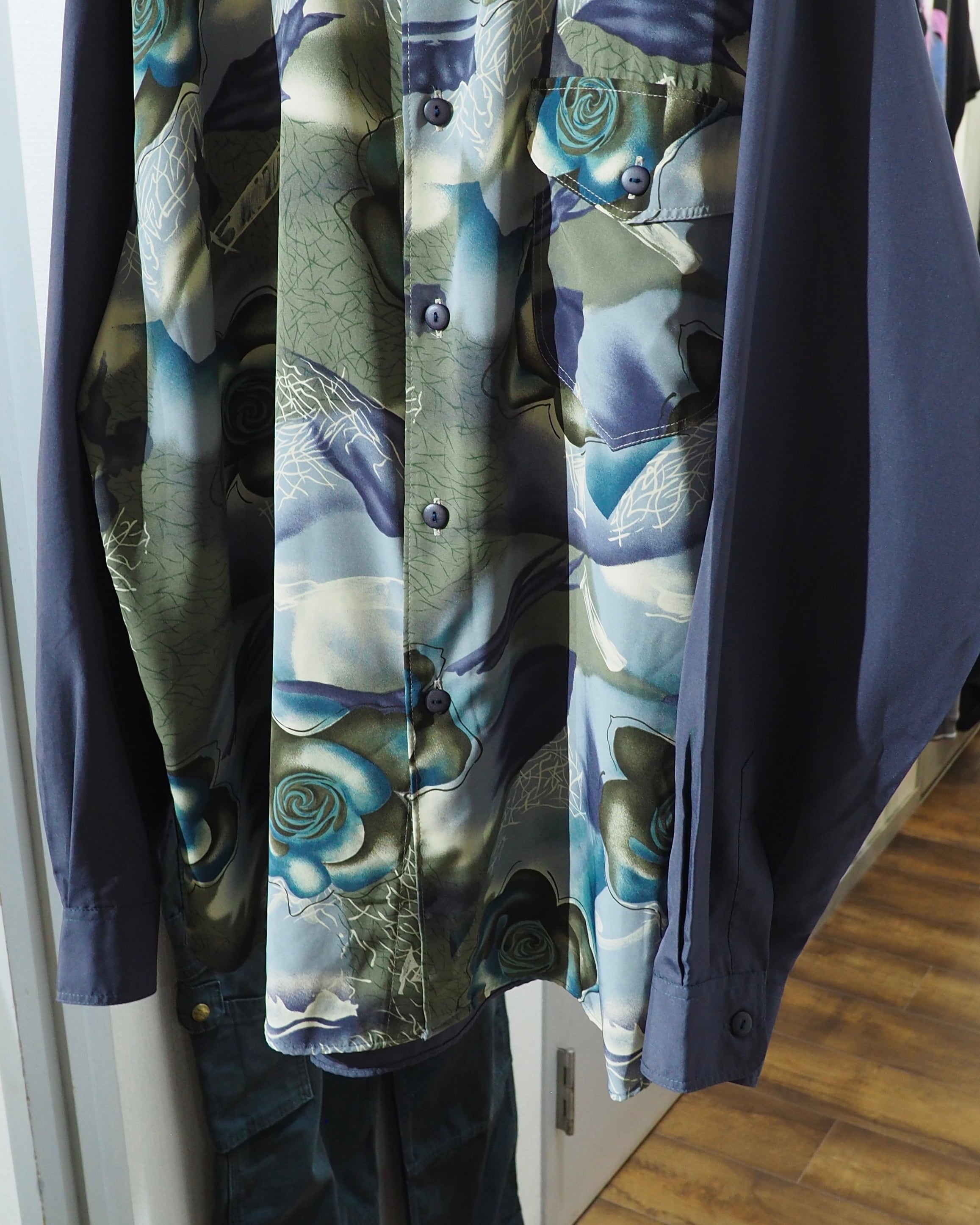1990s Beautiful Dark Flower pattern vintage Drape loose shirt