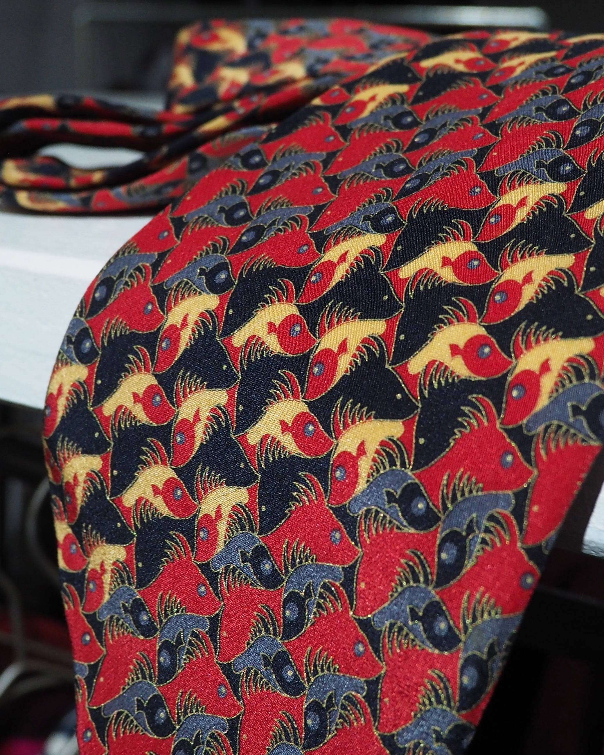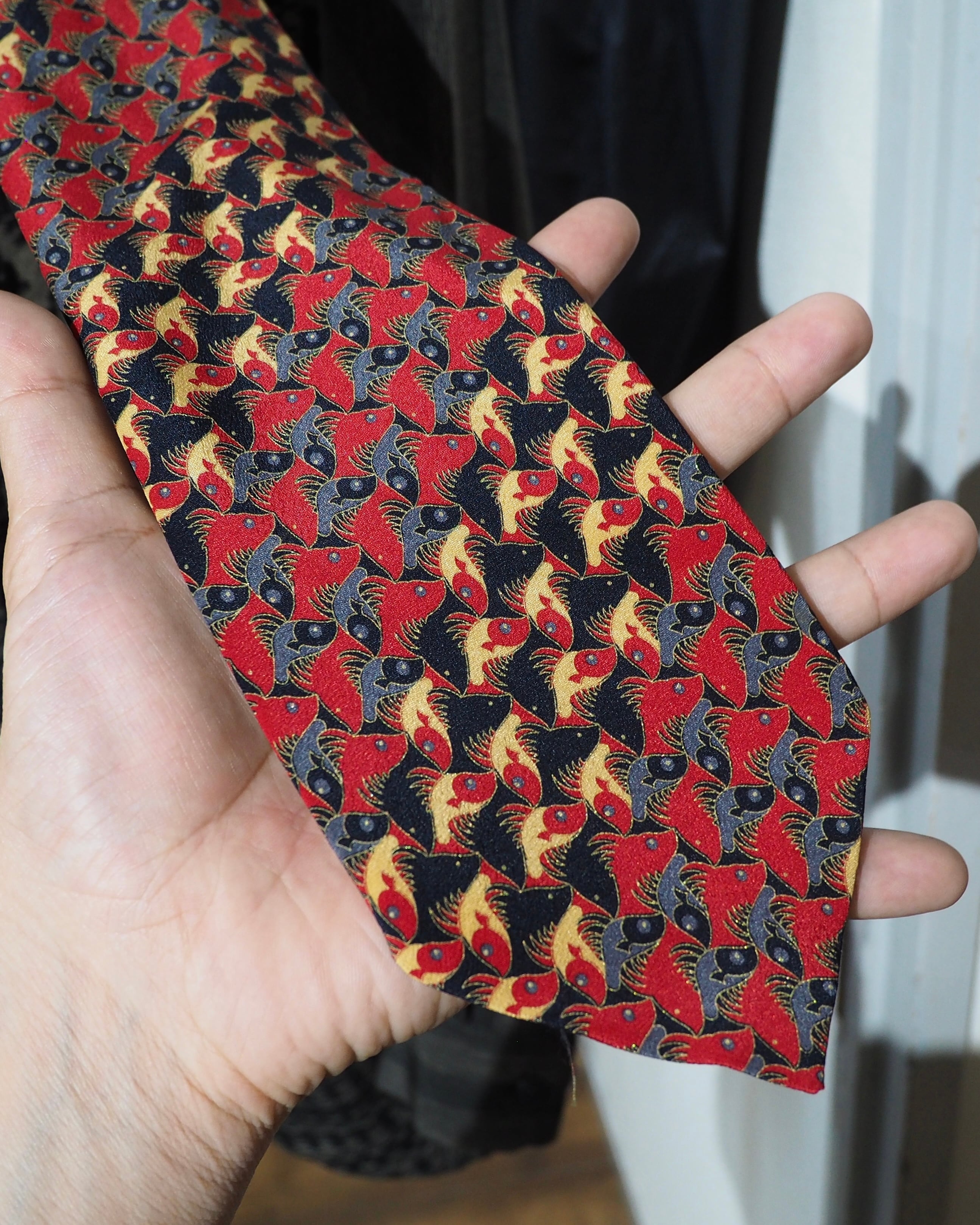 " M.C ESCHER " Trompe l'oeil Fish pattern vintage silk Tie (made in Italy) エッシャー だまし絵 イタリア製 シルクネクタイ