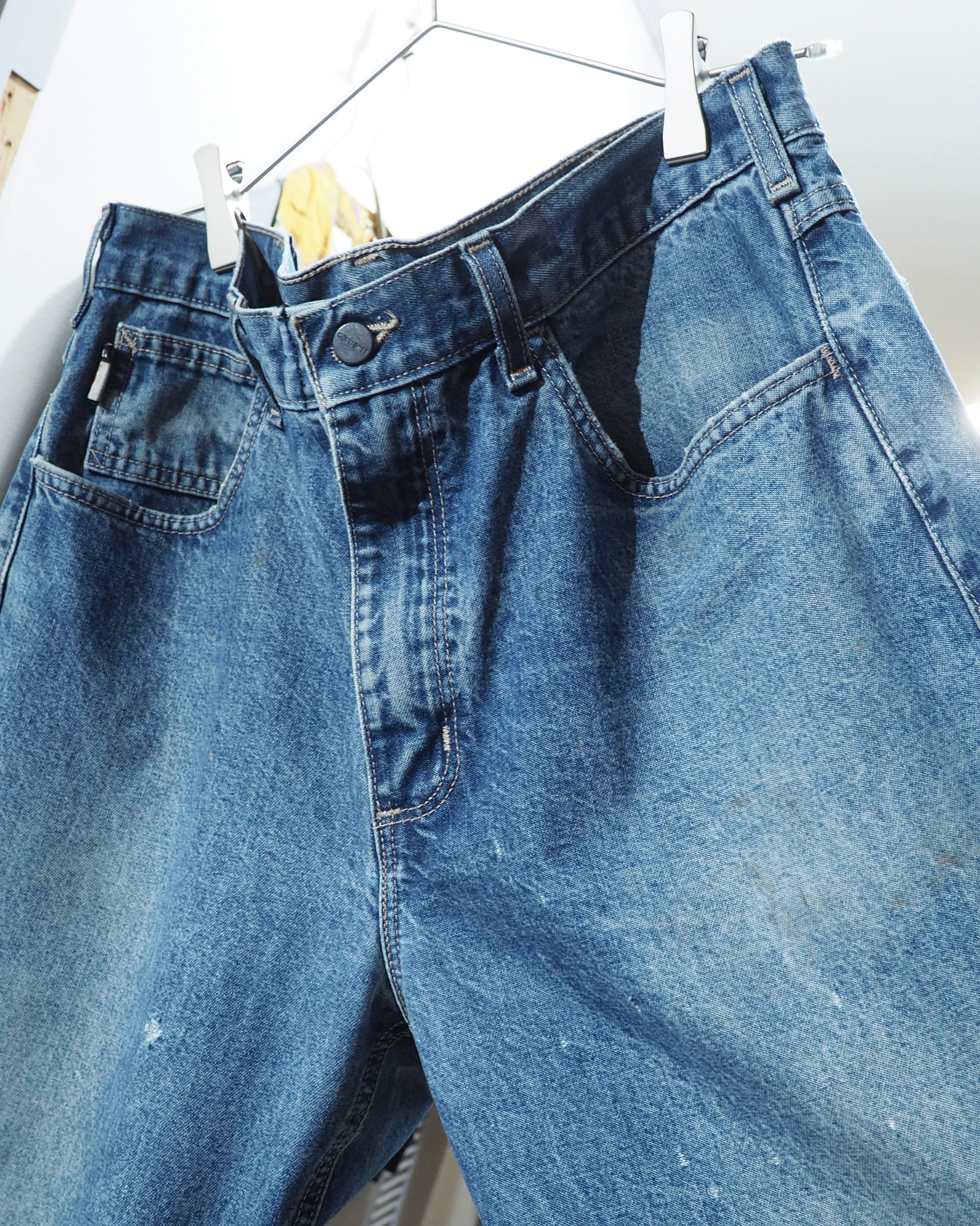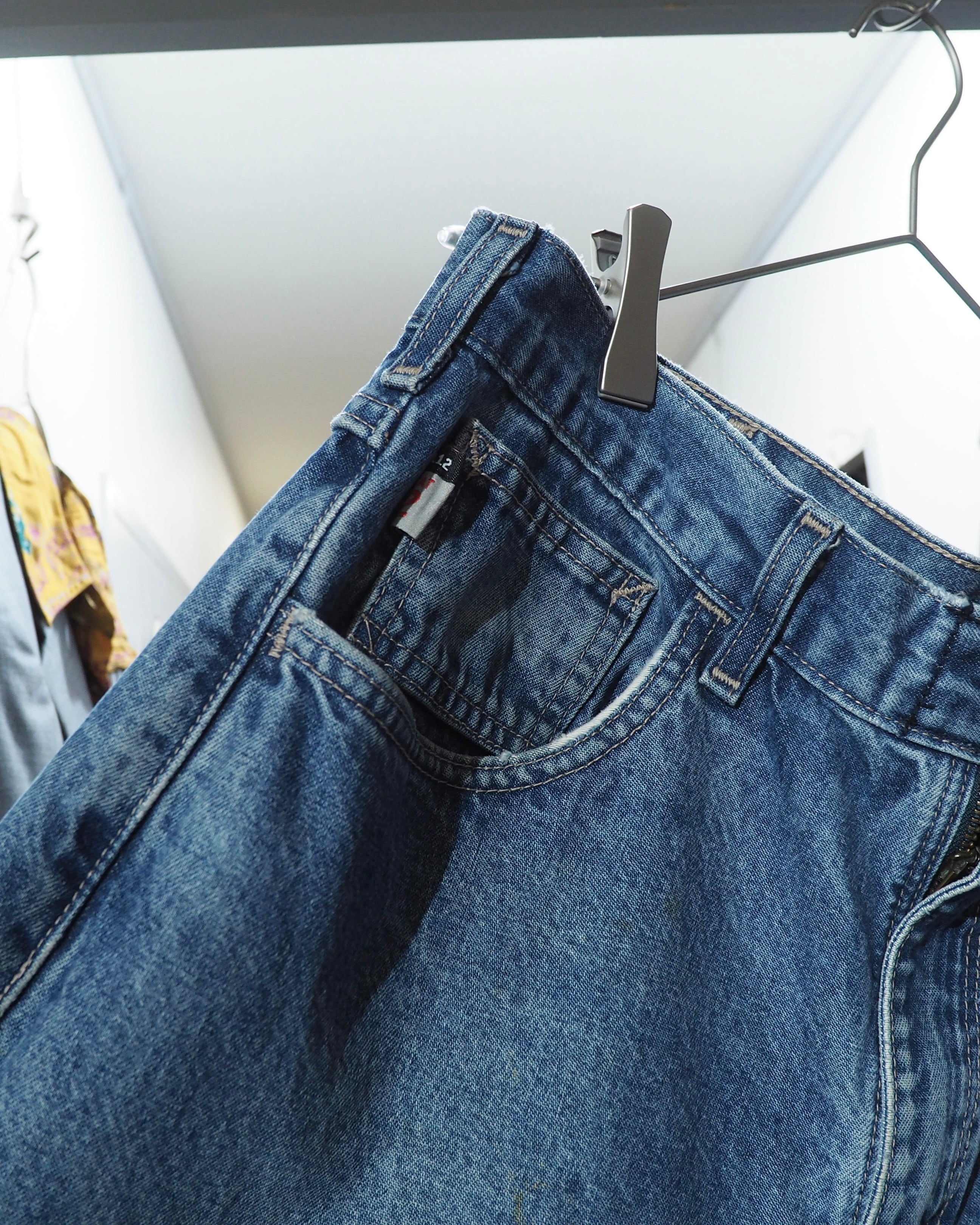 長年履き込まれた事によるアタリと色落ち、破れ、ダメージが、デニム本来の奥行きを引き出した逸品。ややくすみを帯びたインディゴブルーは、無骨さの中にどこか柔らかさも感じさせる絶妙な表情をみせてくれます。