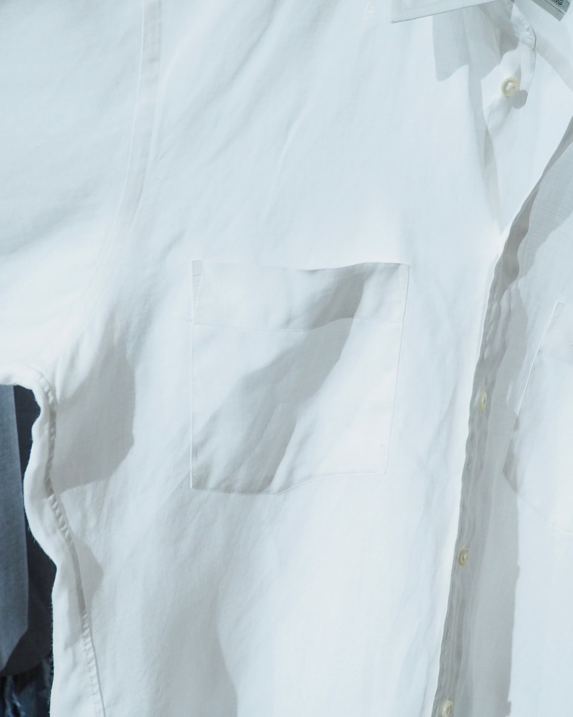 無駄を削ぎ落としたプレーンな表情ながら、生地の質感とシルエットで魅せる大人のためのホワイトシャツ。フロントにはダブルポッケとアイコニックな刺繍ロゴがあしらわれています。