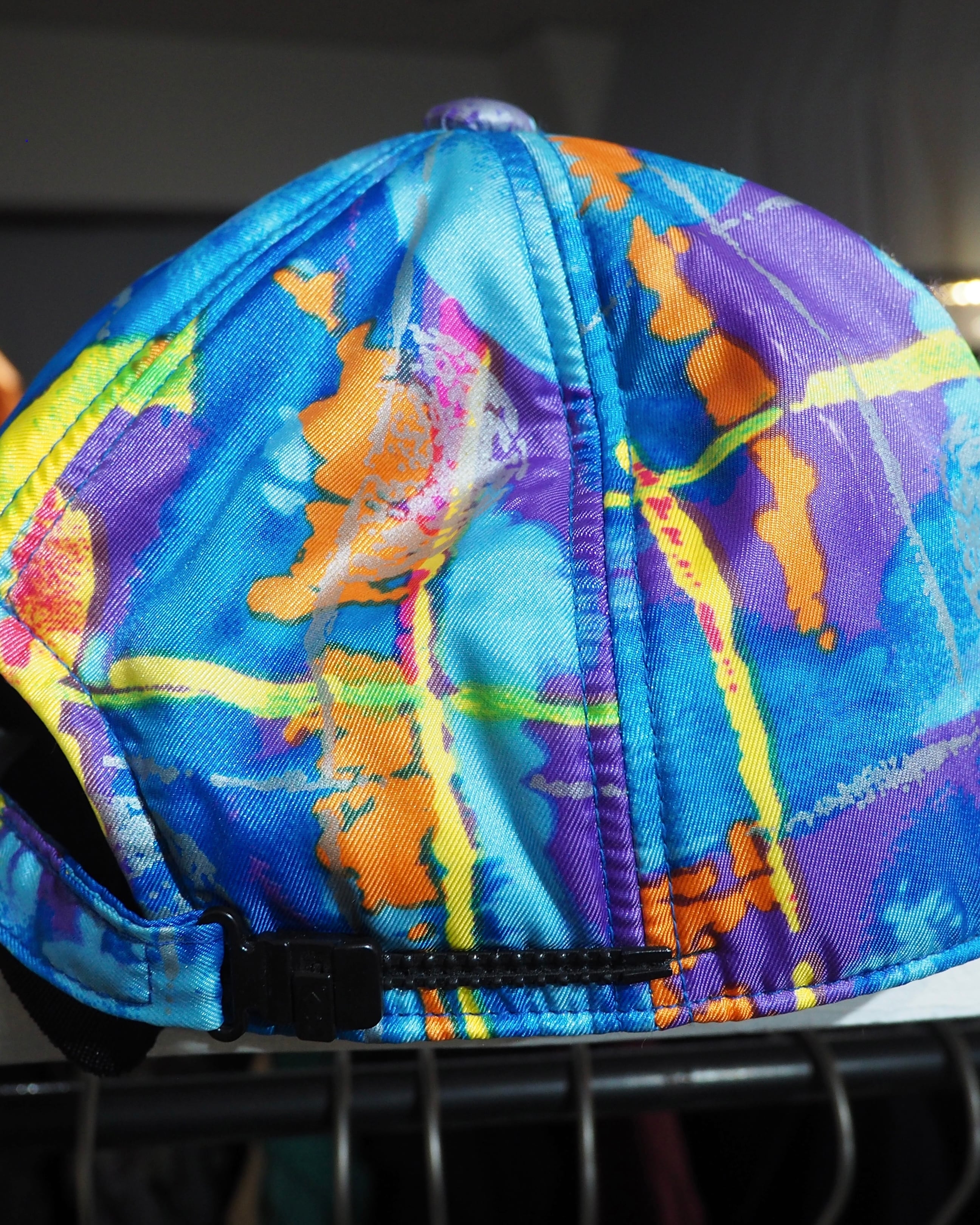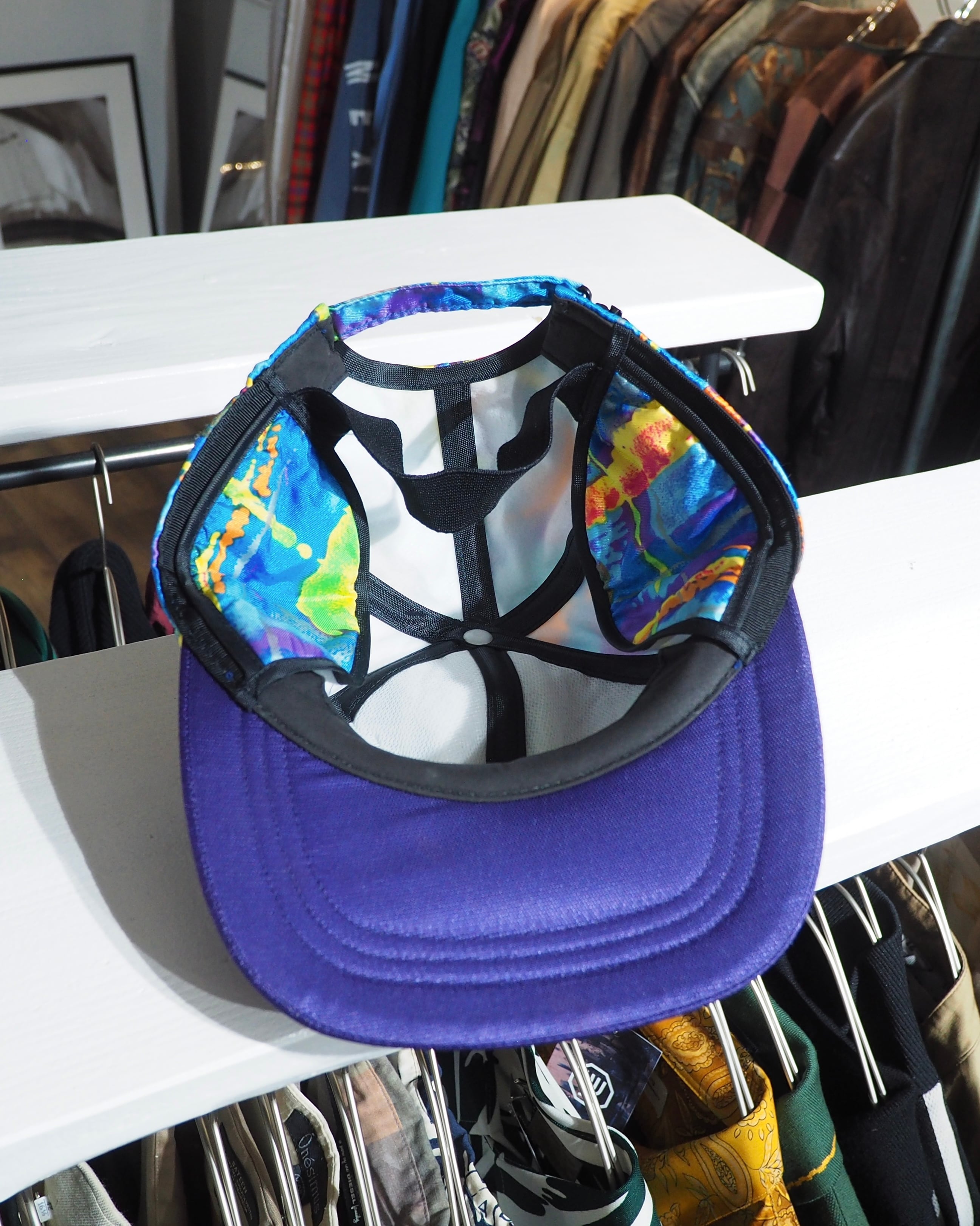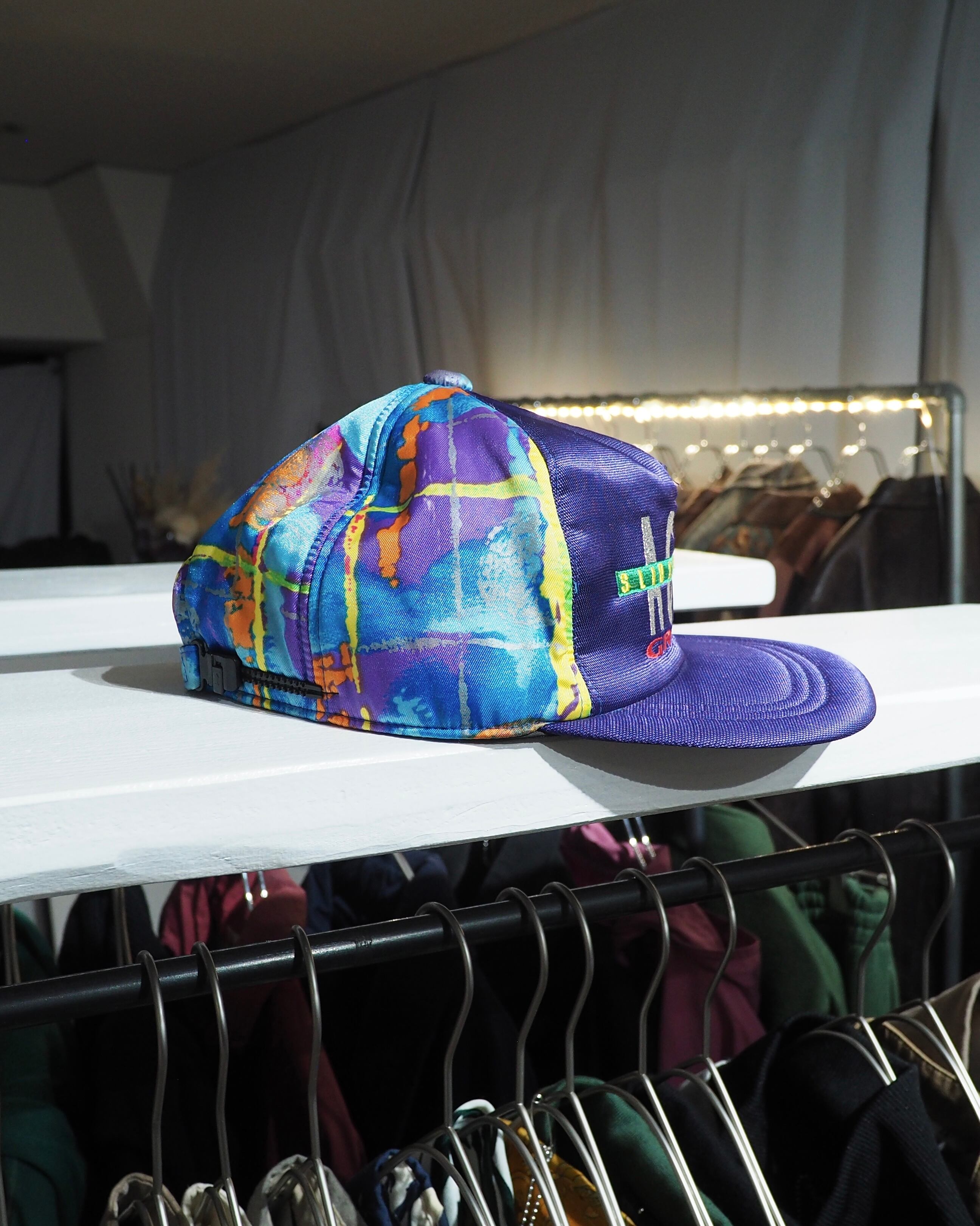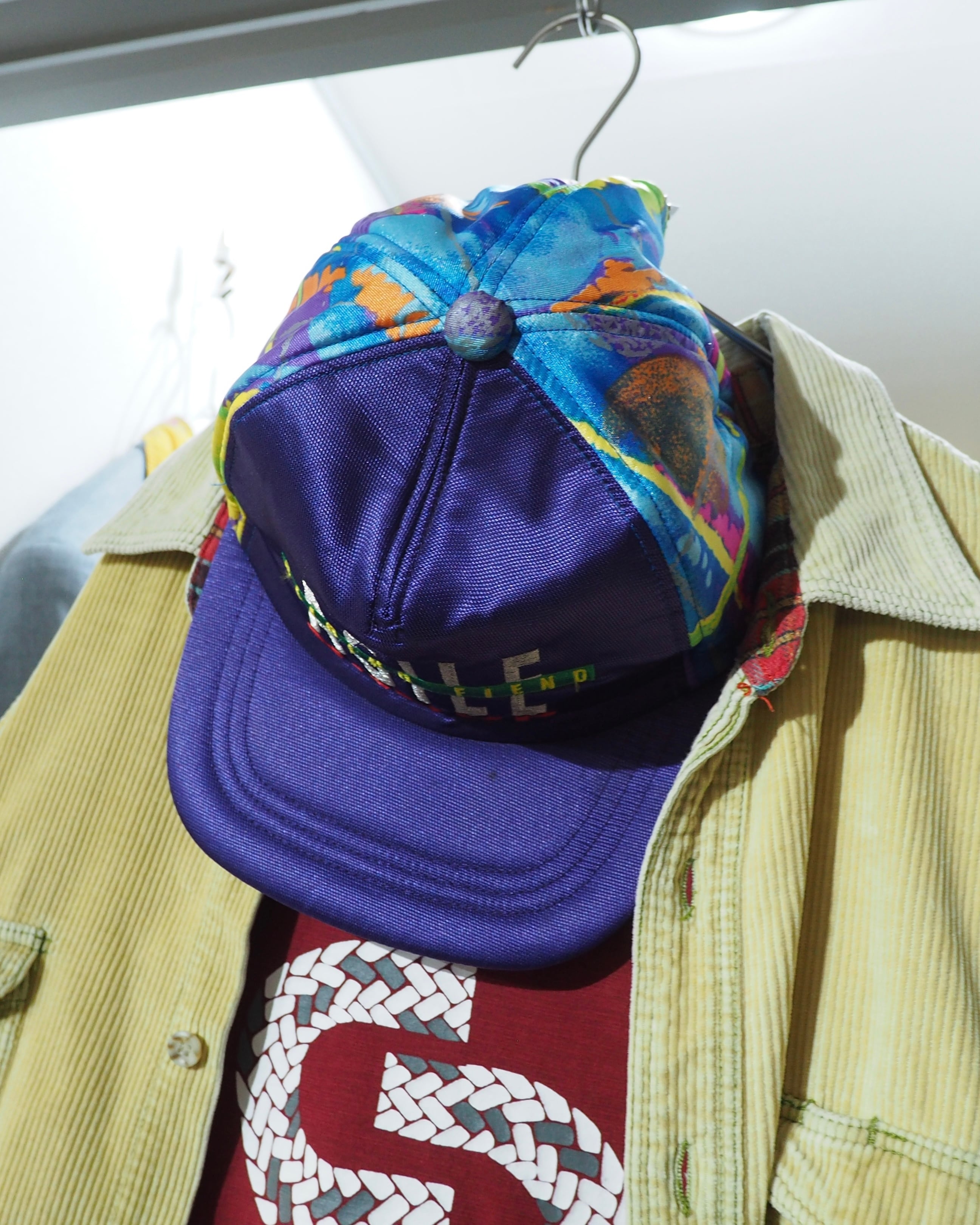 レトロなパープルを基調としたボディに組み合わされたマルチカラーアートパターンが90sライクな空気感を含む逸品。アイコニックなフロントロゴ刺繍も可愛らしいですね。