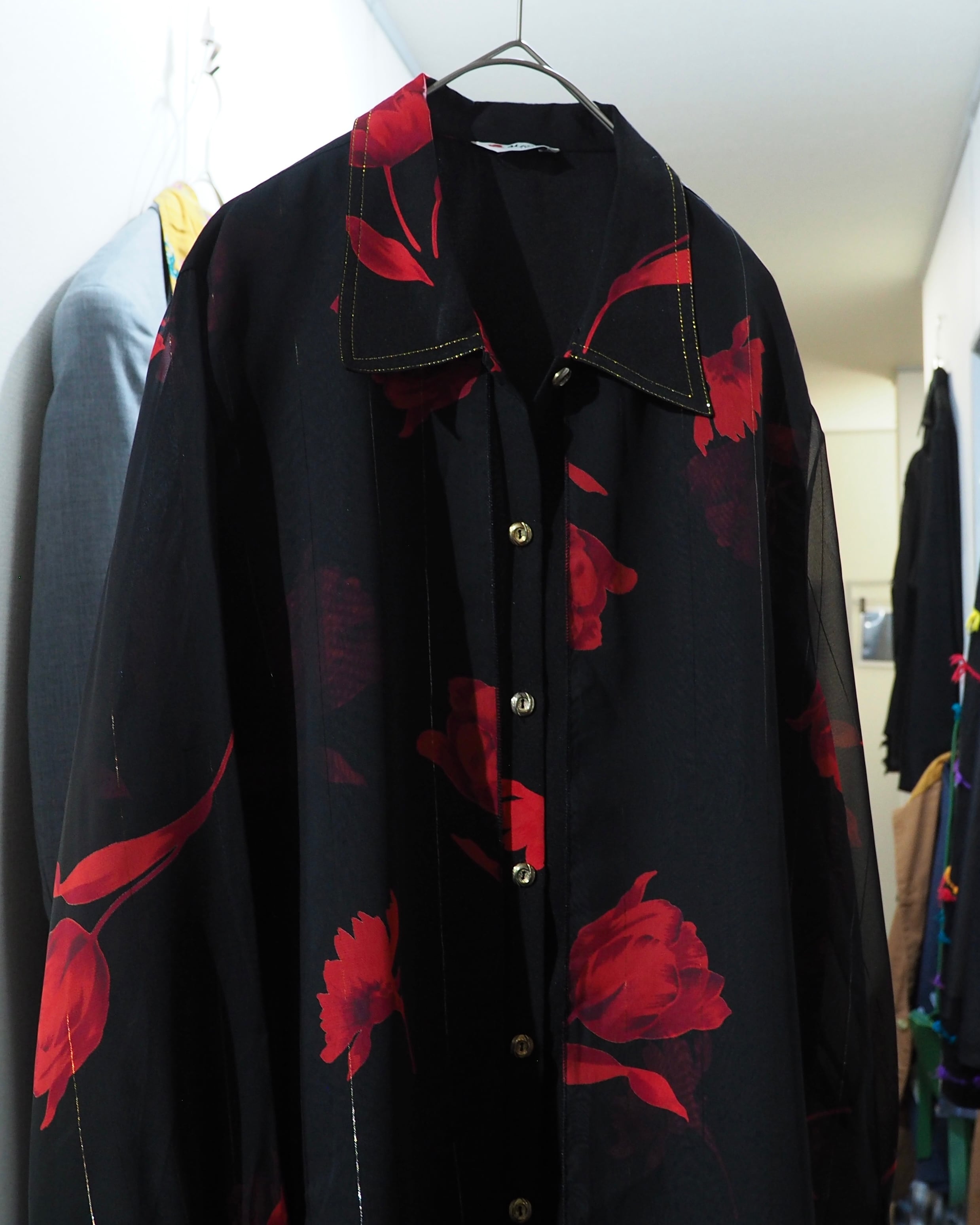 1990s Beautiful Flower pattern vintage Drape sheer shirt