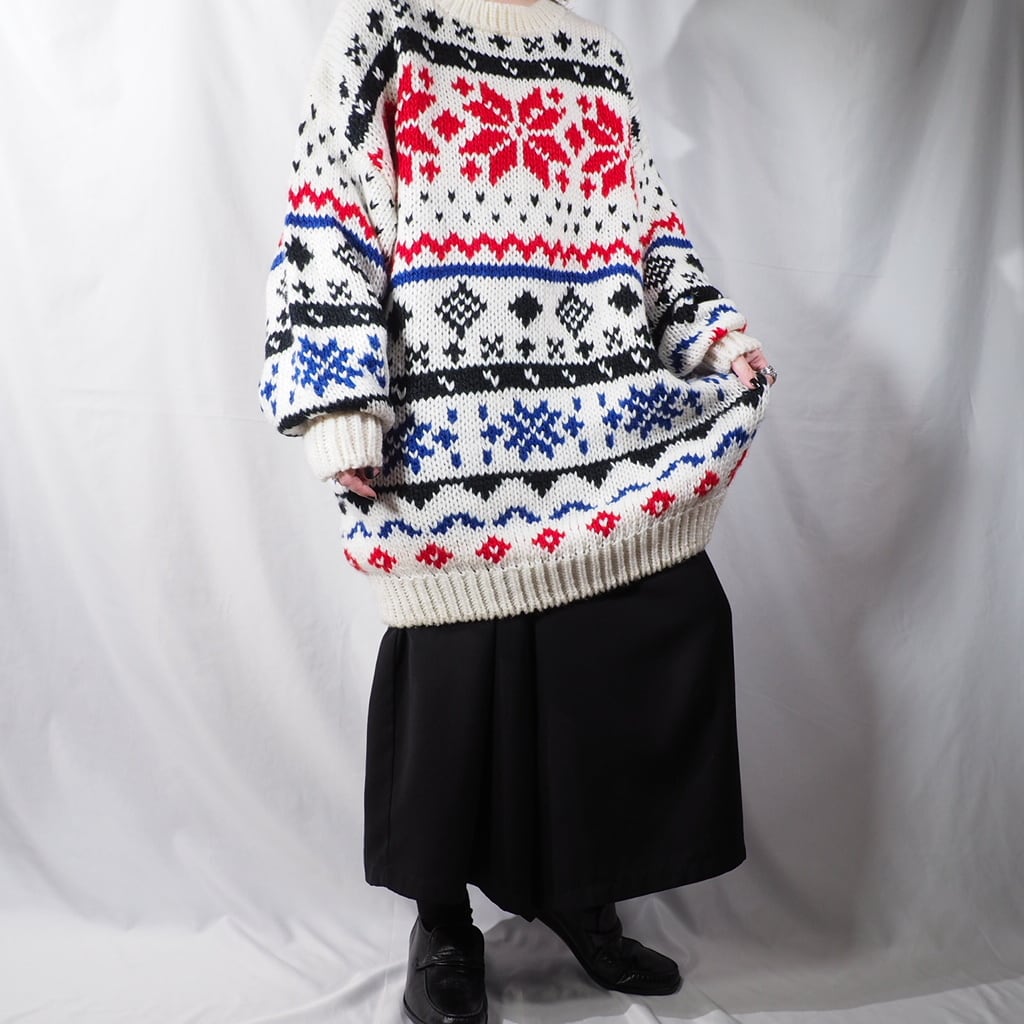 snowy morning Nordic pattern Embbossed Over silhouette hand knit