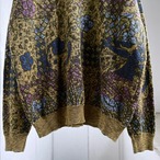 やわらかなマスタードイエローに咲き乱れるパープル、ライトブルー、ブルーの花柄模様がラグジュアリー×モダンレトロな雰囲気を魅せるコットンニット。