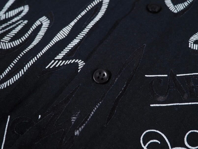 風合いの良いブラックリネンのボディに畝るホワイトプリントのコントラストがモードな雰囲気を魅せるシャツ。